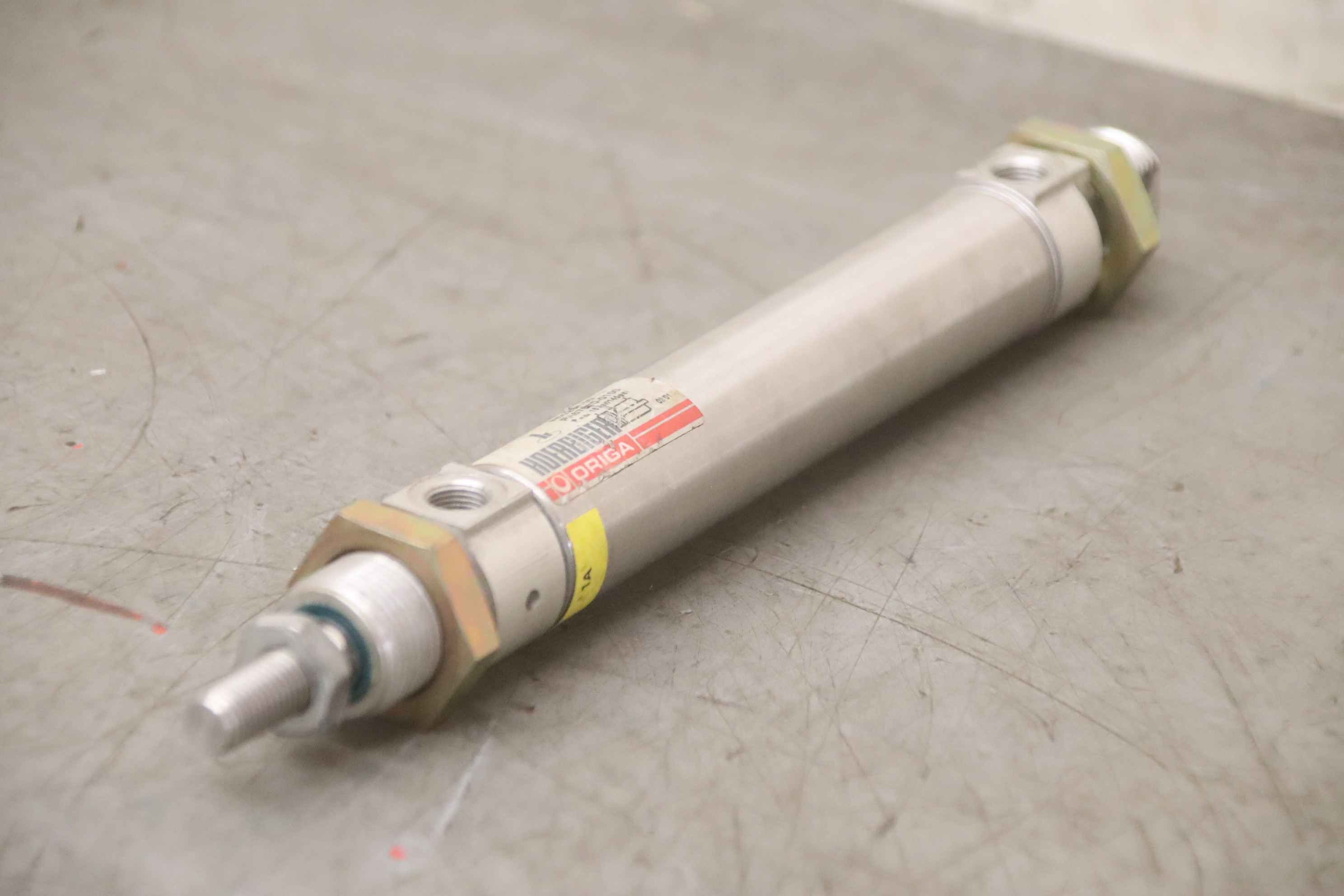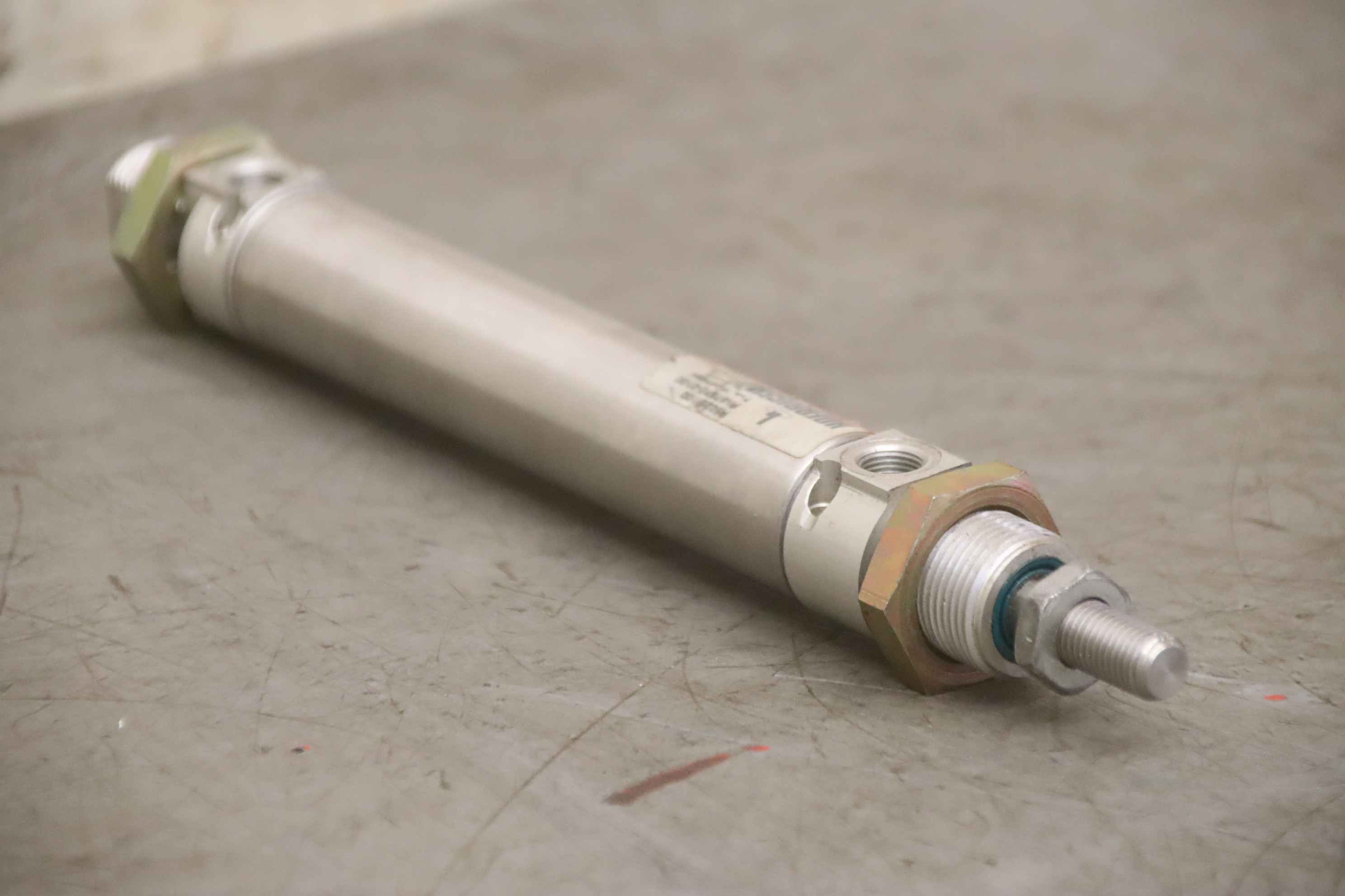 Pneumatic cylinder, air cylinder, pneumatic stamp, air stamp, standard cylinder, round cylinder-Manufacturer: Hoerbiger, round cylinder type R5025/100 PA67510-0100-Stroke path: 100 mm-Piston: Ø 25 mm-Piston rod: Ø 10 mm / M 10 x 1.25-Quantity: 2x cylinders available-Price per piece-Dimension: 240/35/H30 mm-Weight: 0.4 kg/pc.