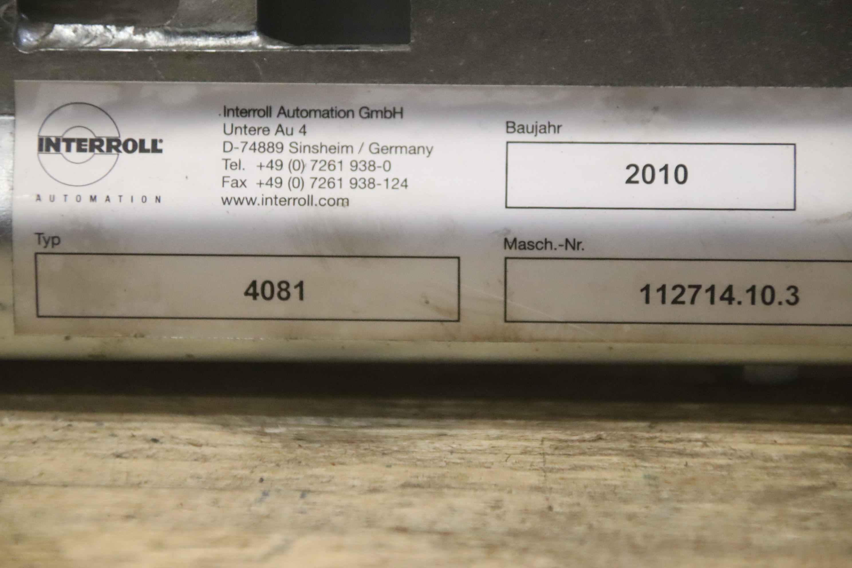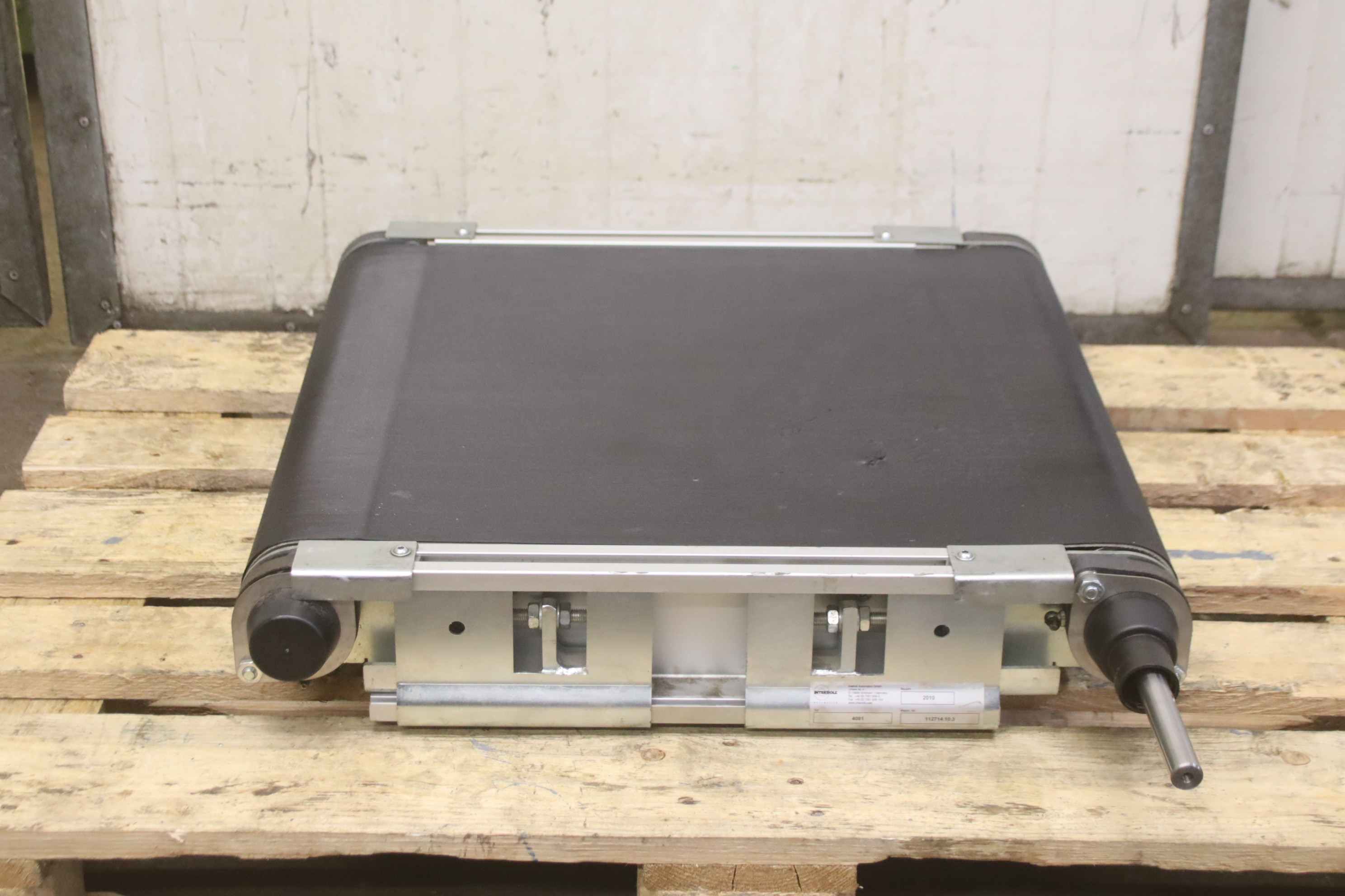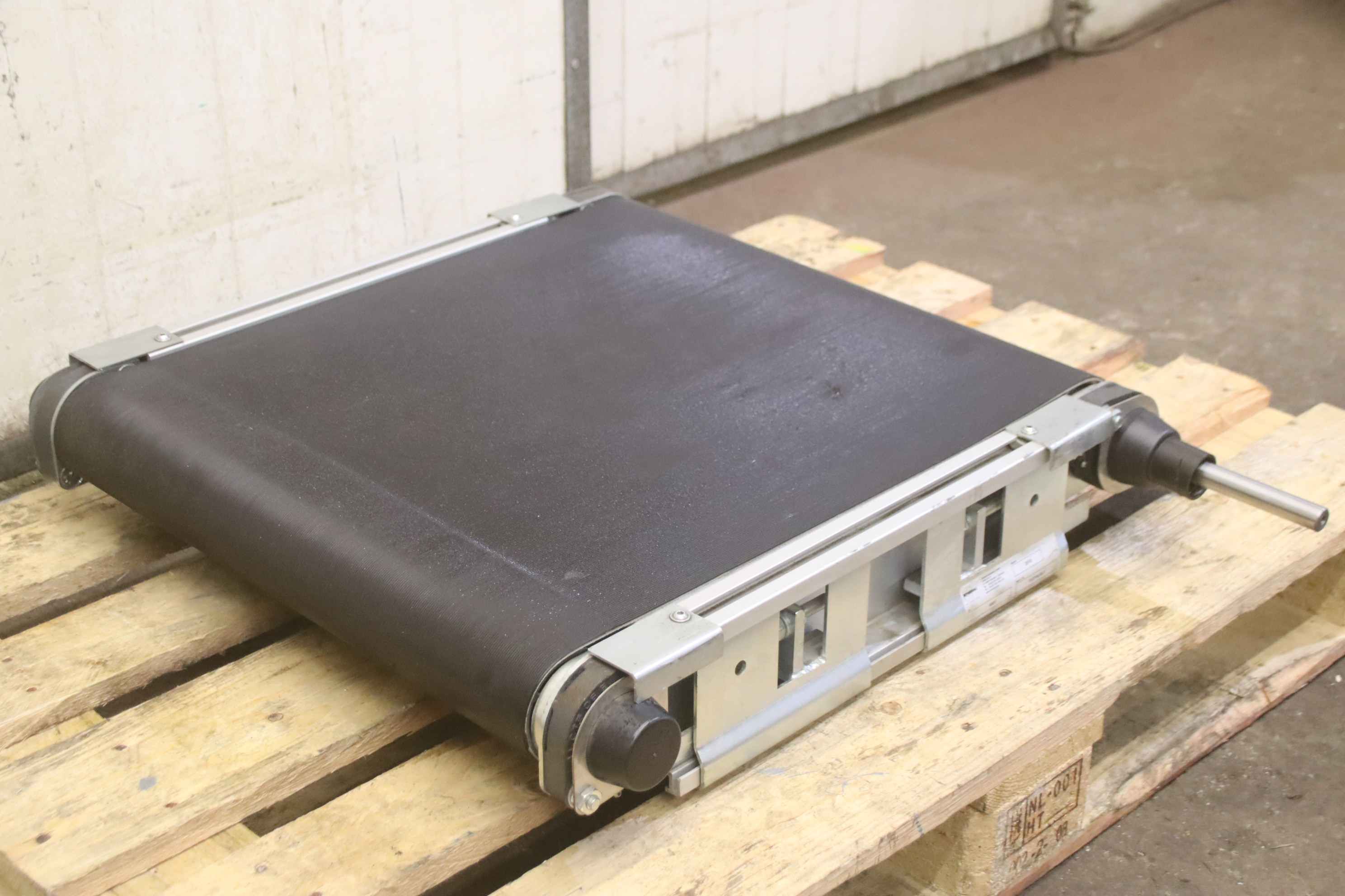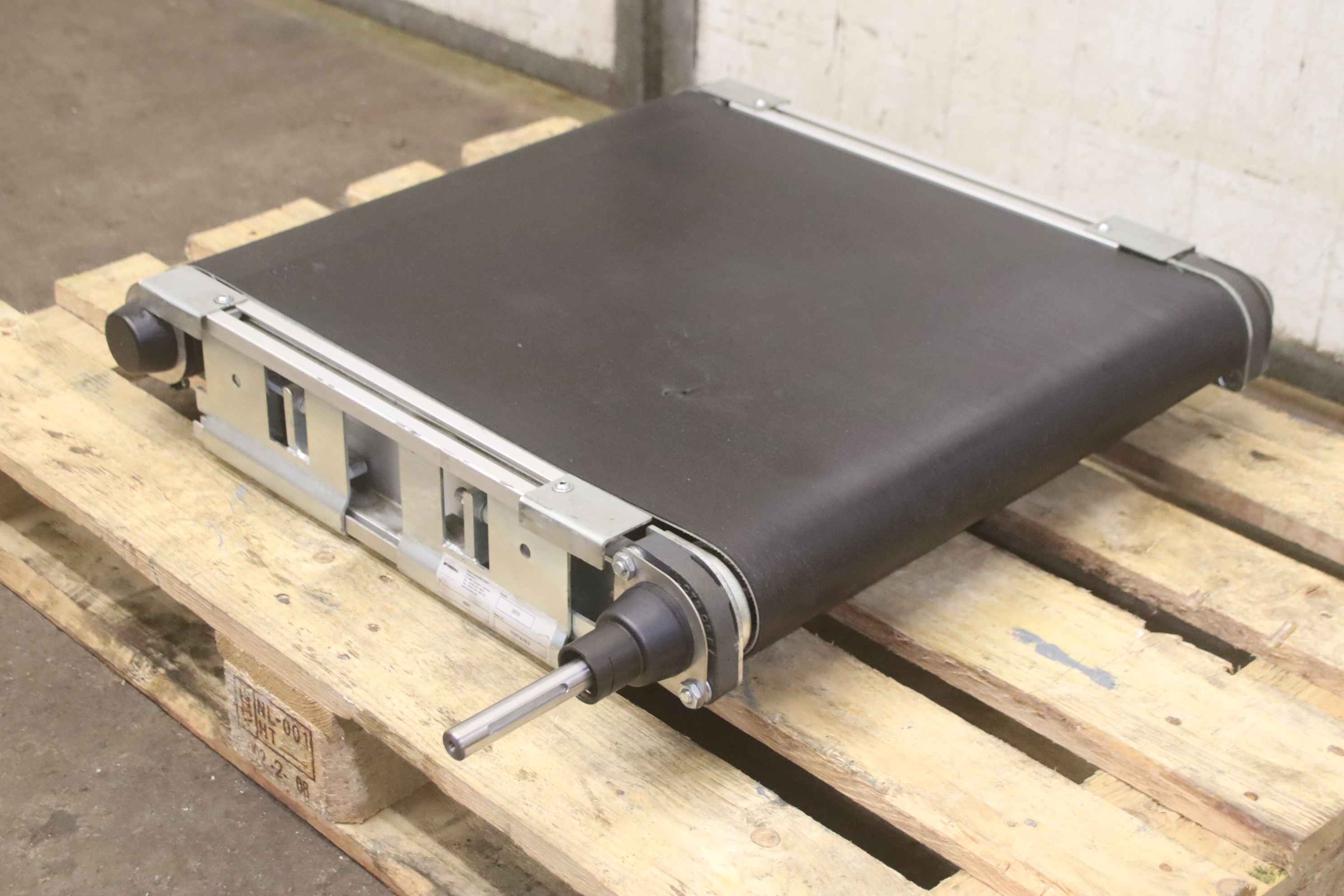 Conveyor belt, belt conveyor, transport belt, belt conveyor, belt conveyor, flat belt conveyor -Manufacturer: Interroll, belt conveyor type 4081 without drive -Belt width: 550 mm -Total conveying length: 650 mm -Drive shaft: Ø 20 x 100 mm -Number: 3 conveyor belts available Price: per piece -Transport dimensions: 840/660/H130 mm -Weight: 33 kg/pc.