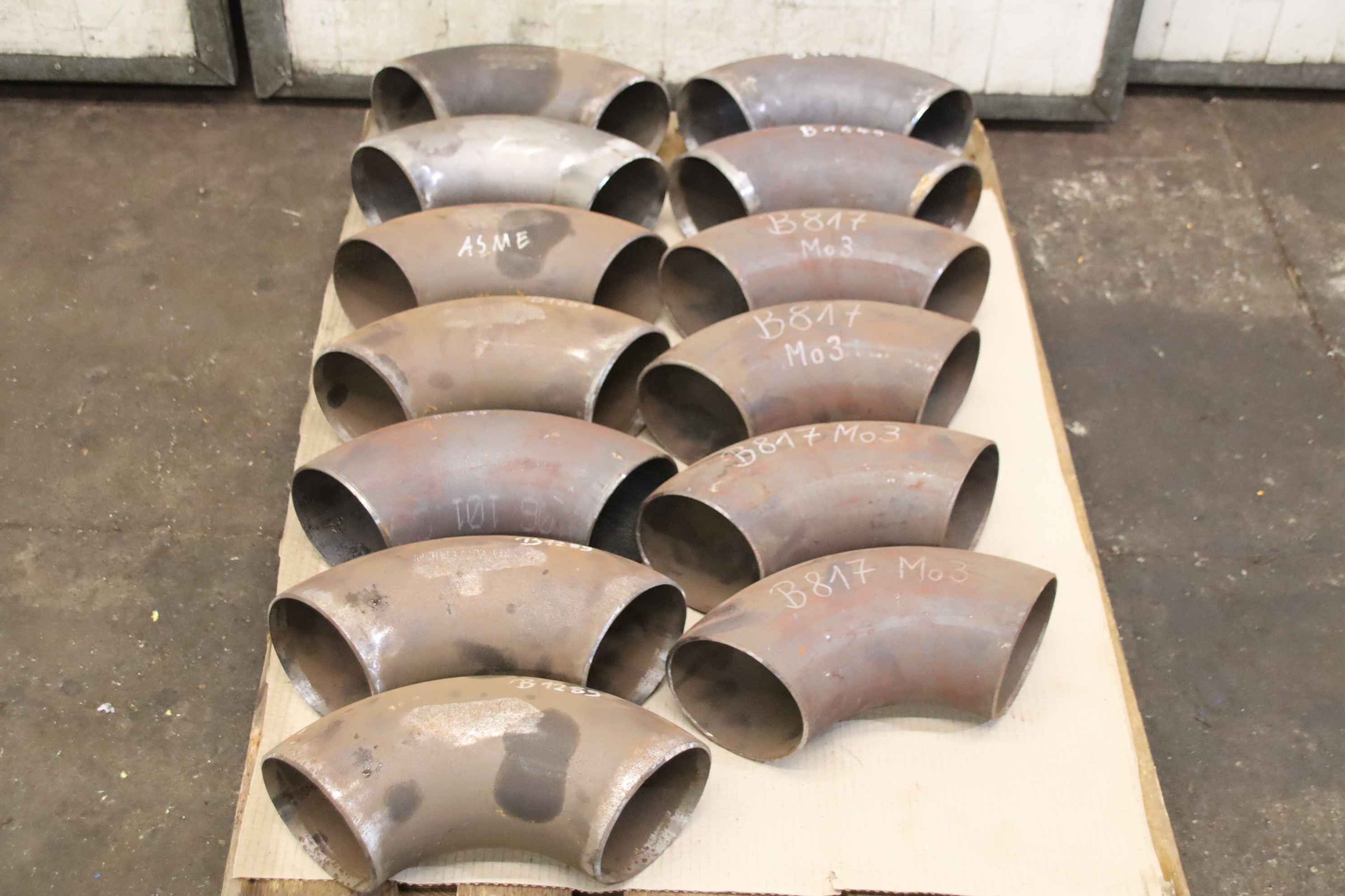 Flange connection, V-flange, pipe coupling, welding reduction, reduction, clapper base, pipe bend, welding bend, pipe angle-Pipe elbow: welding elbow 90° 13 pieces-Type: RP CH WPD 139.7x4 30360 9 pcs.-Type: SF RO EN2 A... 139.7x4 P235 GHTC1 4 pieces. see photos-Price/tax: complete-Stock: other sizes/types also available, please inquire-Transport dimensions: 1200/750/H140 mm-Weight: 78 kg with pallet