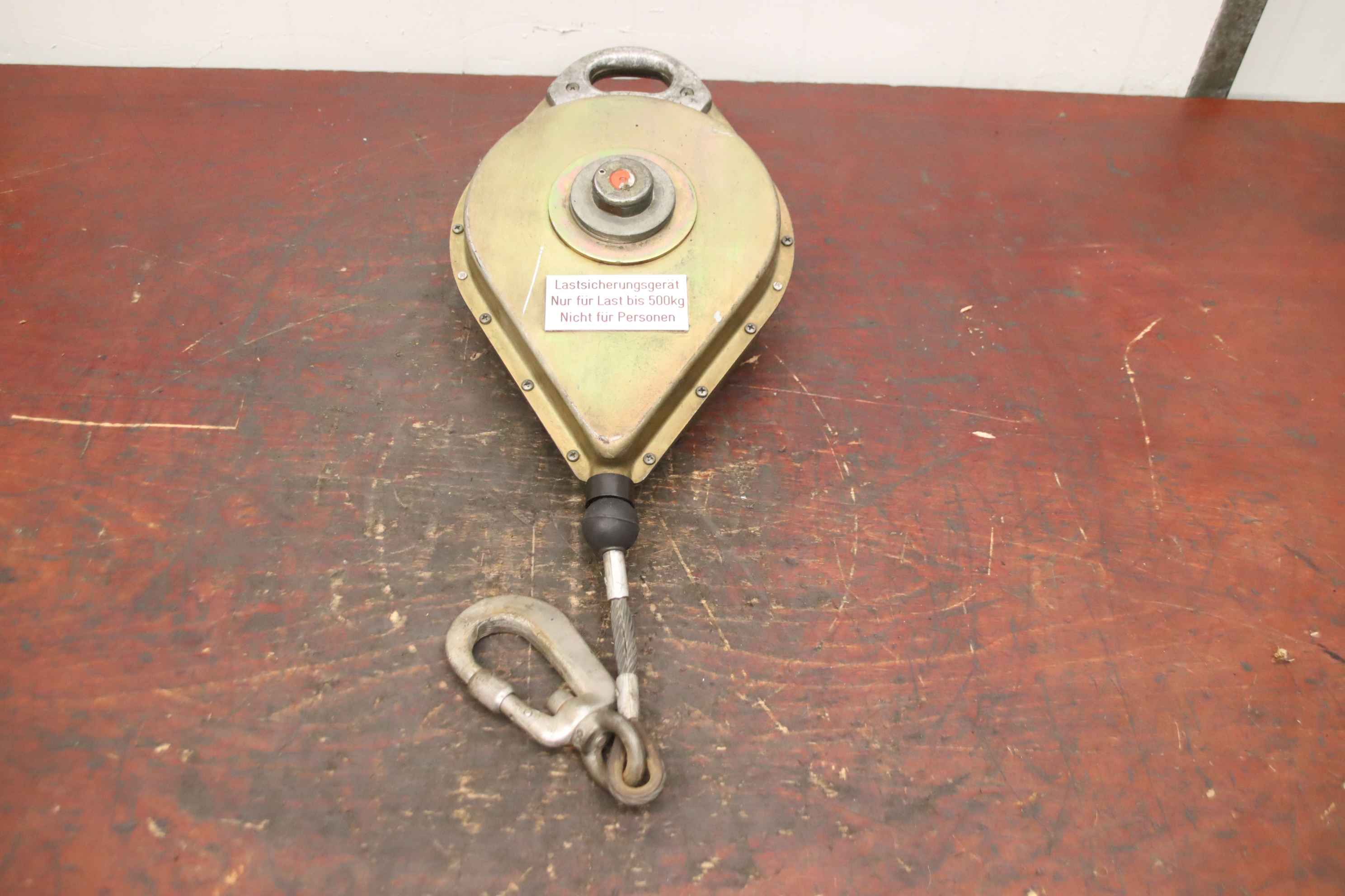 Load hook, retractable safety device, load securing device -Load securing device: Type 16 -Load capacity: 500 kg -Rope length: 6.7 m -Note: not for persons -Dimensions: 720/240/140 mm -Own weight: 12.8 kg