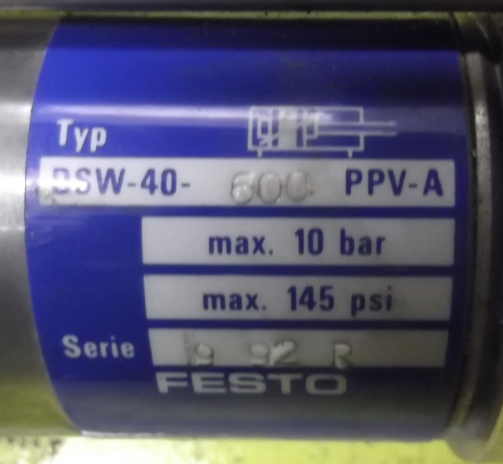 Pneumatic cylinders, air cylinders, standard cylinders, clamping cylinders-Festo type: DSW-40-600 PPV-A-Piston: Ø 40 mm-Stroke: 600 mm-Max. Pressure: 10 bar-Price: per piece-Number: 4 pieces-Dimensions: Ø 46 x 800 mm-Weight: 2.15 kg