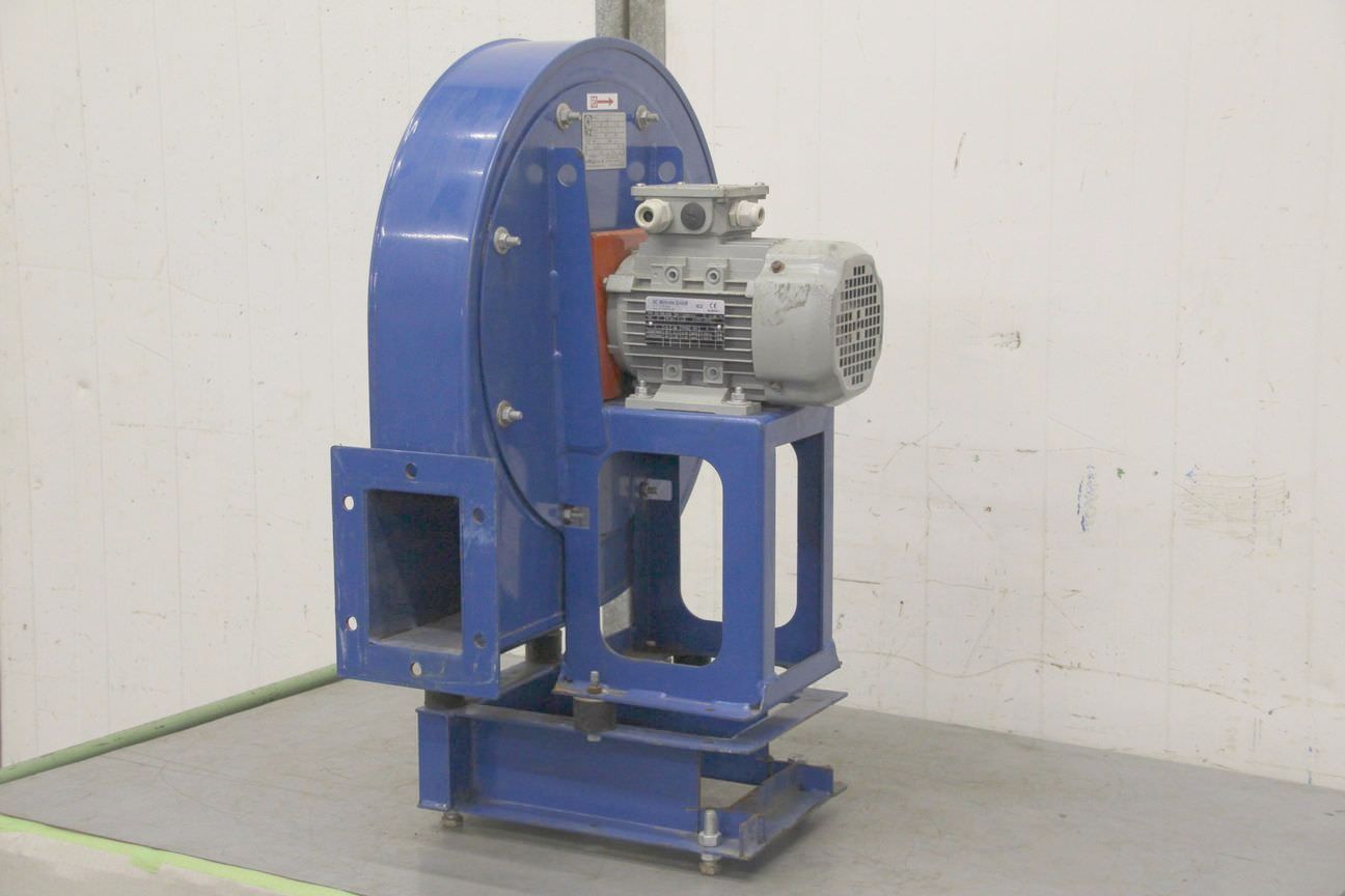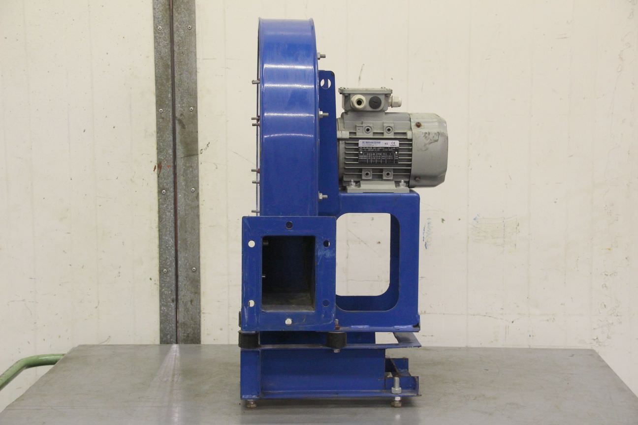 Dust extraction fan, exhaust gas extraction, welding fume extraction, extraction, fan, pressure blower, vacuum blower, radial fan, ventilation blower, radial blower, blower-Manufacturer: Karl Klein, blower radial fan type DNG 6-18 L-Engine power: 0.155 kW-Speed: 1400 rpm-Volume output: 18.5 m³/min-Fan wheel: Ø 160 x 80 mm-Connection input: Ø 145 mm-Connection output: 120 x 110 mm-Number: 3x blowers available-Price: per piece-Dimensions: 370/340/H320 mm-Weight: 8.1 kg/piece