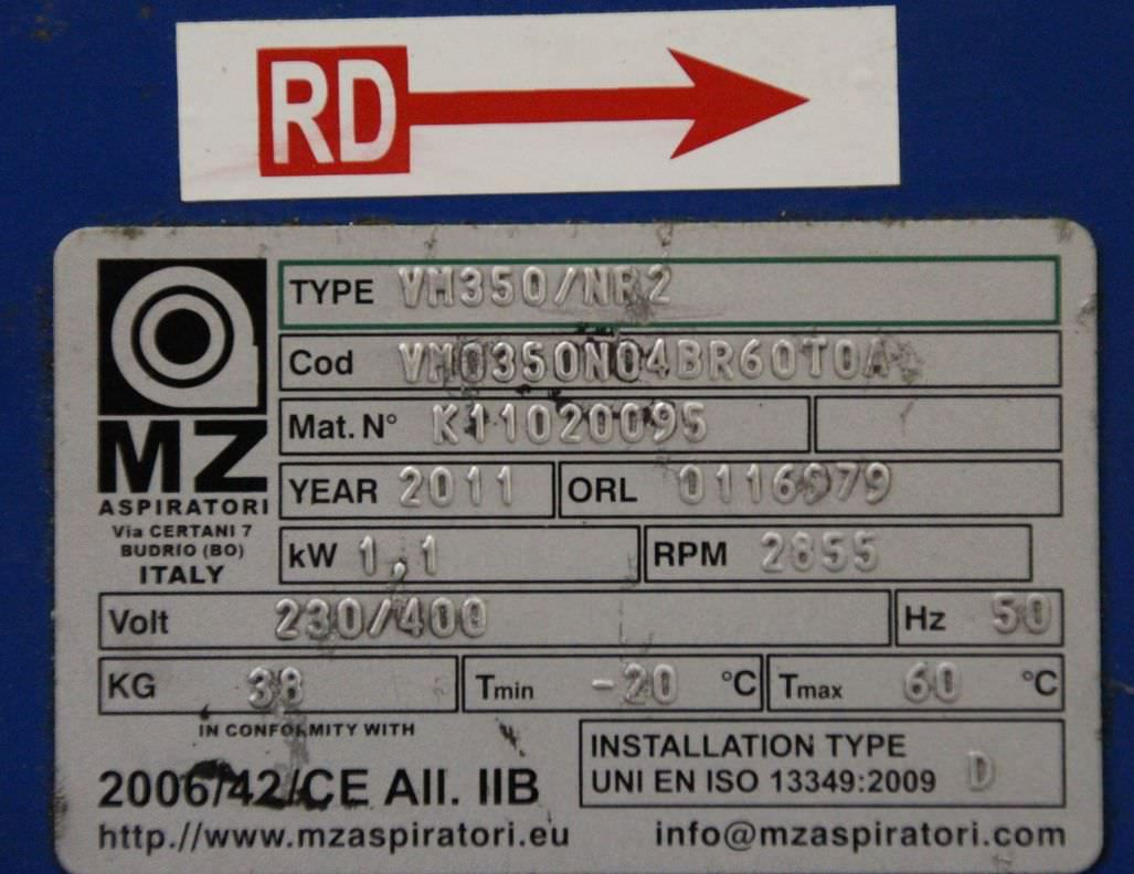High-pressure radial fan, dust extractor fan, exhaust gas extractor, welding smoke extractor, extractor, fan, pressure fan, vacuum fan-Motor power: 1.1 kW-Speed: 2870 rpm-Volume output: m³/h-Pressure increase: Pa-Connection inlet: Ø 270 mm (without nozzle)-Connection output: 100 x 140 mm-Number: 1x fan available-Price: per piece-Dimensions: 540/400/H775 mm-Weight: 40.5 kg