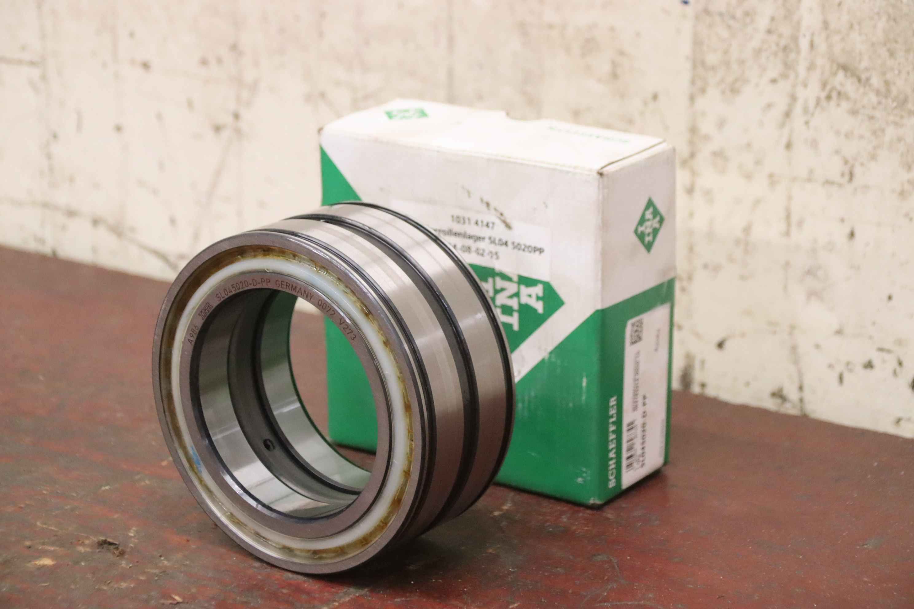 Ball bearings, roller bearings, axial cylindrical roller bearings, cylindrical roller bearings-Manufacturer: INA, cylindrical roller bearing. SL04 5020PP, unused, original packaging-Type: INA SL045020-D-PP-Item no.: 1031 4147 M-08-02-05-Outer diameter: 150 mm-Inner diameter: 100 mm-Width: 67 mm-Number: 6x cylindrical roller bearings available-Price: per piece-Dimensions box: 160/160/H70 mm-Weight: 3.8 kg/piece