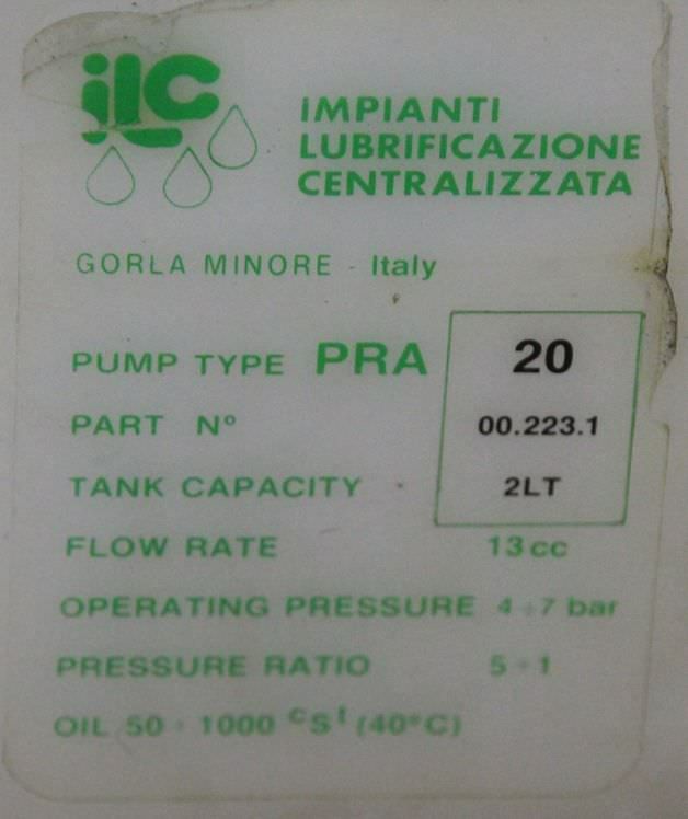 Central lubrication, grease circulation system, progressive pump-for: oil-Contents: 2 liters-Voltage: volts-Pressure: 4-7 bar-Number: 1x pumps available-Price: per piece-Dimensions: 125/150/H295 mm-Weight: 1.7 kg/piece