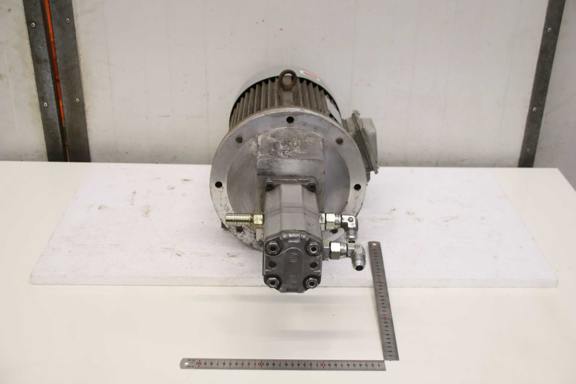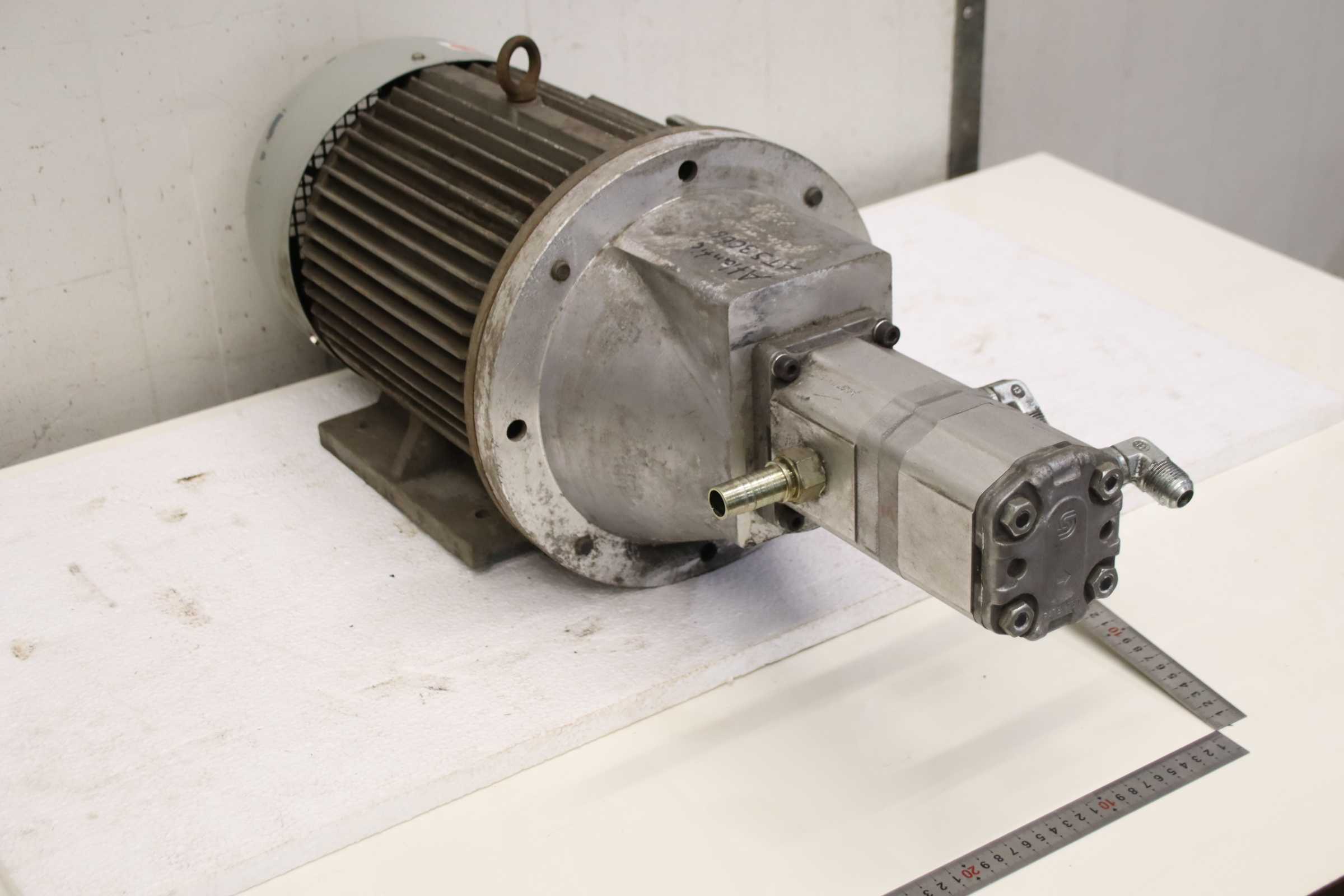 Hydraulic power unit, hydraulic pump, universal power unit, hydraulic station -Manufacturer: Sauer Sundstrand, hydraulic unit from Atlantic ATS 3006 guillotine shear -Hydraulic pump: double version -Motor: EMI 7.5 kW / 1440 rpm -Dimensions: 790/330/H295 mm -Weight: 83.6 kg