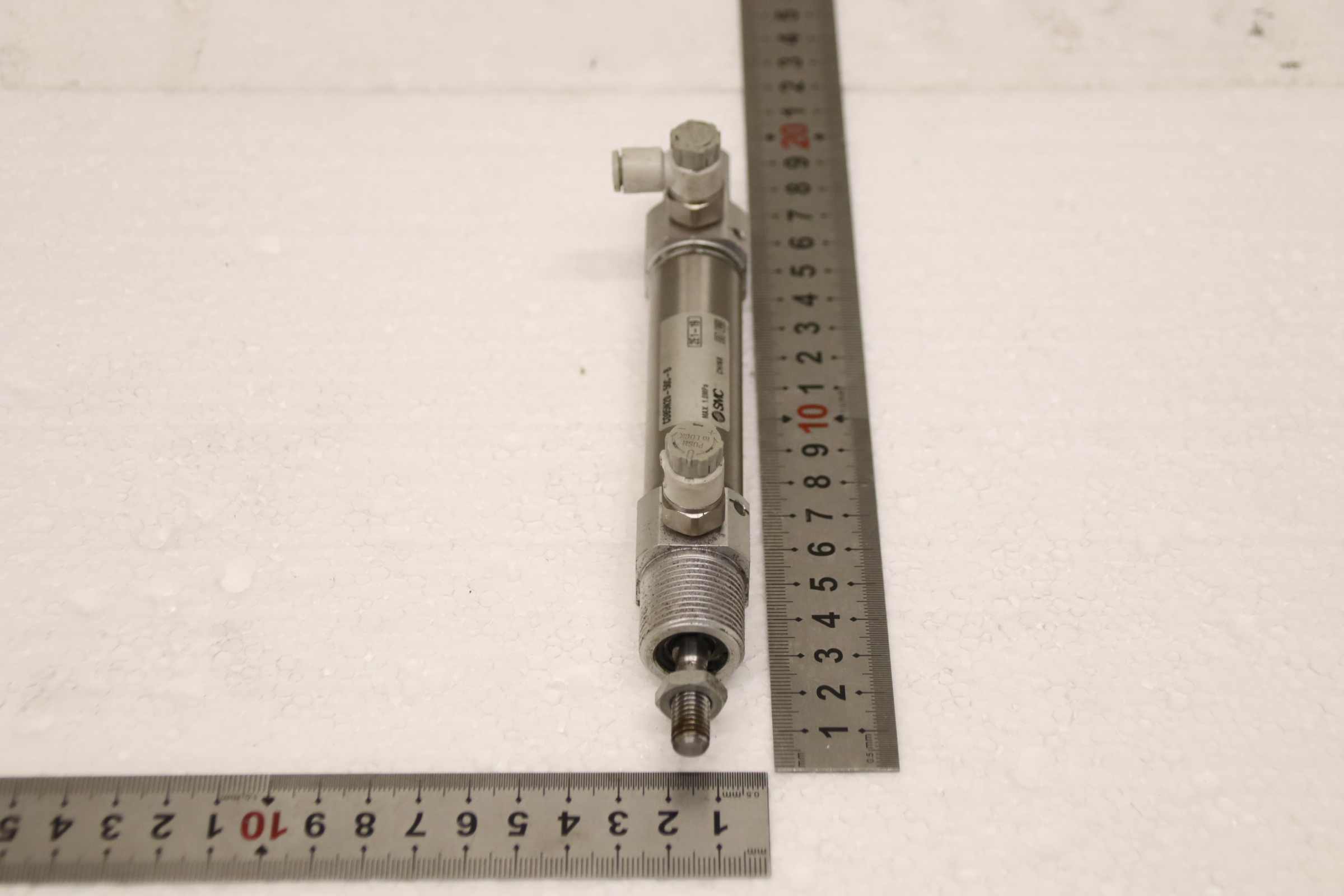 Pneumatic cylinders, air cylinders, pneumatic pistons, air pistons, standard cylinders, round cylinders -Manufacturer: SMC, Round cylinder pneumatic cylinder double-acting -Type: CD85N20-50C-B -Stroke travel: 50 mm -Piston rod: Ø 8 mm / M8 -Max. pressure: 10 bar -Number: 2 cylinders available -Price: per piece -Dimensions: 180/24/H48 mm -Weight: 0.2 kg/pc.