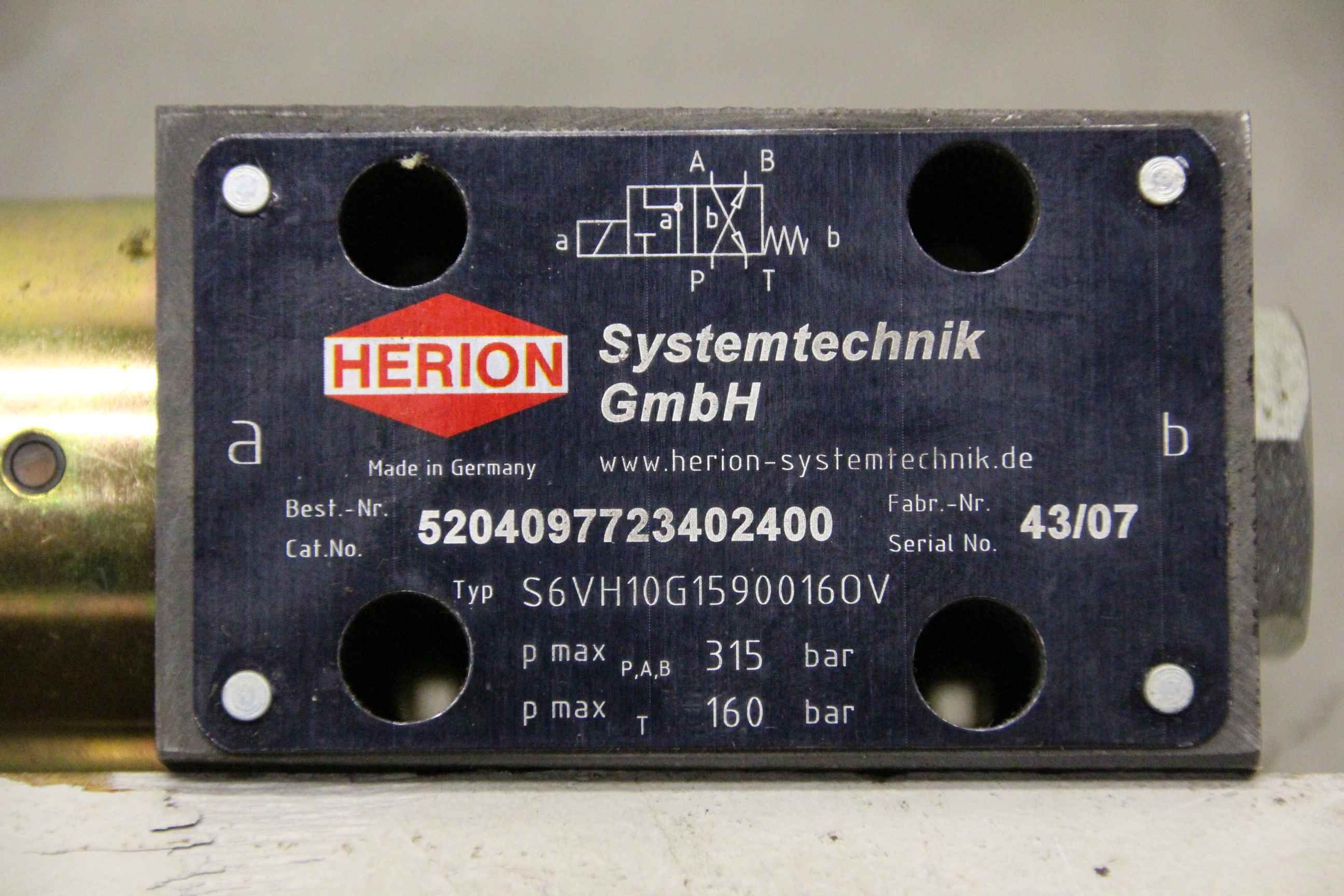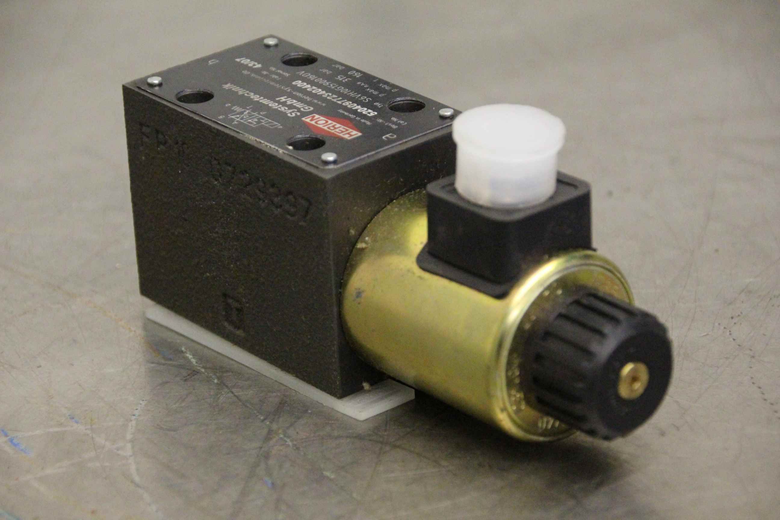 5/2 way valve, solenoid valve, pneumatic valve, air valve, pressure valve, valve block, control block, hydraulic valve-Manufacturer: Herion, hydraulic directional control valve p max 315 bar-Type: S6VH10G15900160V-Dimensions: 155/45/H70 mm-Weight: 1.9 kg