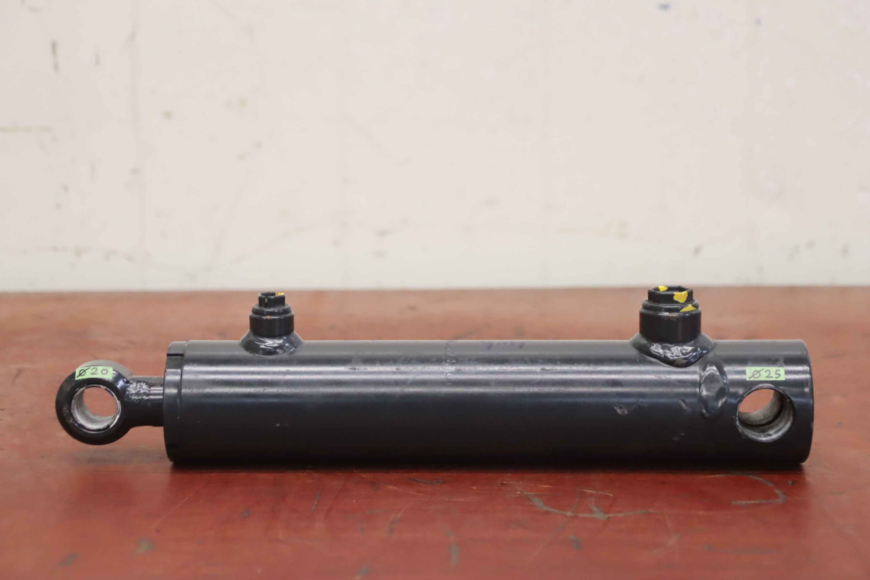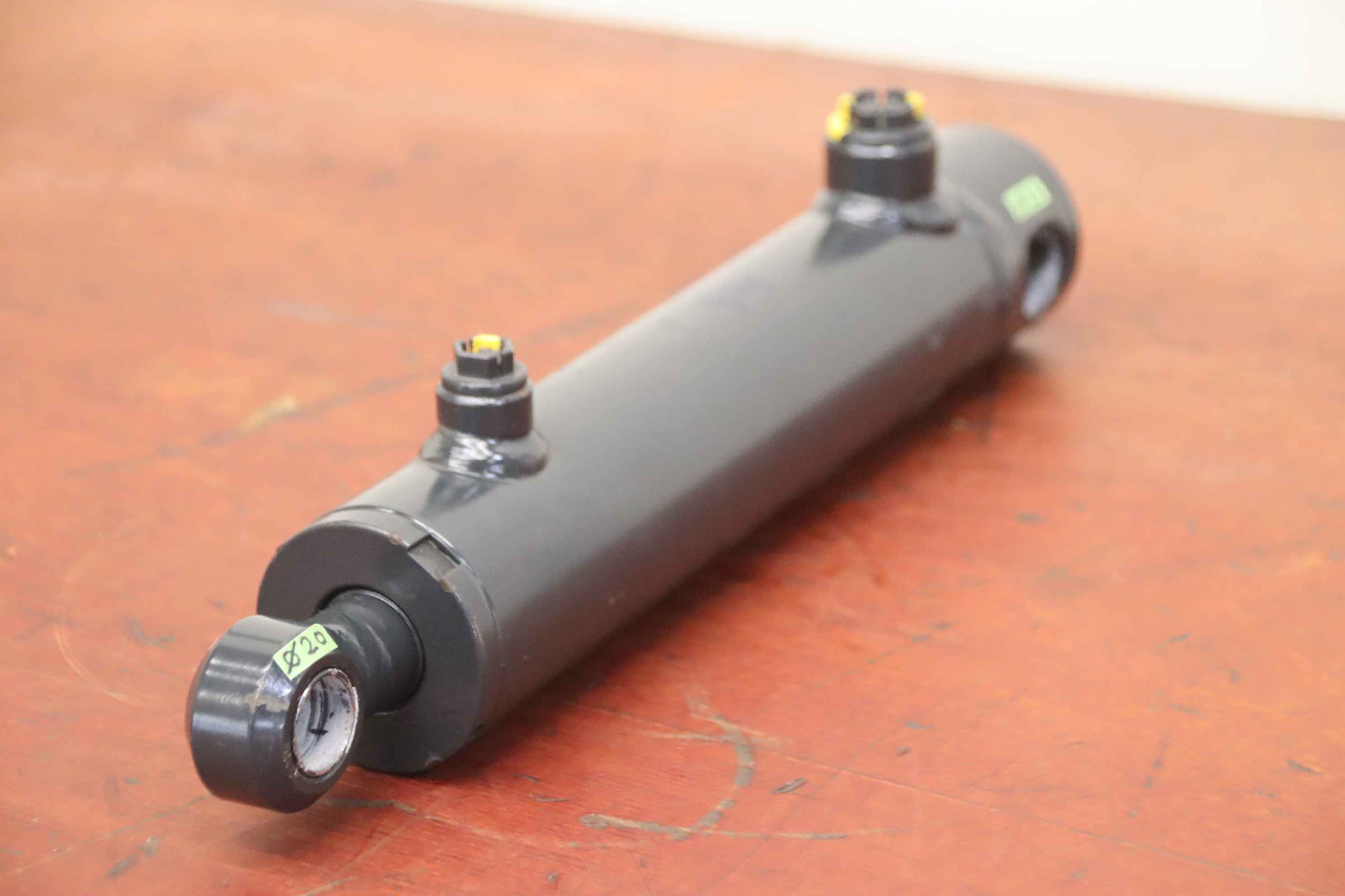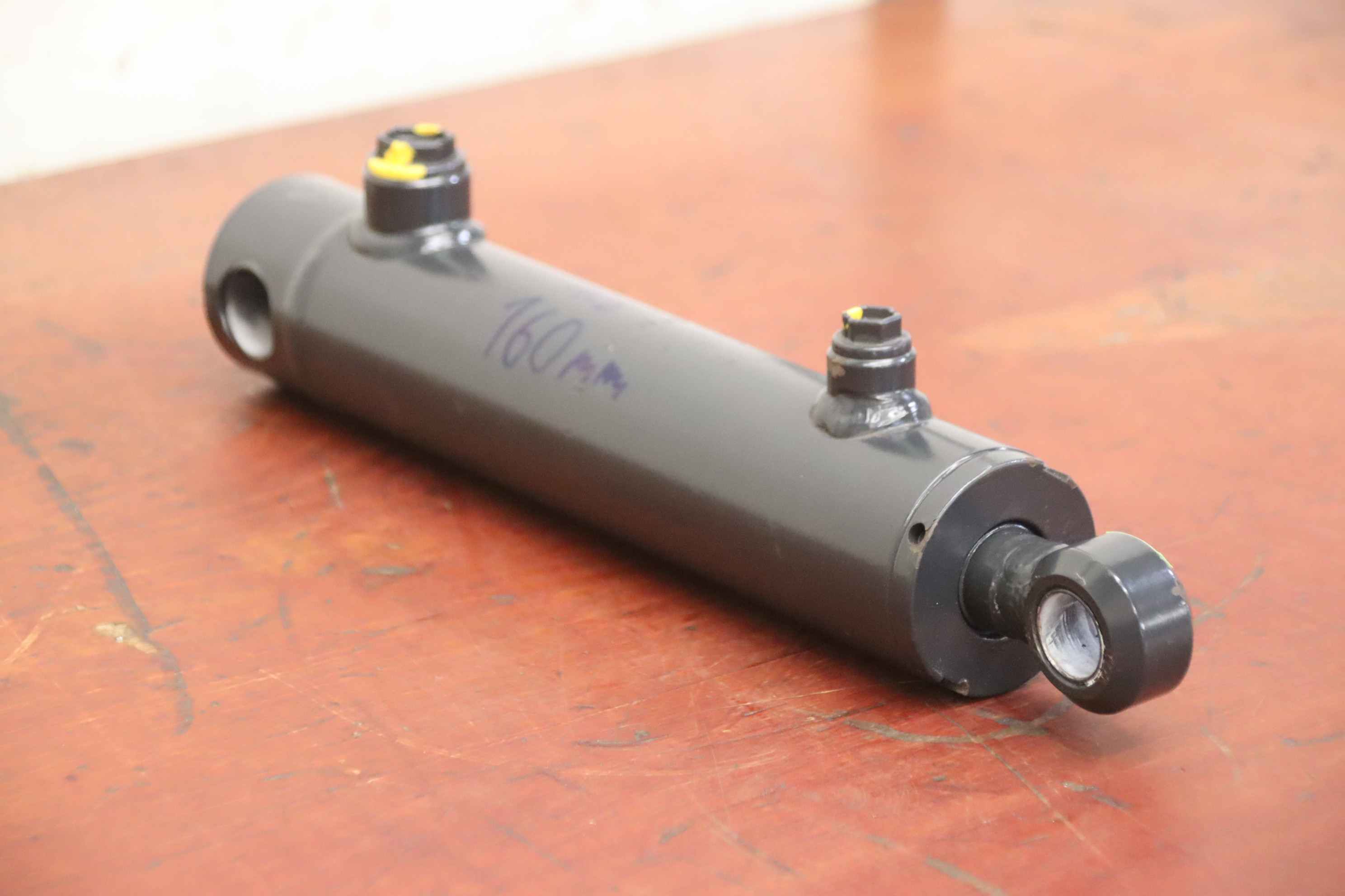 Hydraulic cylinder, support cylinder, hydraulic piston, pressure piston -Condition of hydraulic cylinder: unused -Manufacturer: Faroil, double-acting hydraulic cylinder, 160 mm stroke -Type: 6 18. -Piston rod: Ø 25 mm -Hole spacing: 322 mm -Number: 32 cylinders available -Price: per piece -Dimensions: 360/60/H87 mm -Weight: 4.6 kg/pc.