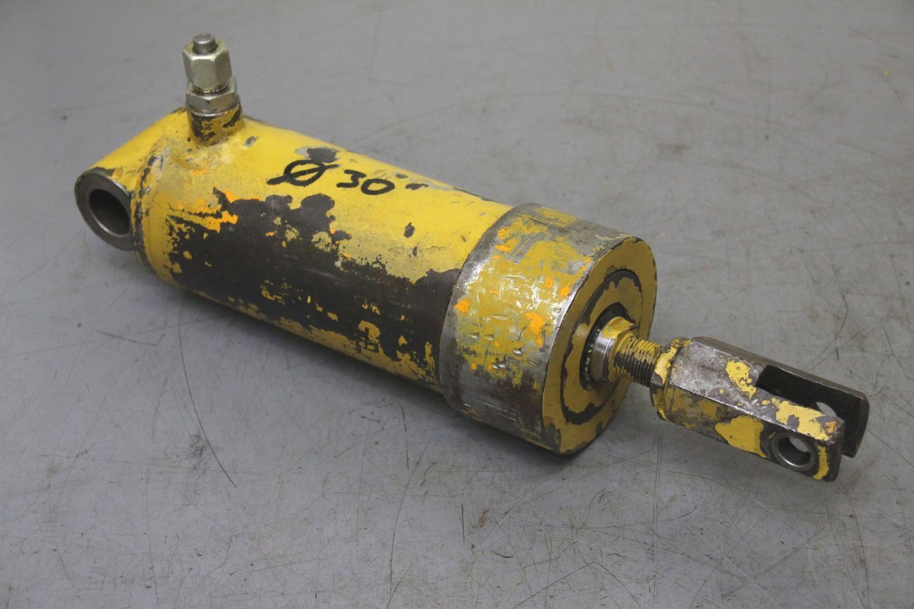 Hydraulic cylinders, support cylinders, hydraulic rams, pressure rams-Hydraulic cylinder: stroke 30 mm- Piston rod: Ø 30 mm-Mounting holes: Ø25 x 70 mm / Ø13 x 10/16/10 mm-Cylinder: outside Ø 90 mm-Number: 2x cylinders available-Price per piece-Dimensions: 390/140 / H100 mm-Weight: 9.7 kg