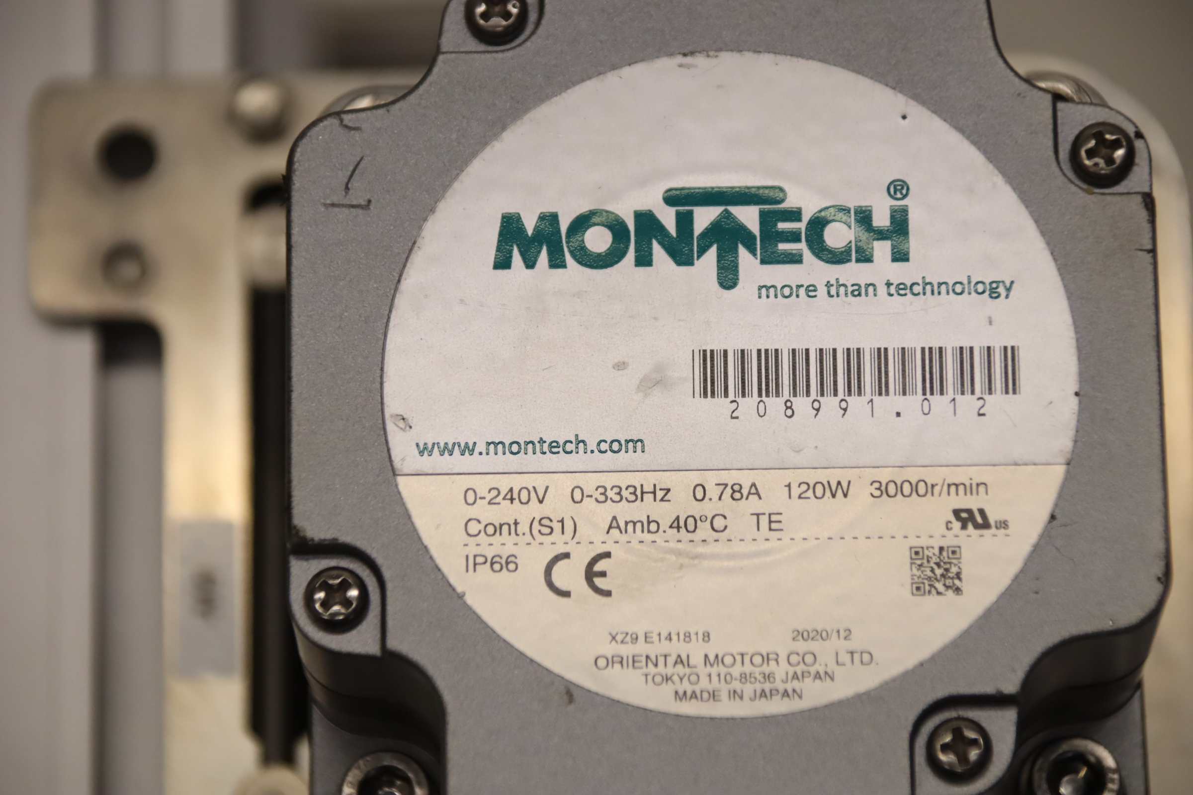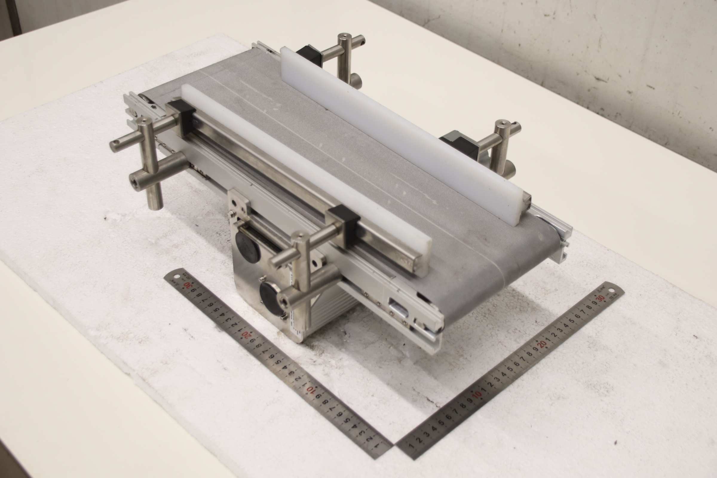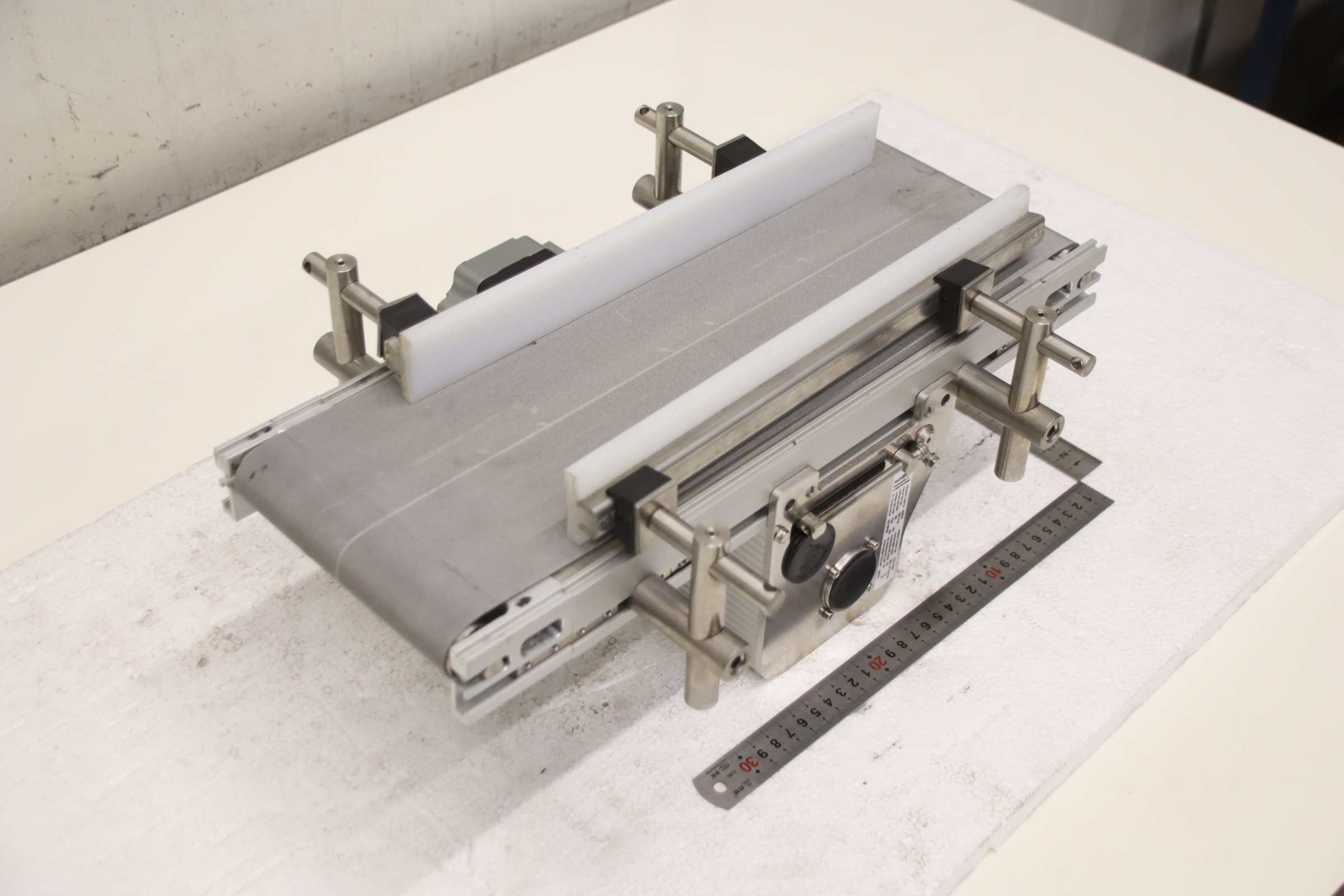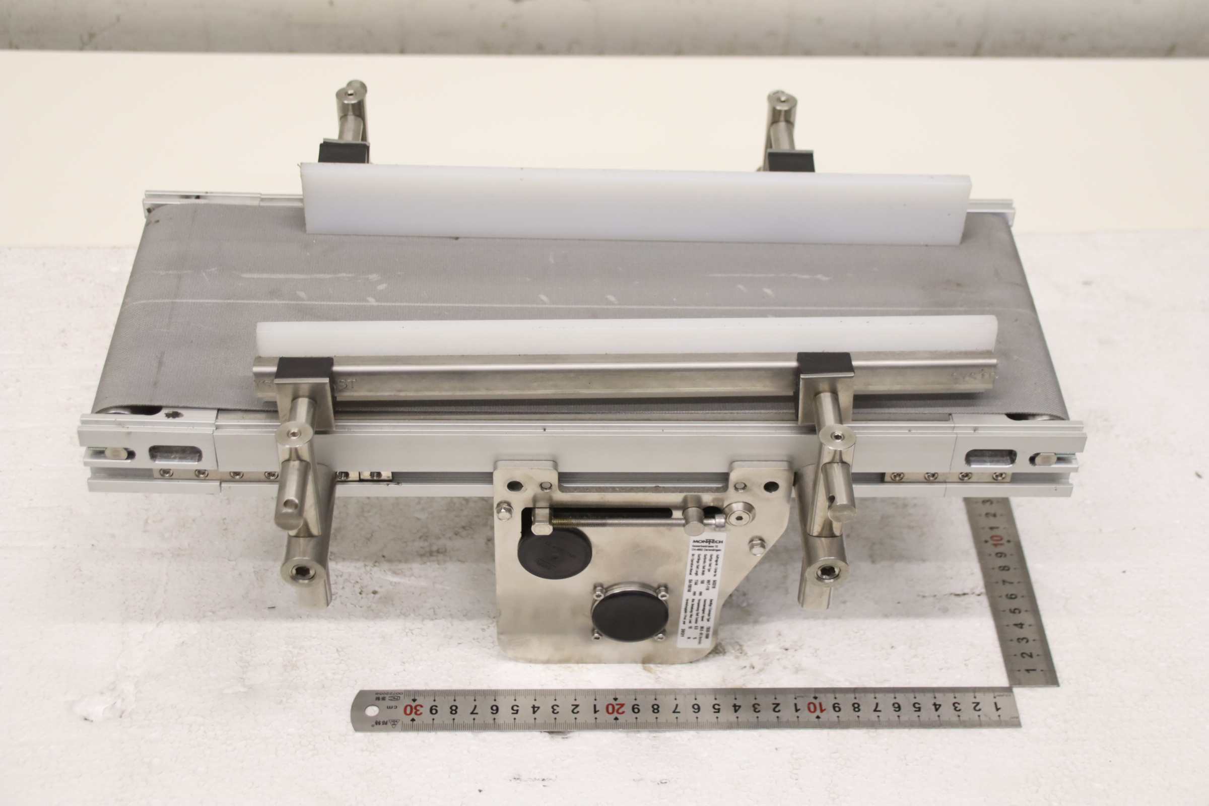 Conveyor belt, belt conveyor, transport belt, belt conveyor, belt conveyor, flat belt conveyor -Manufacturer: Montech, belt conveyor type TB30-185M with adjustable guide rails -Speed: frequency-controlled 38.3 - 51.1 m/min -Drive: Oriental Motor 120W, see photo of the nameplate -Voltage: 0-240V / 0-333Hz -Belt width: 155 mm -Conveyor length: 460 mm -Transport dimensions: 460/345/H200 mm -Weight: 11 kg