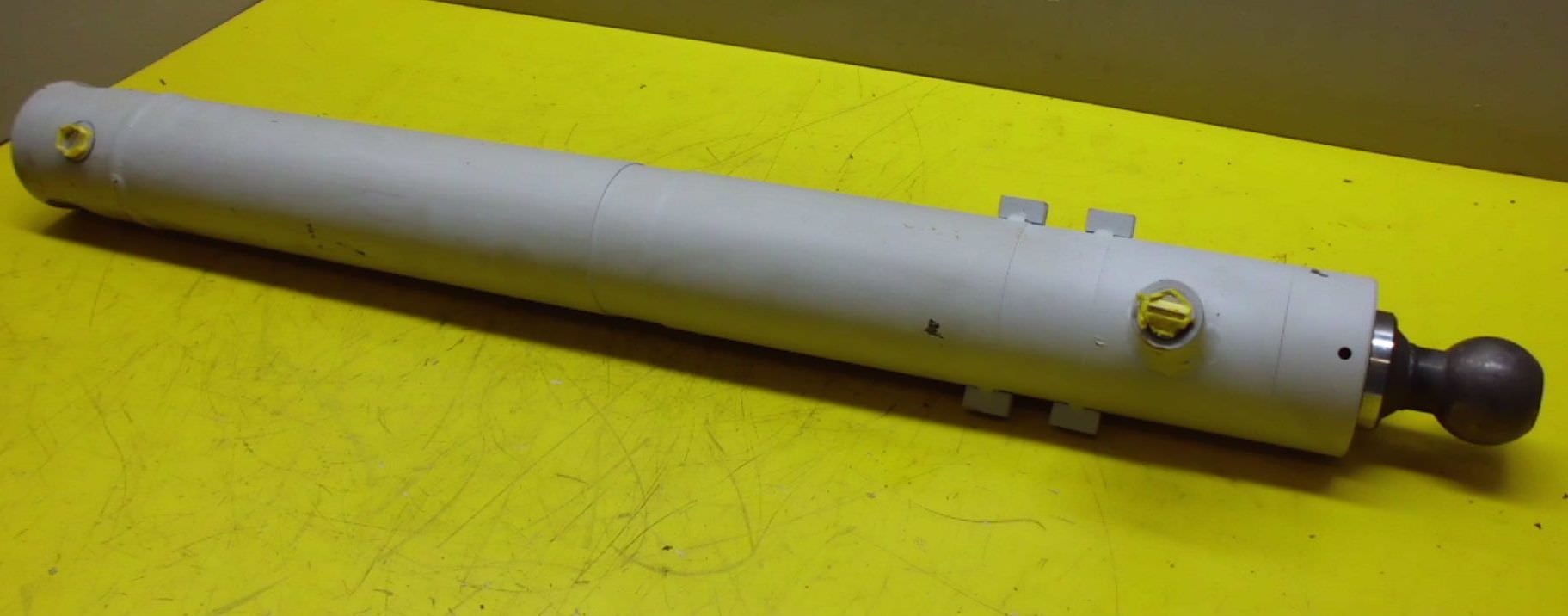 Hydraulic cylinder, support cylinder, hydraulic piston, pressure piston -Cylinder: Ø 63 mm -Piston rod: Ø 50 mm -Pipe outer diameter: 75 mm -Stroke: 500 mm -Total length when retracted: 730 mm -Piston rod mount: Ø 44 mm ball head -Hole diameter: Ø 30 mm -Quantity: 5 available -Price: per piece -Ideal for building a hydraulic press