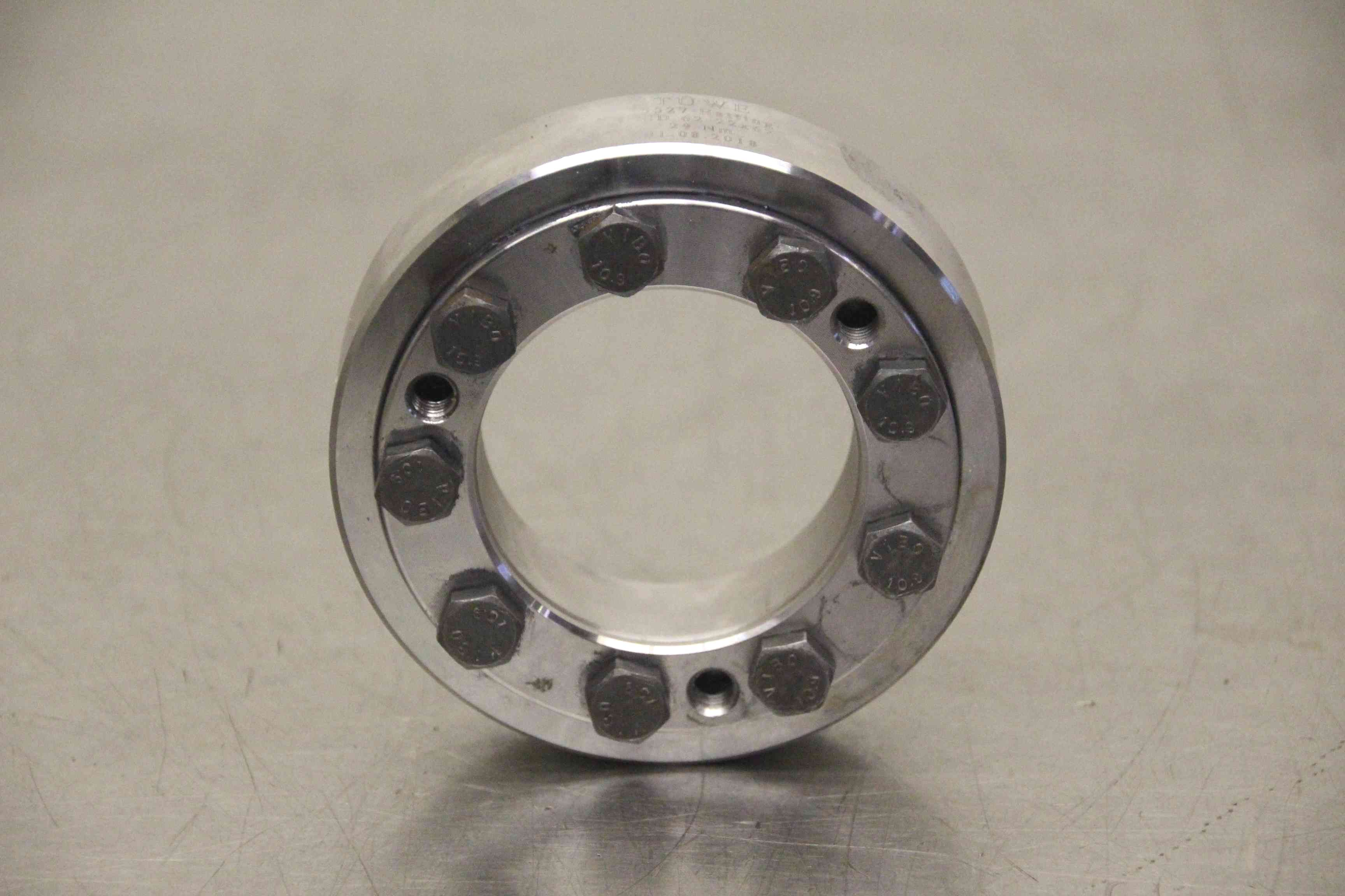 Metal bellows coupling, claw coupling, connecting coupling, torsionally flexible coupling, shaft coupling, bellow coupling, mechanical shrink disk-Manufacturer: Stuwe, mechanical shrink disks-Type: HSD 62-22x62-Shaft: Ø 62 mm-Price: per piece-Number: 33 piece-Dimension: Ø 110 x 35 mm-Weight: 1.3 kg/piece