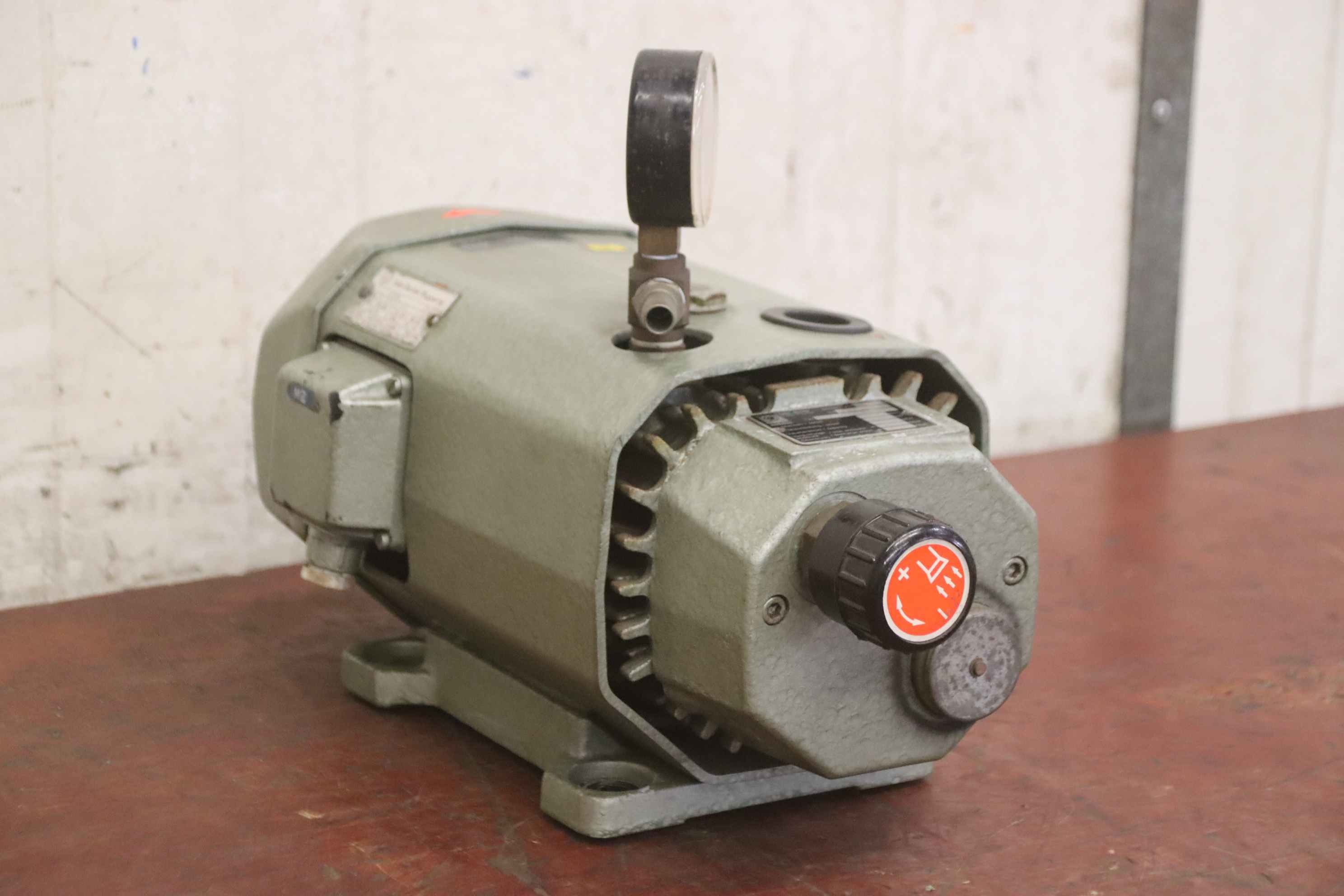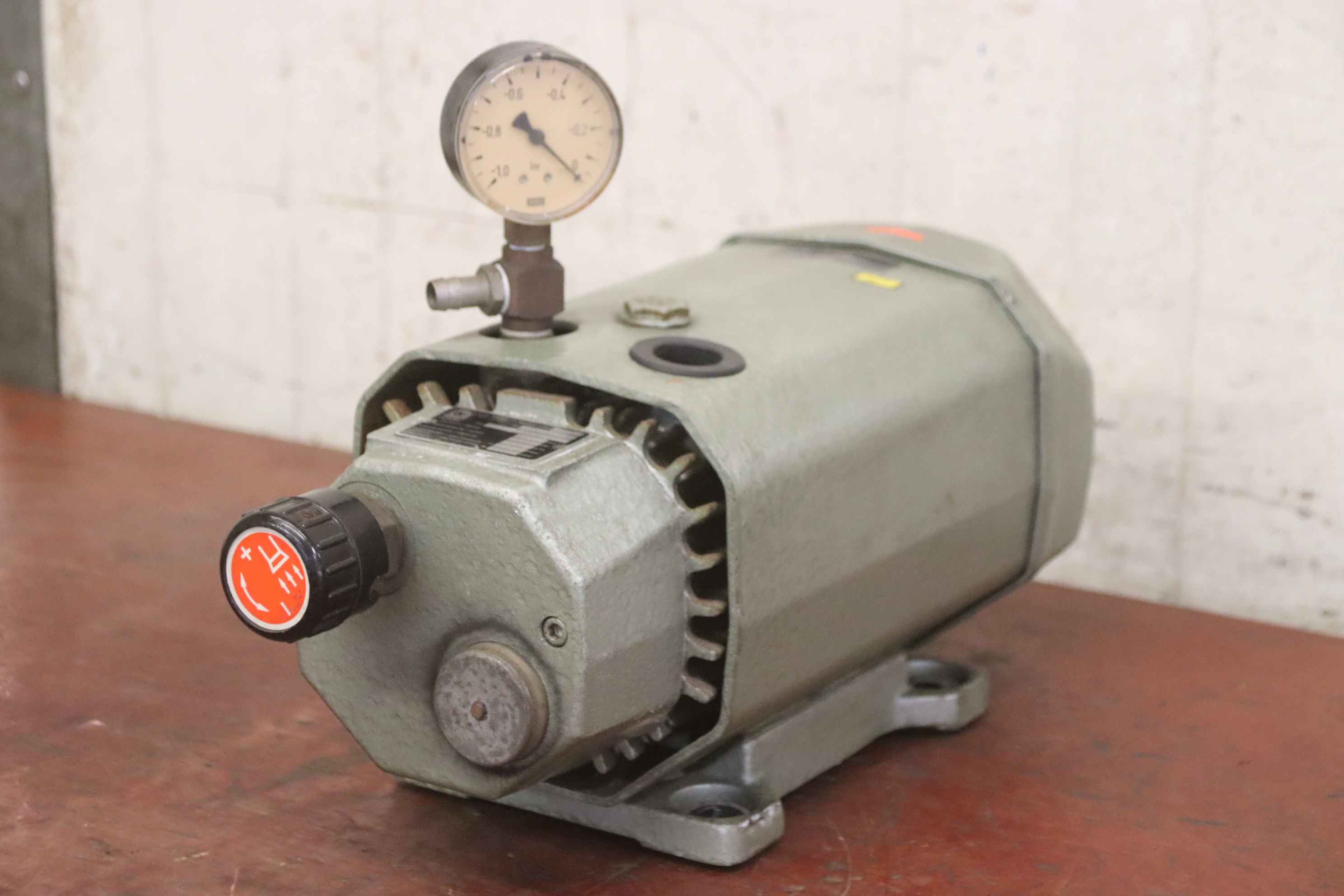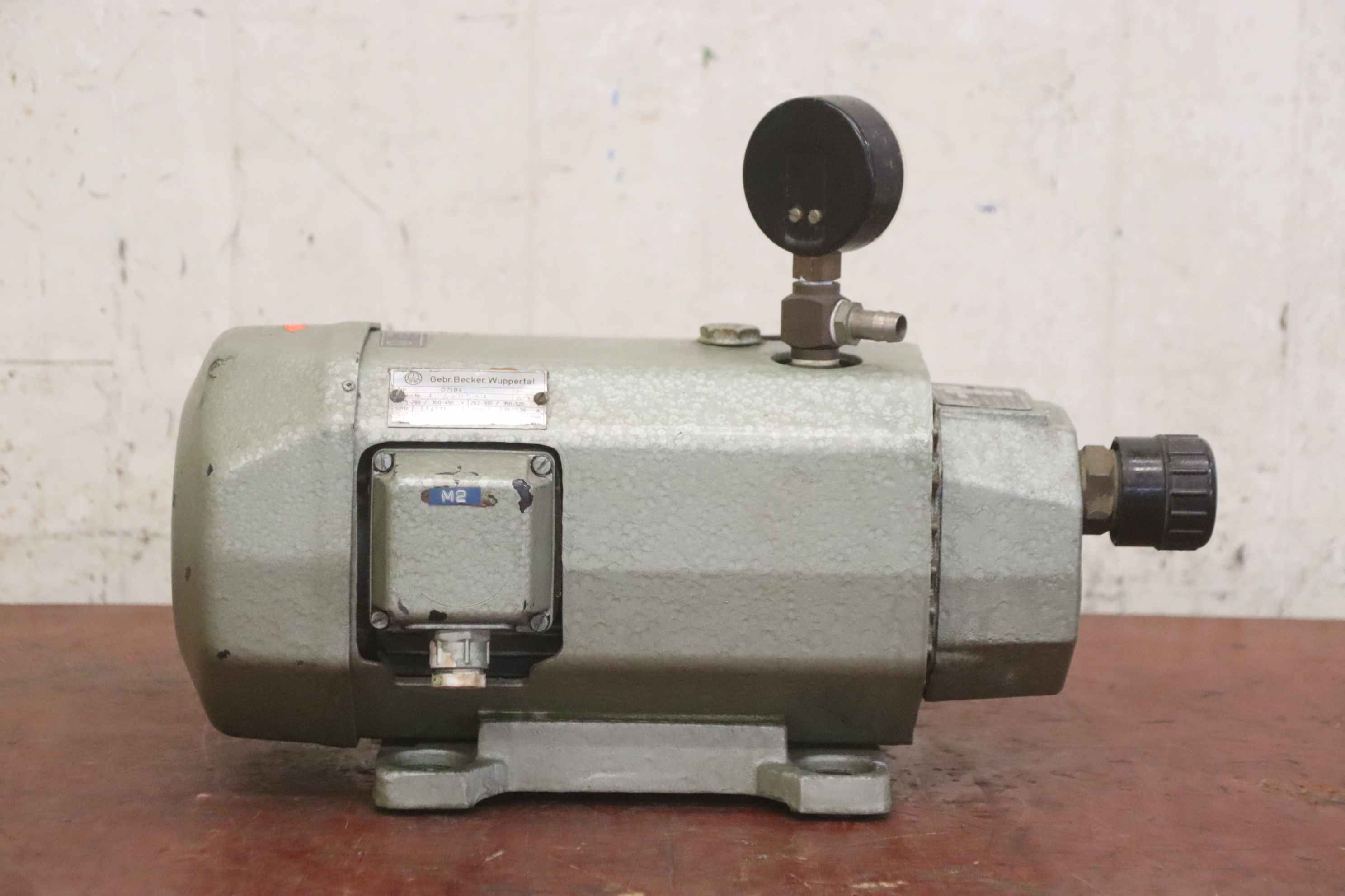 Vacuum pump, rotary vane pump, rotary vane vacuum pump, pressure/vacuum pump, rotary vane pressure/vacuum pump -Manufacturer: Becker, vacuum pump type VT 3.10 -Drive: 0.37 kW / 1420 rpm -Volume flow rate: 10 m³/h -Suction pressure: -850 mbar -Dimensions: 420/190/H285 mm -Weight: 15 kg