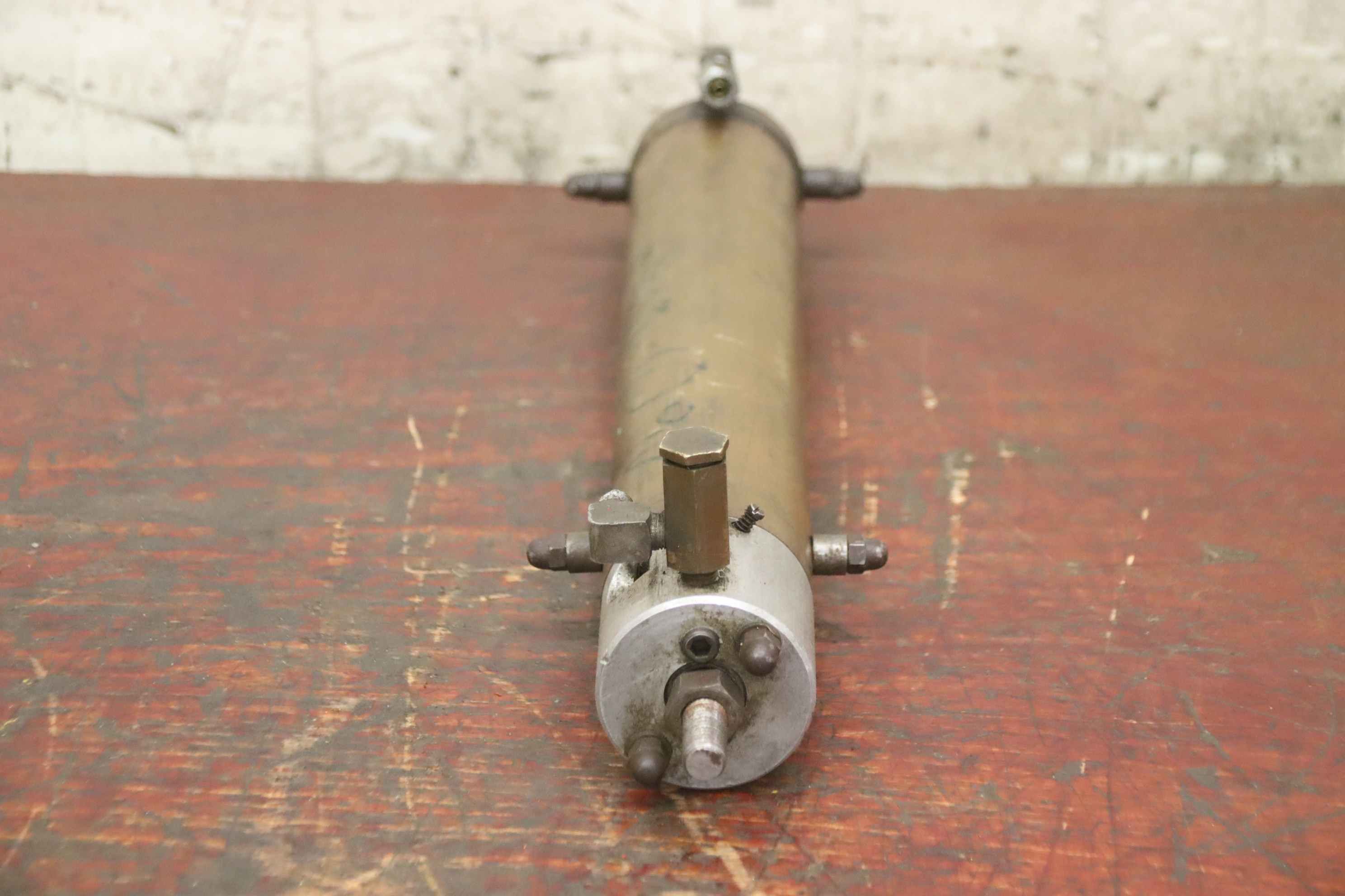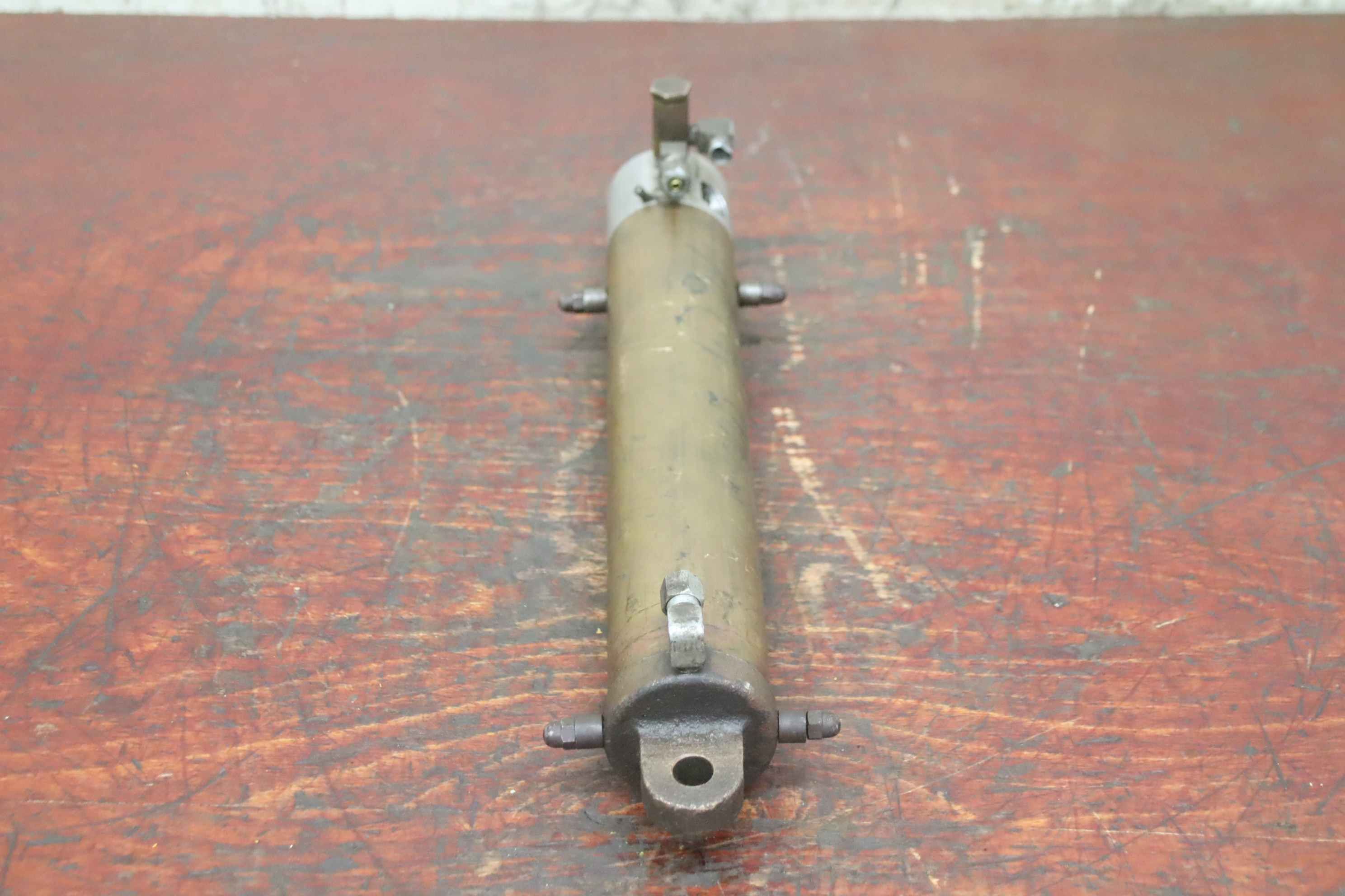 Hydraulic cylinders, support cylinders, hydraulic rams, pressure rams, swivel cylinders-Hydraulic cylinder: double-acting stroke 200 mm-Piston rod: Ø 16 mm / M12-Holes: Ø 14 mm-Dimensions: 450/105/H100 mm-Weight: 3.8 kg