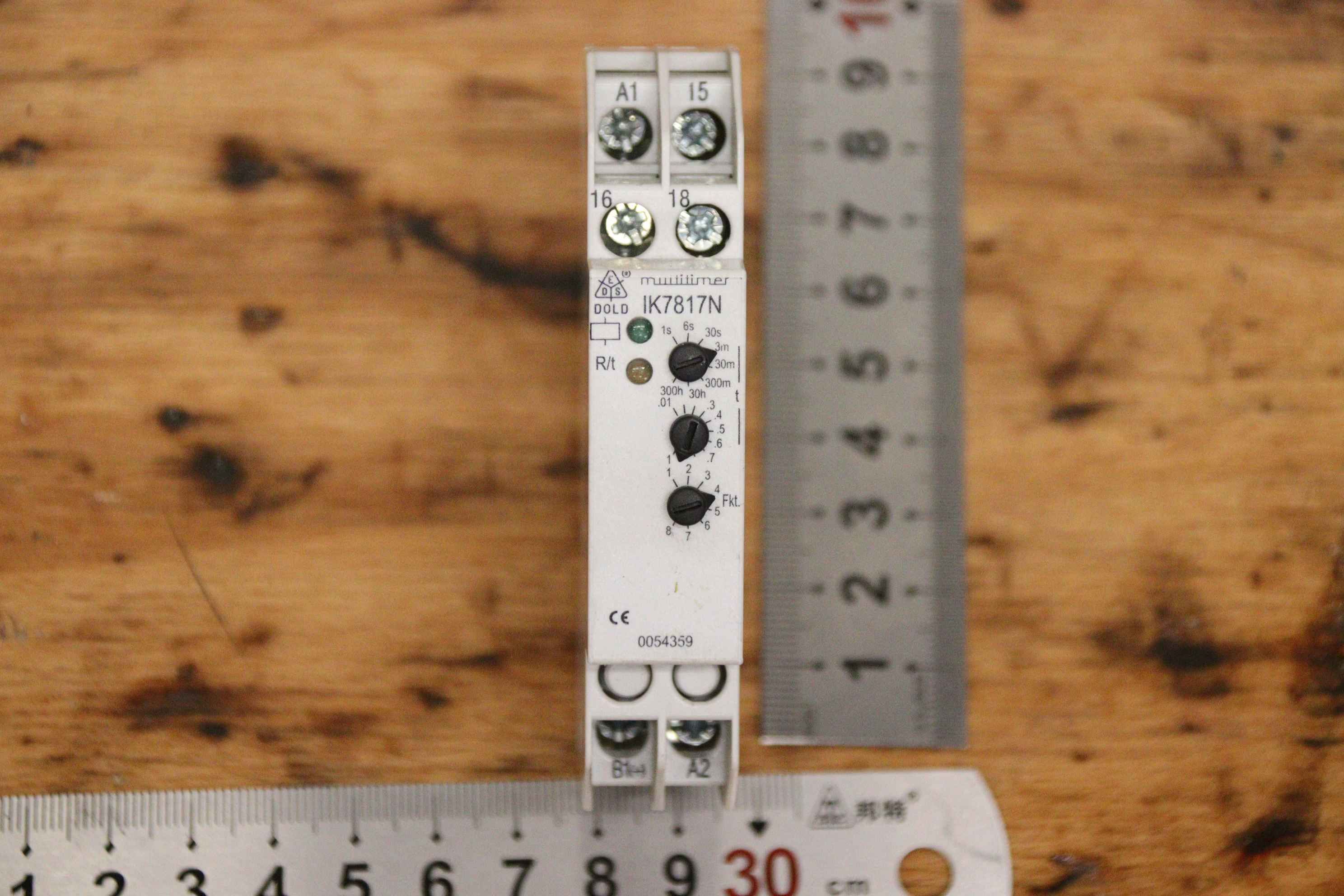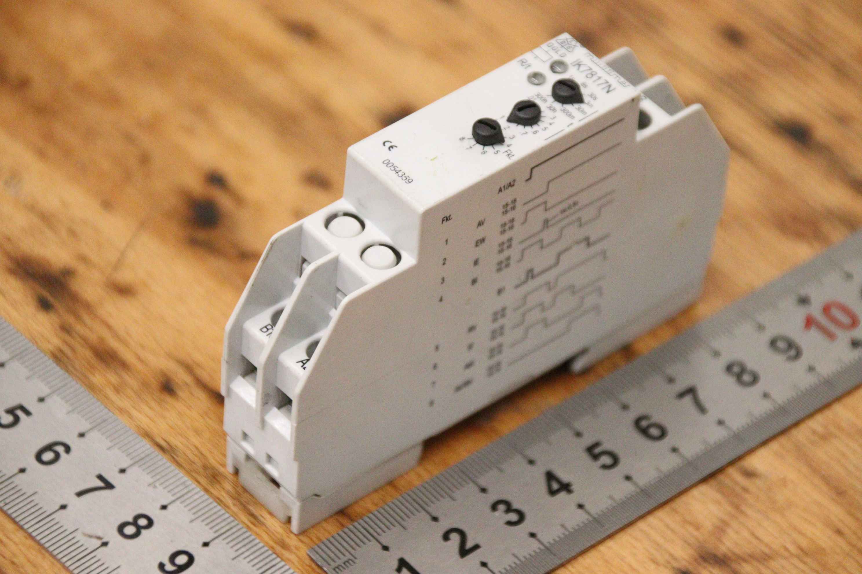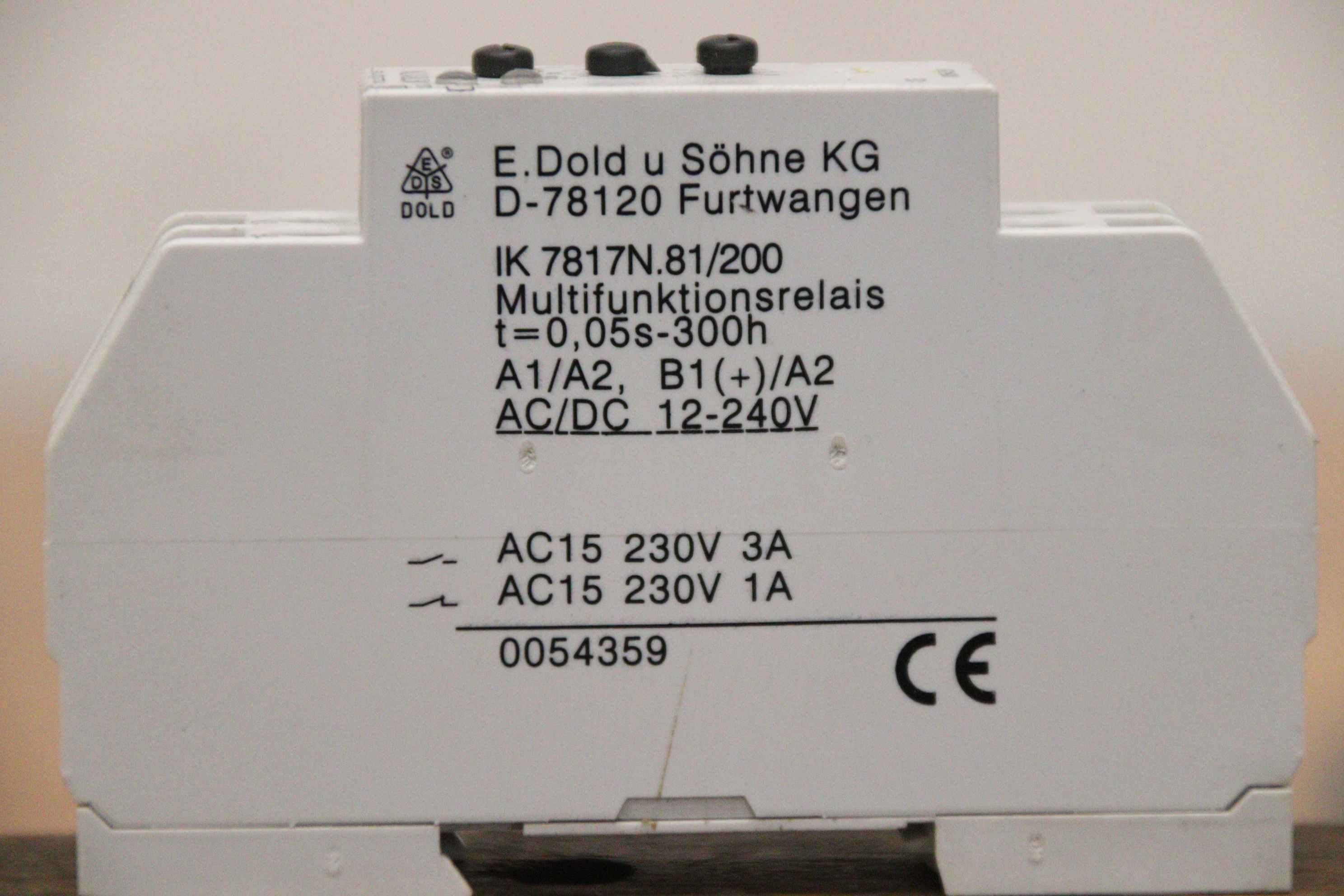 Safety relay, safety control, emergency stop switch, switching device, undervoltage relay, safety switching device, time relay, multifunction relay-Manufacturer: Dold, time relay multifunction relay-Type: IK 7817N.81/200-Number: 1x relay available-Dimensions: 90/20/H60 mm-Weight: 0.1 kg