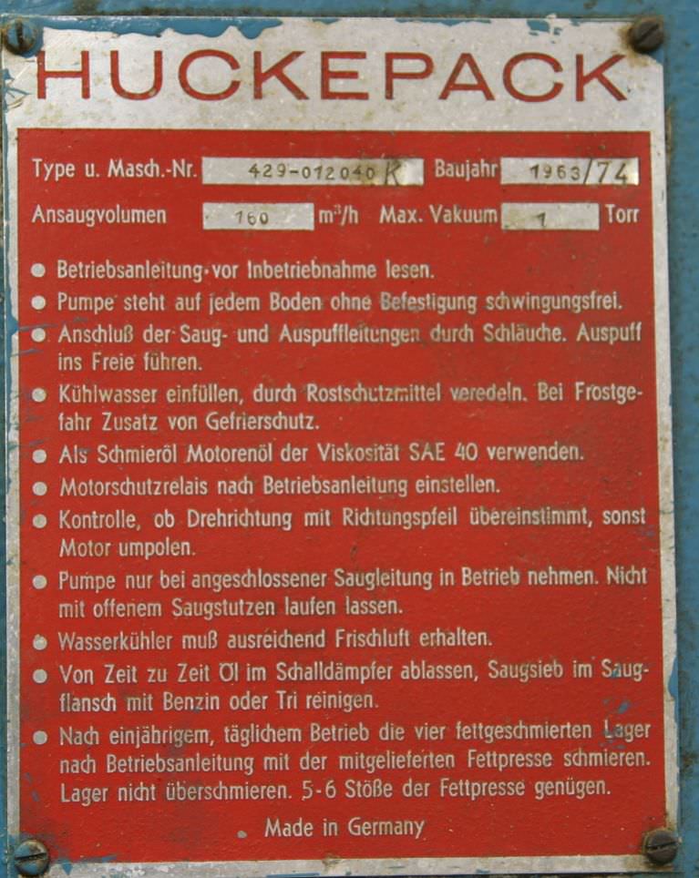Vacuum pump, rotary vane pump, rotary vane vacuum pump, pressure/vacuum pump, rotary vane pressure/vacuum pump -Drive: 5.5 kW -Speed: 1400 rpm -Intake volume: 160 m³/h -Weight: 240 kg