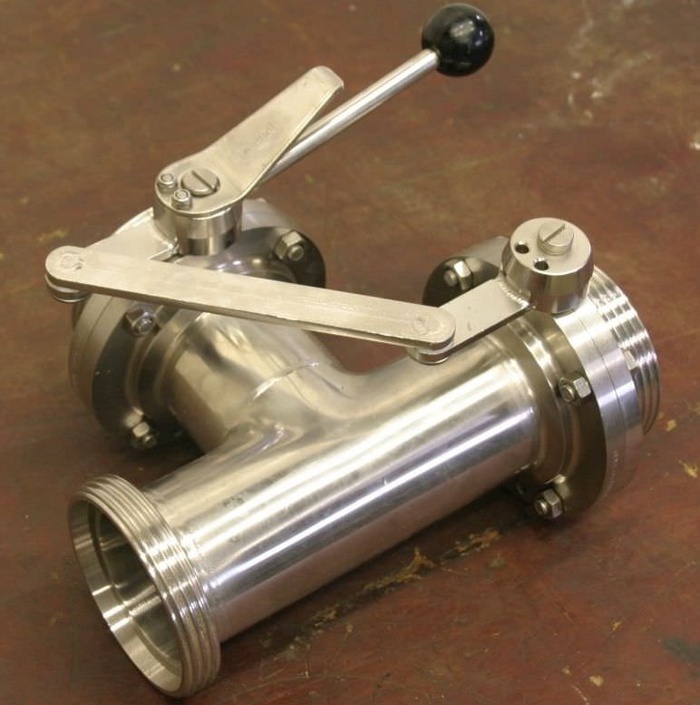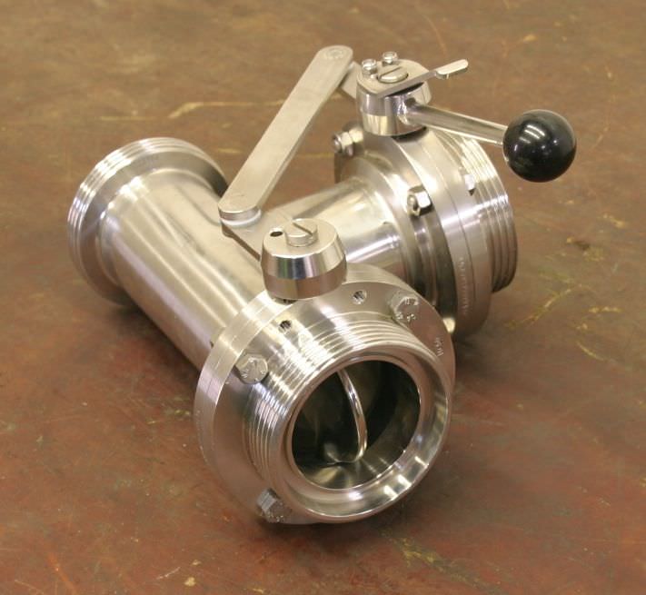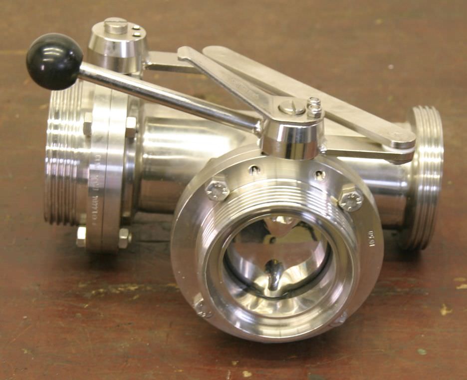 Disc valve, flap valve, ball valve -Drive: pneumatic -Connection: DN65 -Material: Stainless steel -Dimensions: 380/100/H130 mm -Weight: 7 kg