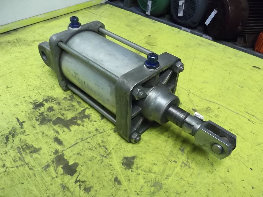 Pneumatic cylinders, air cylinders, pneumatic rams, air rams-Stroke: 100 mm-Piston diameter: approx. 100 mm-Piston rod: Ø 25 mm-Total length: 355 mm-Total length extended: 455 mm-Number: 1x available-Price: per piece-Dimensions: 117/117/H355 mm-Weight: 4.25 kg