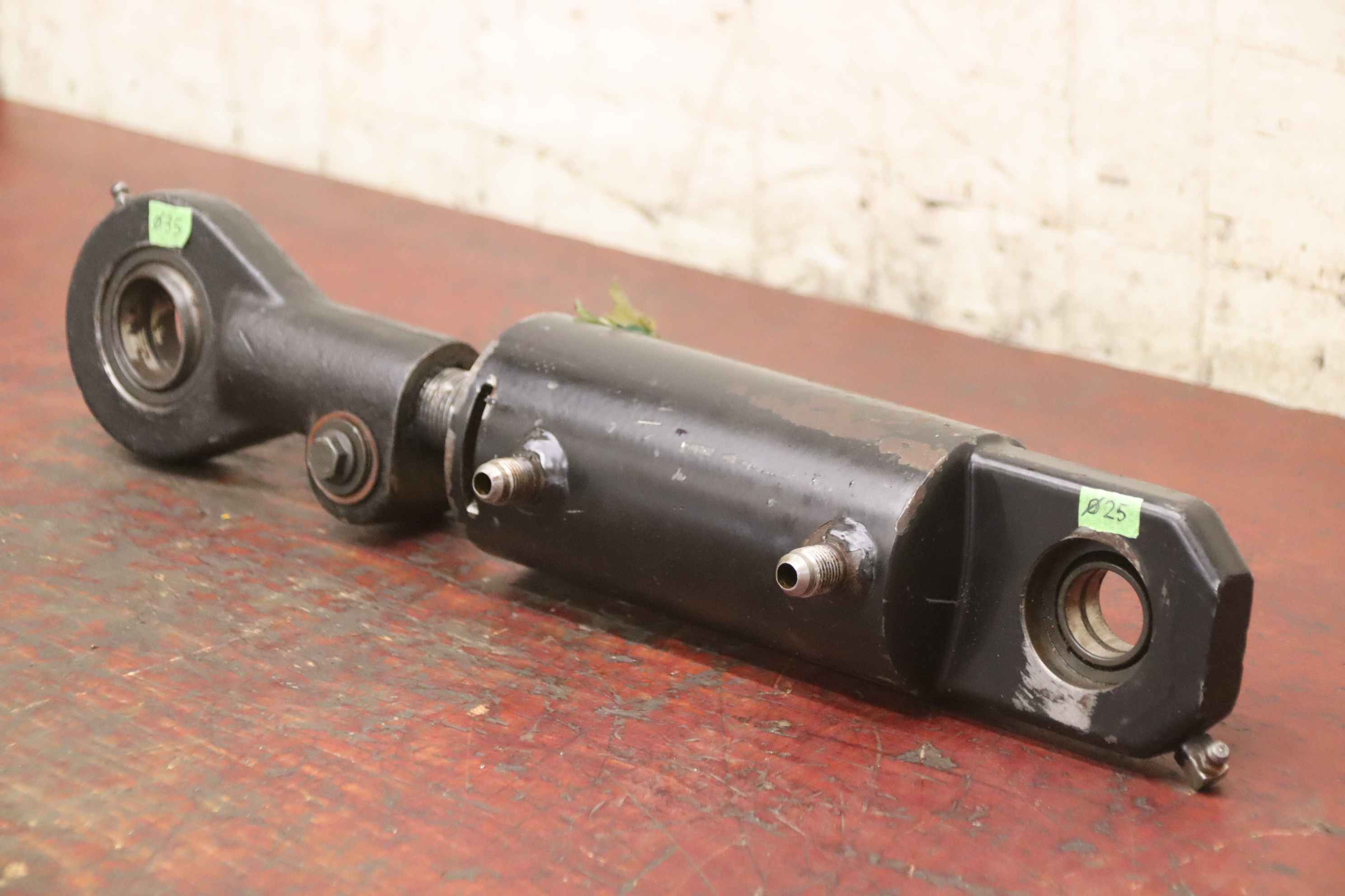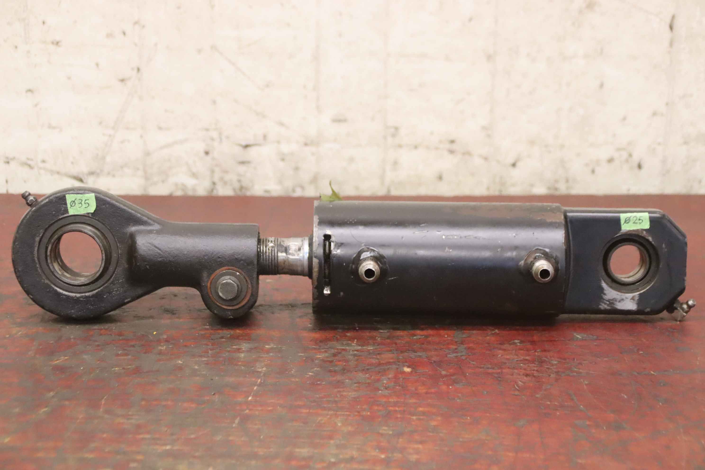 Hydraulic cylinders, support cylinders, hydraulic rams, pressure rams, swivel cylinders-Hydraulic cylinder: double-acting stroke 75 mm-Piston rod: Ø 28 mm-Holes: Ø 35/25 mm / Distance: retracted 380 mm-Dimensions: Ø 80 x 465 mm-Weight: 8.1 kg