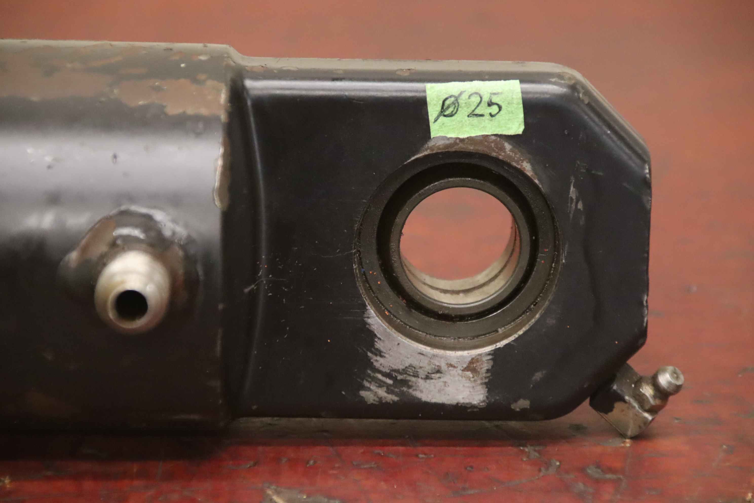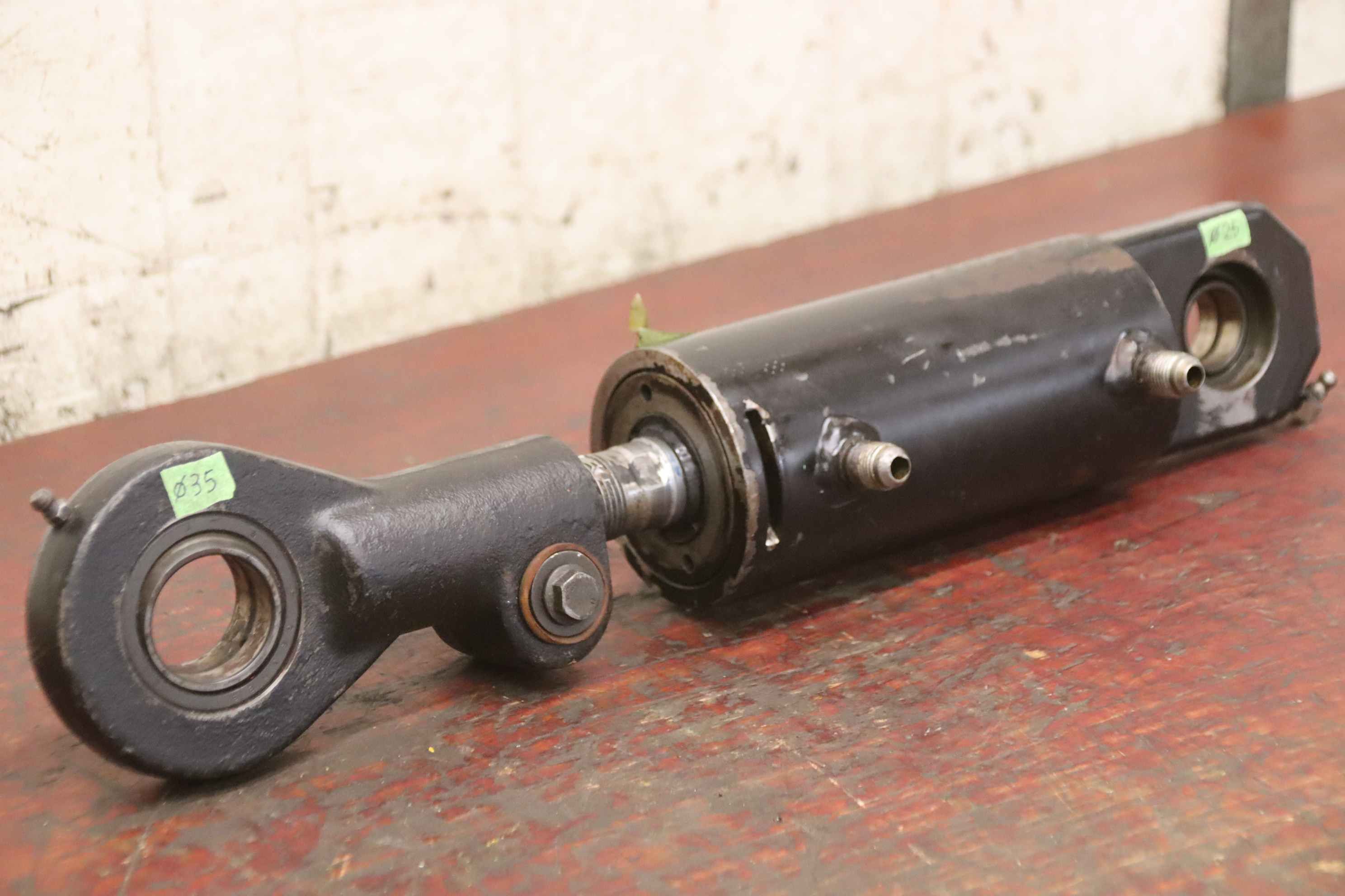 Hydraulic cylinder, support cylinder, hydraulic piston, pressure piston -Cylinder: approx. Ø 90 mm -Piston rod: Ø 60 mm -Pipe outer diameter: 120 mm -Stroke: 940 mm -Total length when retracted: 1510 mm -Piston tube mounting: Ø 25 mm -Piston rod mounting: Ø 35 mm -Ideal for building a hydraulic press -Quantity: 1 piece available -Weight: 80 kg