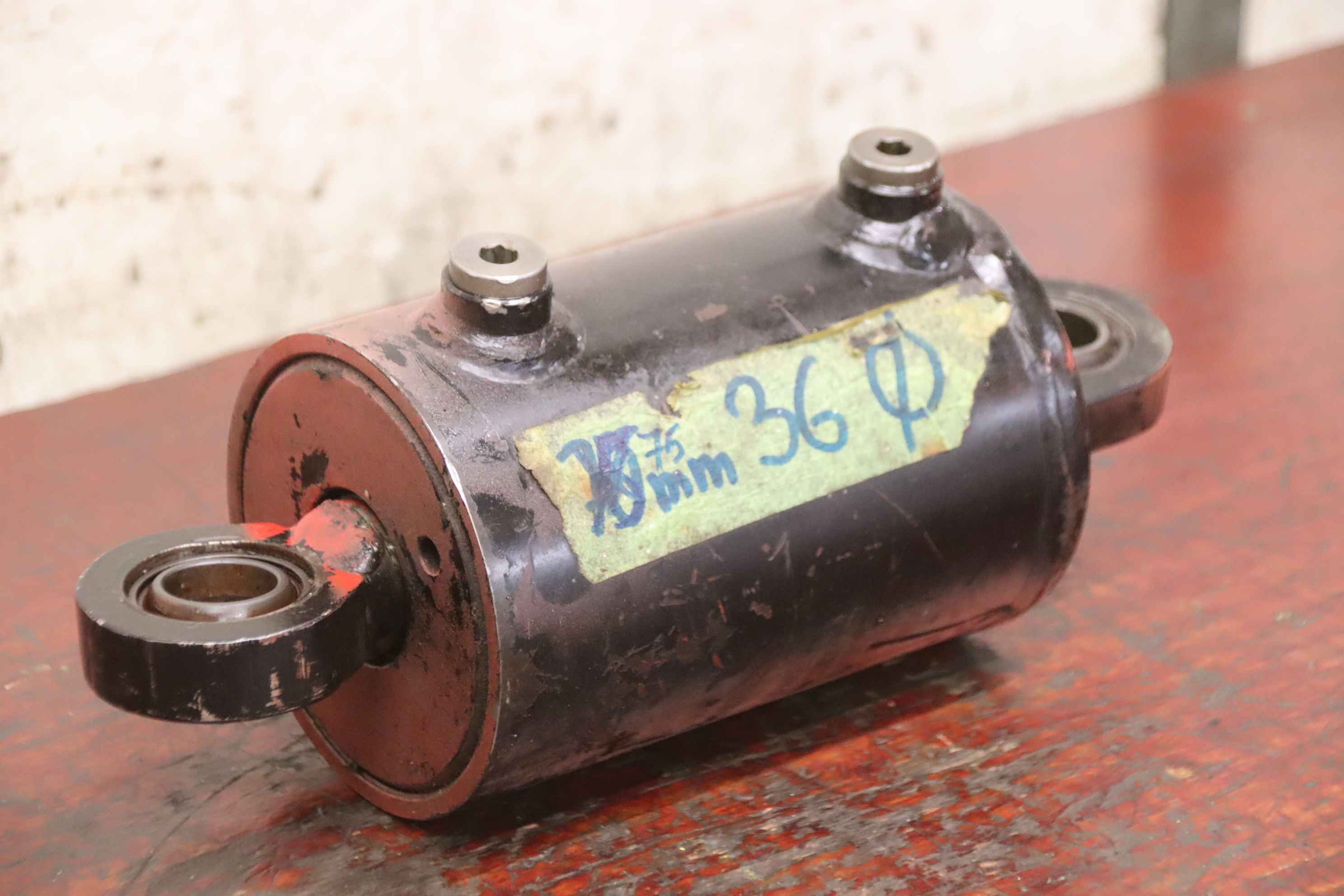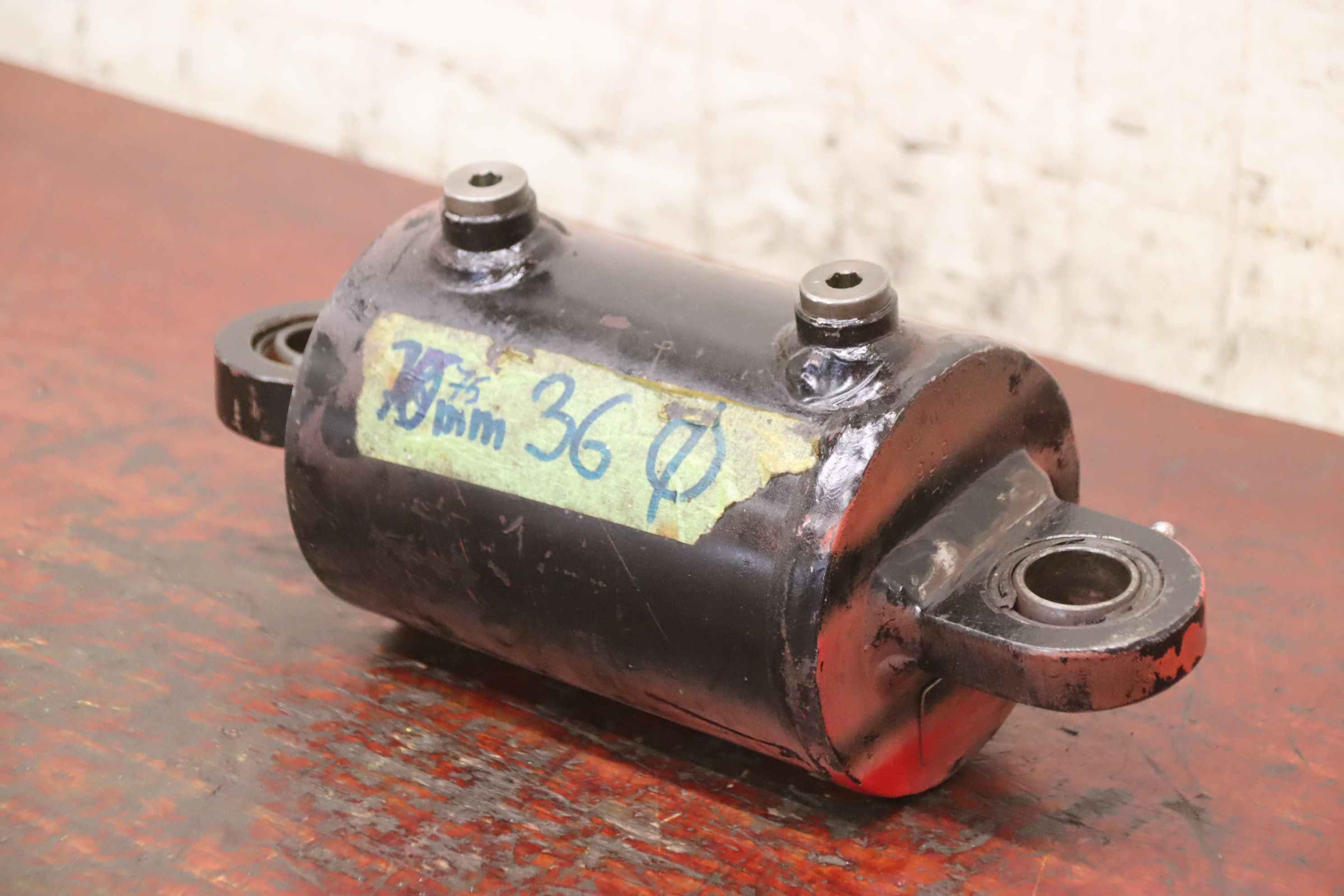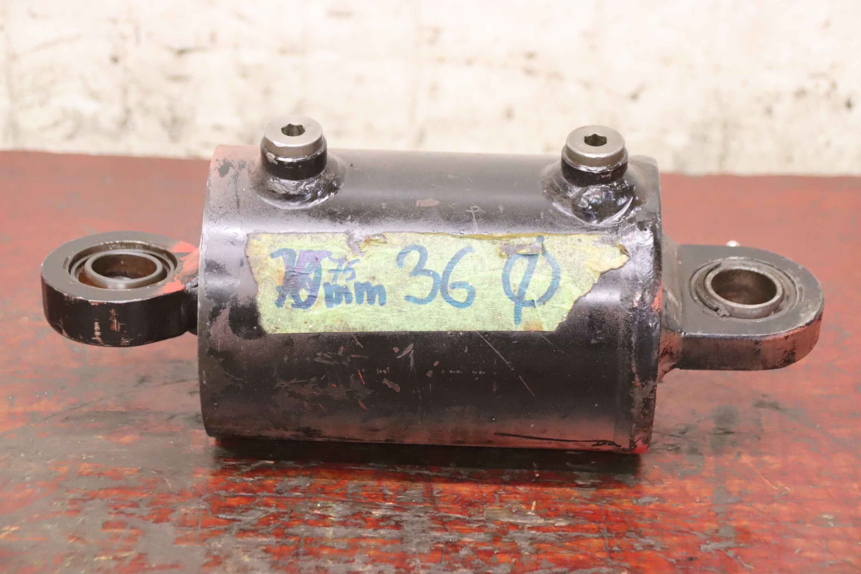 Hydraulic cylinders, support cylinders, hydraulic rams, pressure rams, swivel cylinders-Hydraulic cylinder: double-acting stroke 75 mm-Piston rod: Ø 36 mm-Holes: Ø 25 mm / Distance: retracted 240 mm-Dimensions: Ø 115 x 304 mm-Weight: 9.8 kg