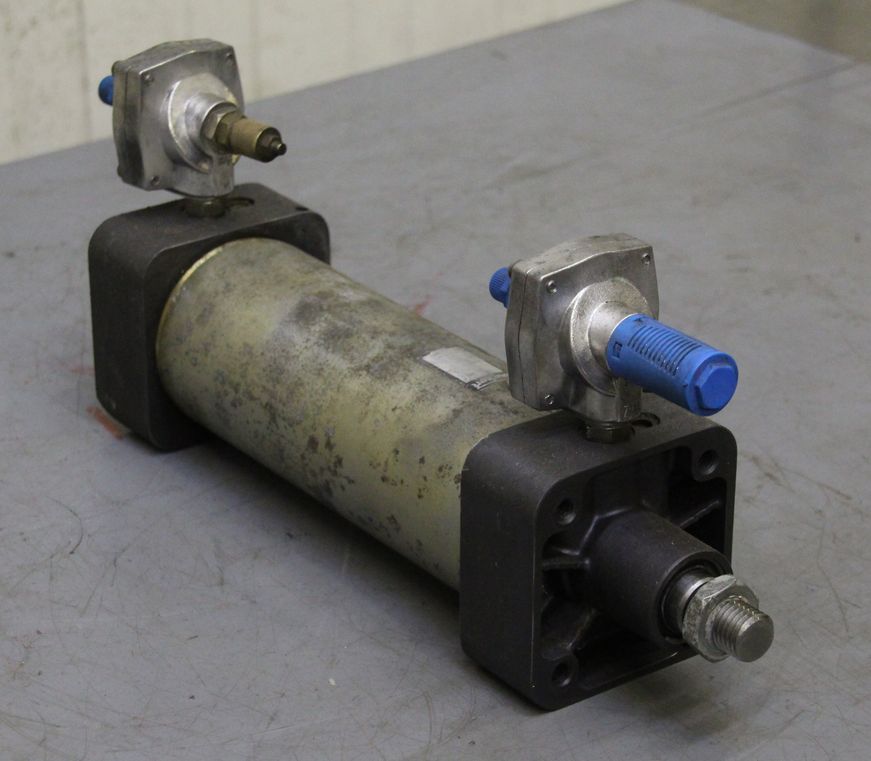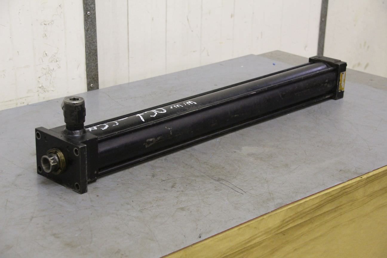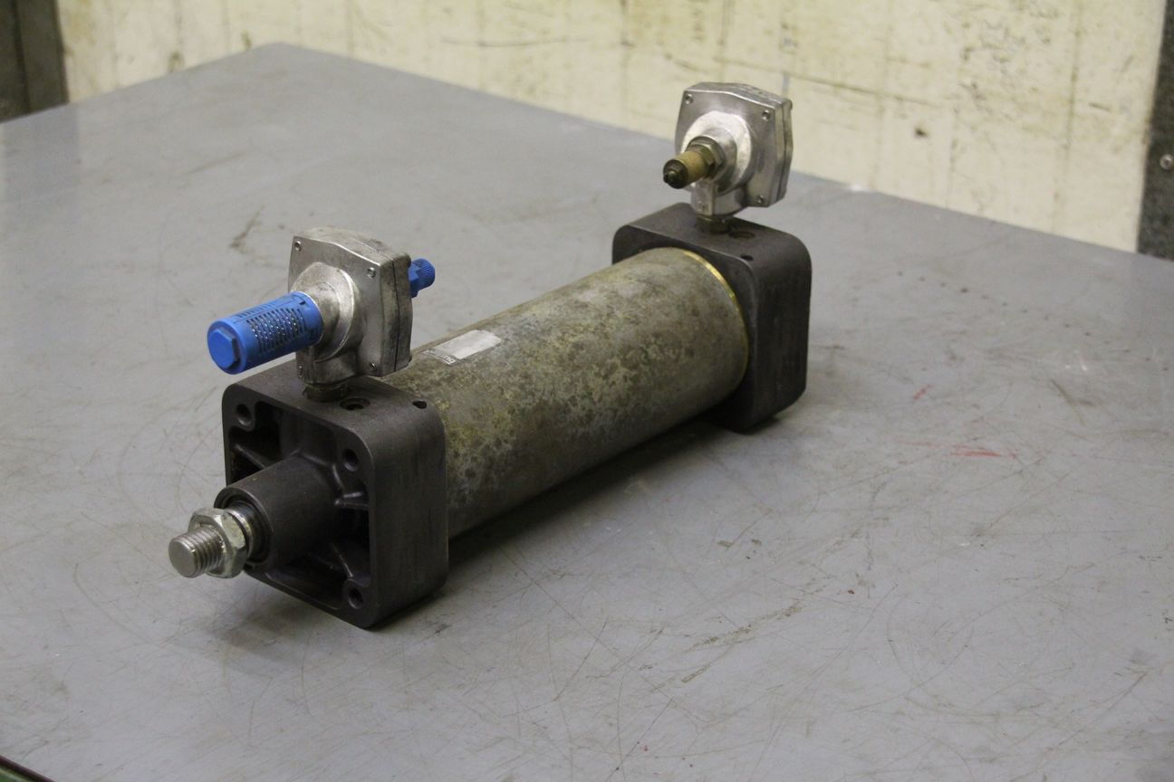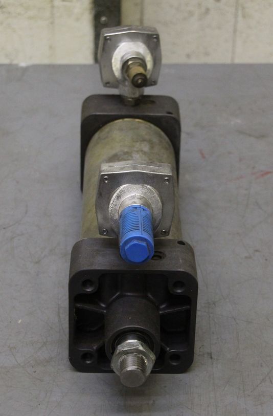 Pneumatic cylinder, standard cylinder, air cylinder, pneumatic piston, air piston -Stroke travel: 200 mm -Piston diameter: 43 mm -Piston rod: 25 mm -Total length: 390 mm -Total length extended: 590 mm -Price: per piece -Quantity: 2 available -Dimensions: 100/100/H390 mm -Weight: 6.5 kg/piece