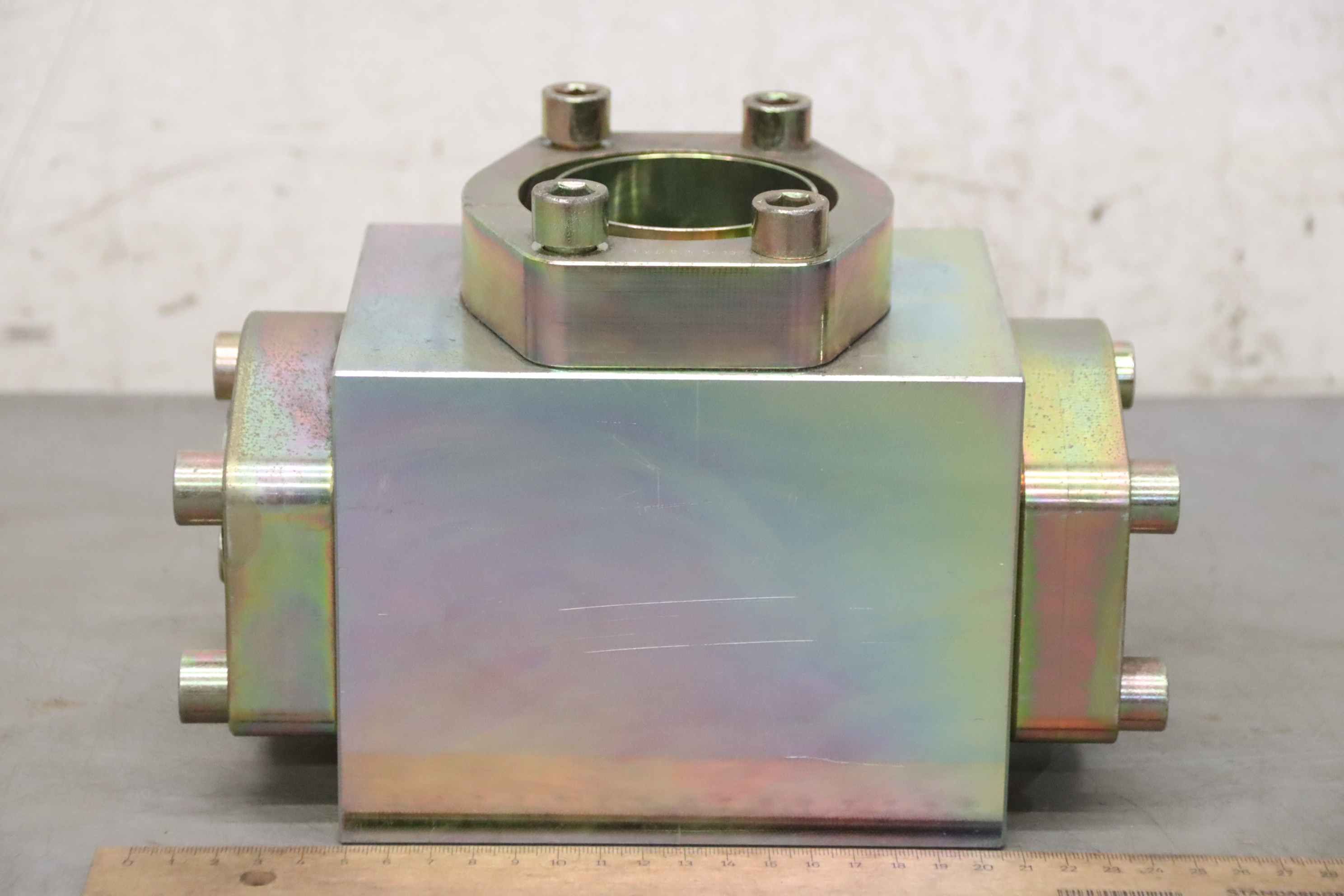 Hydraulic distribution block, hydraulic fitting, hydraulic T-distributor, hydraulic distributo-Hydraulic fitting: T-distributor 2 1/2-Type: 3000-2 1/2-76.1 A3L-Number: 6x distributor block available-Price per piece-Total dimensions: 235/120/H160 mm-Weight: 17 kg/pc.