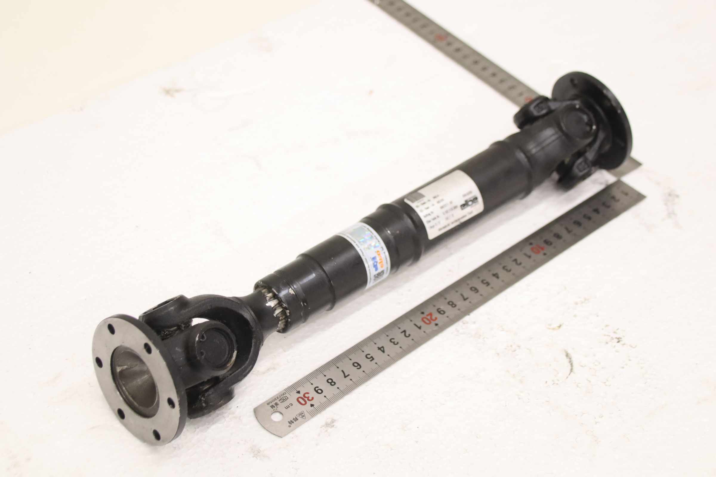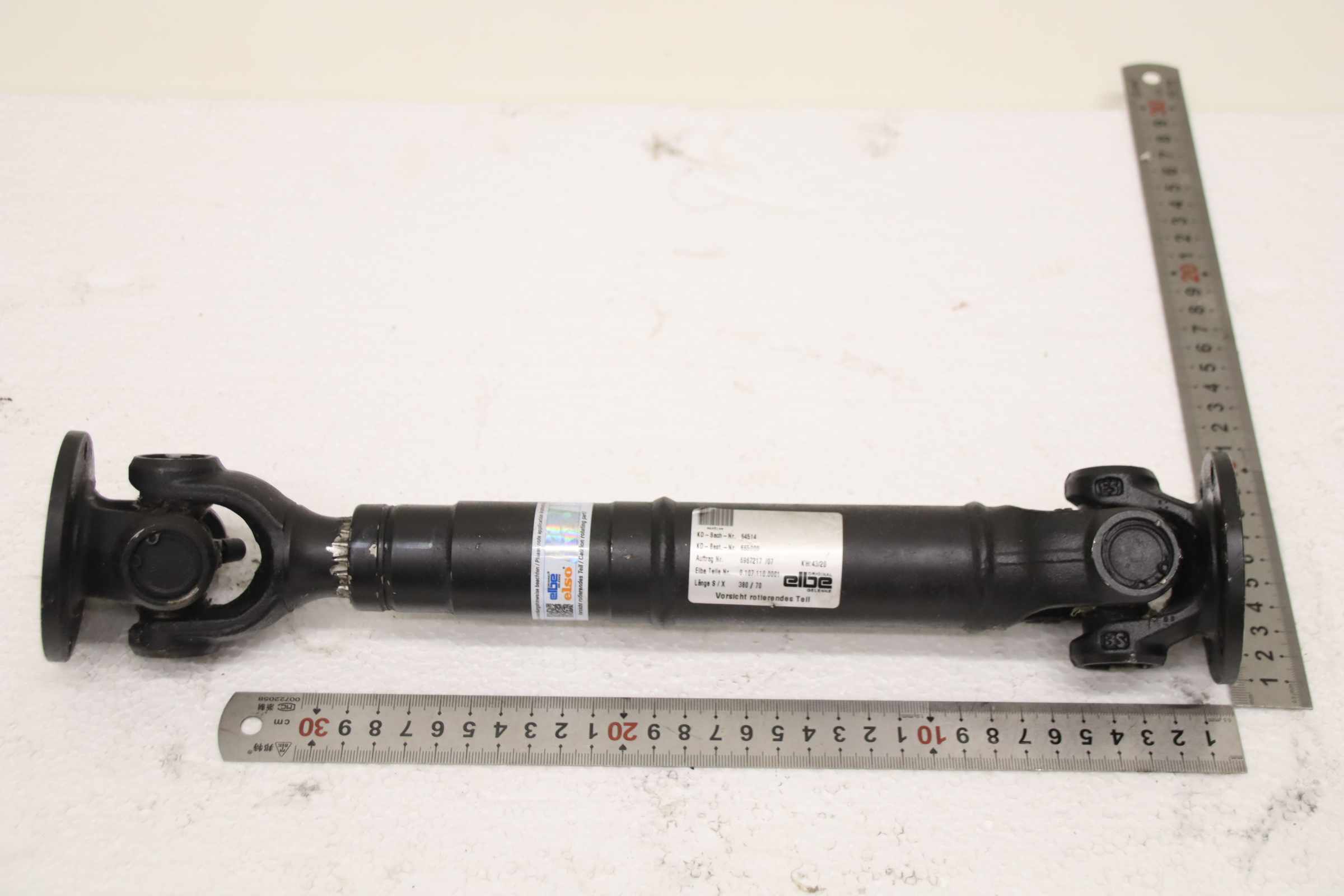 Cardan shaft, universal joint, universal joint with flange, drive shaft, cardan joint -Manufacturer: Elbe, Cardan shafts with universal joint -Type: Length S/X 380/70 -Elbe Art.No.: 0.107.110.0001 -Flange Ø 75 mm -Bolt circle: Ø 62 x 6 mm -Dimensions: Ø 75 x 380 mm -Weight: 3.2 kg