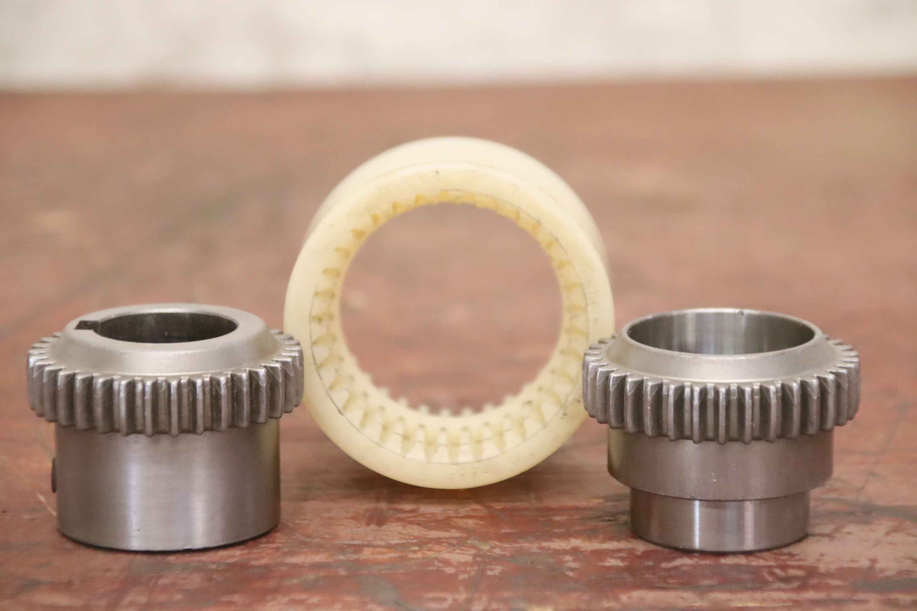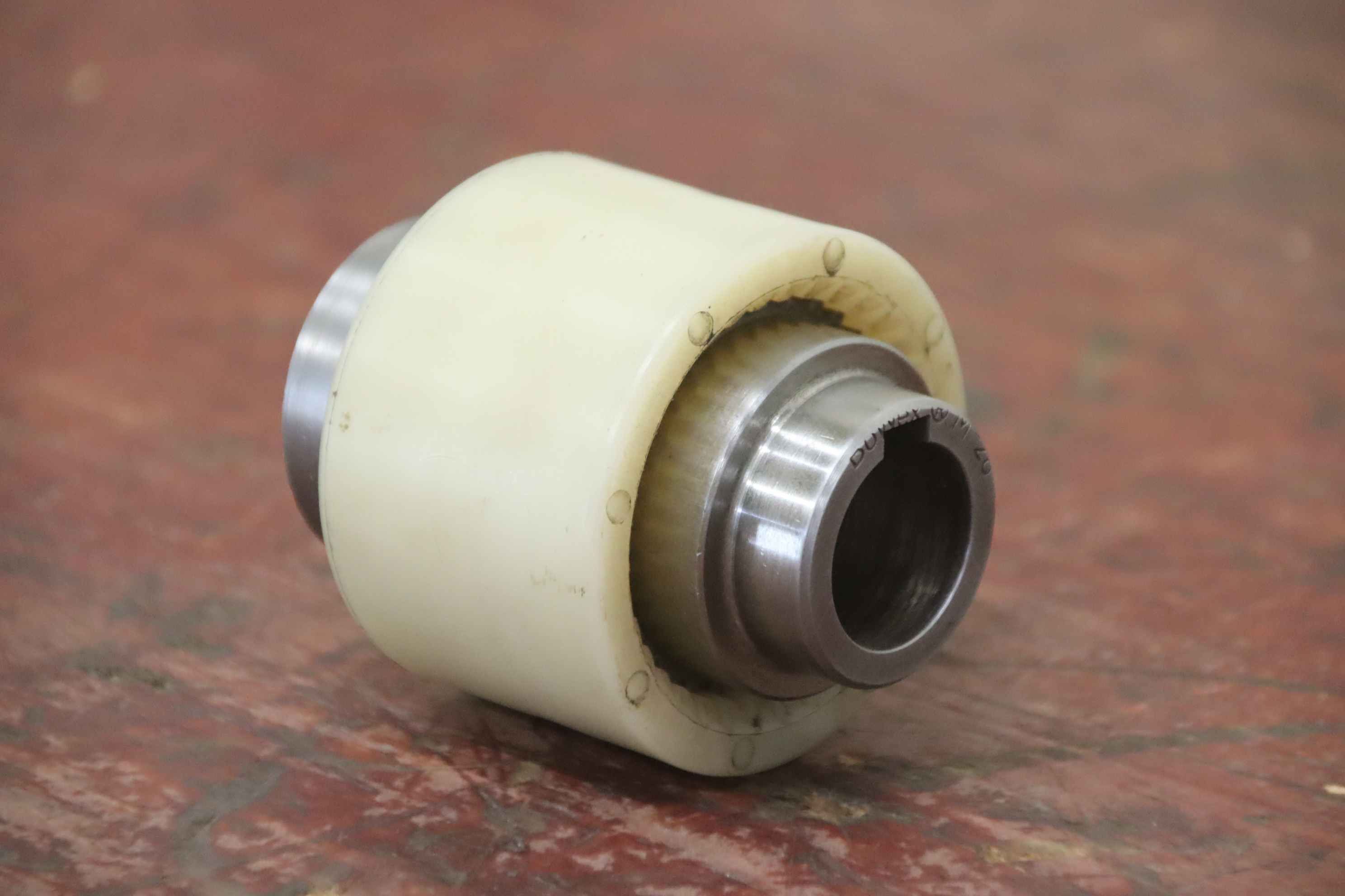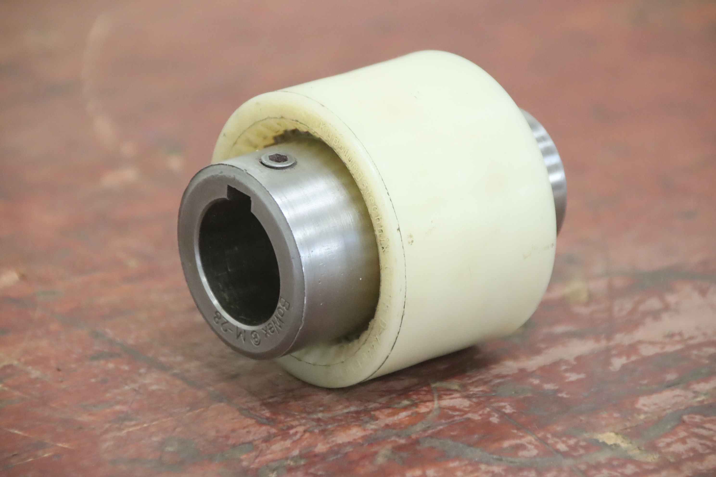 Metal bellows coupling, claw coupling, connecting coupling, torsionally flexible coupling, shaft coupling, flexible coupling, gear coupling, tooth coupling, curved tooth coupling-Manufacturer: KTR, double cardanic curved tooth coupling tooth coupling-Type: BoWex M-28-Hub: Ø 25/28 mm-Dimensions: Ø 66 x 80 mm-Weight: 0.6 kg