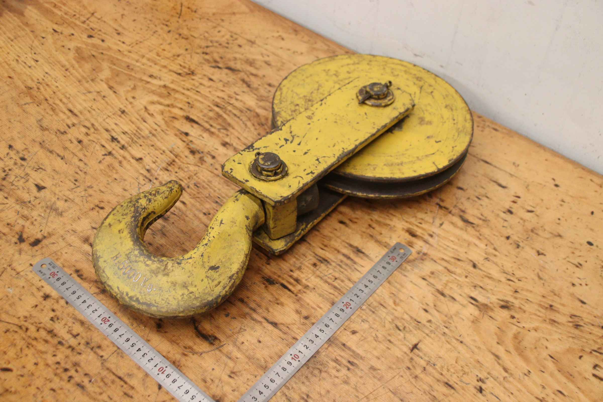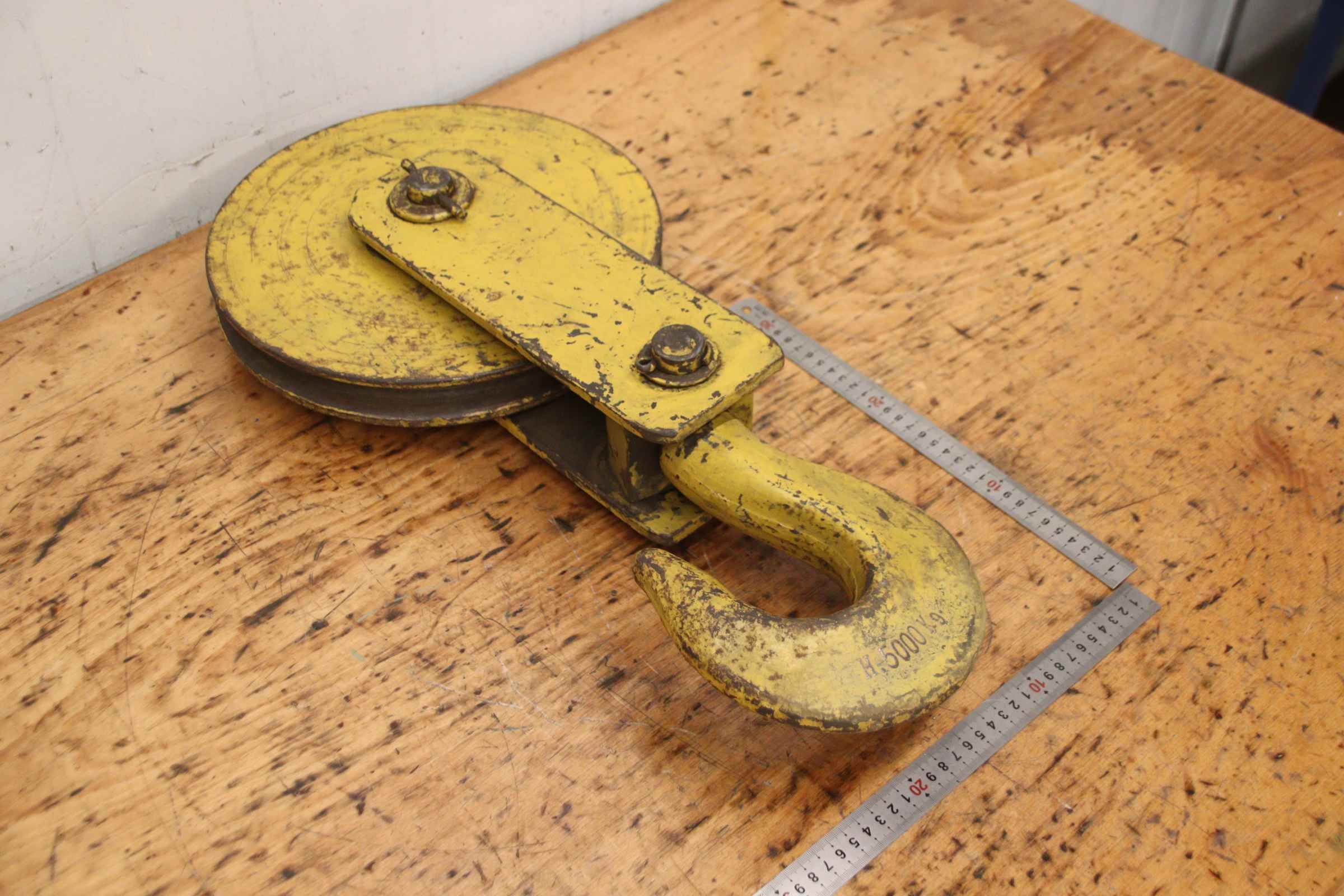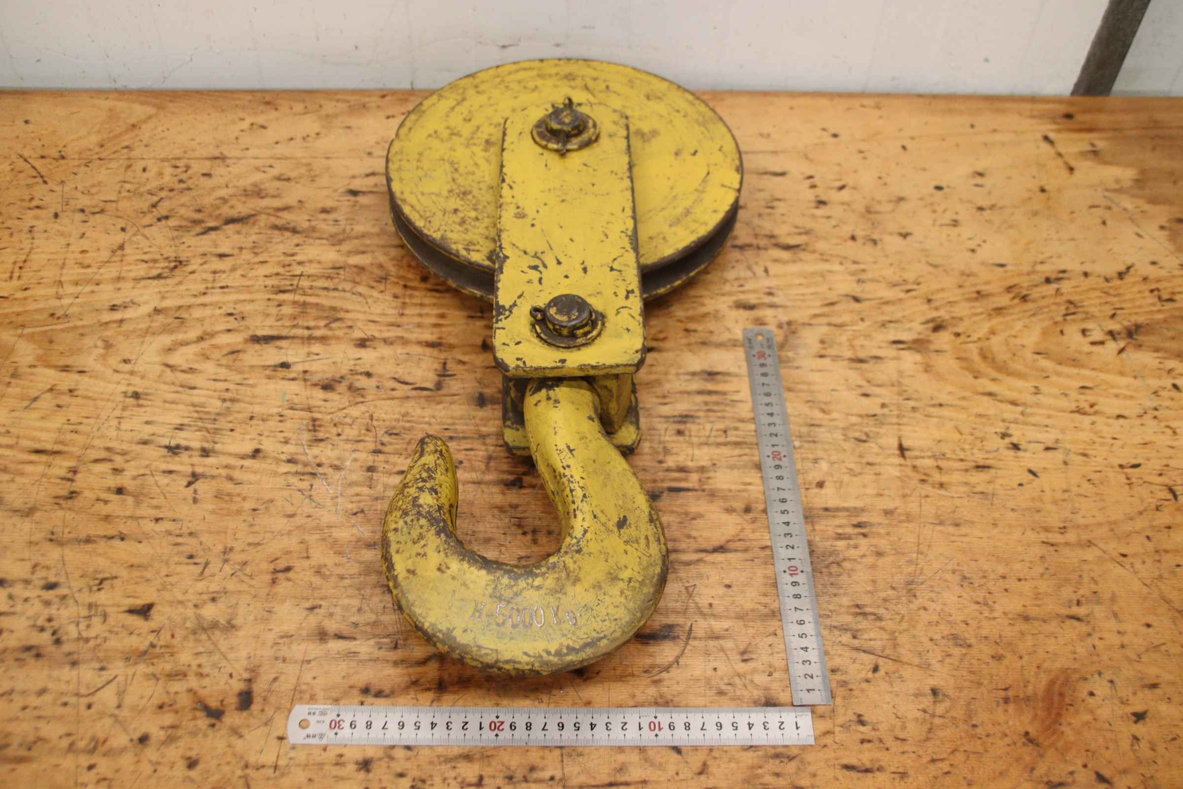 Crane block, crane hook, load hook, single hook, bottom block -Crane hook: Crane hook load capacity 5 t -Rope groove: Ø up to 22 mm / see photos -Dimensions: 630/297/130 mm -Own weight: 32.6 kg