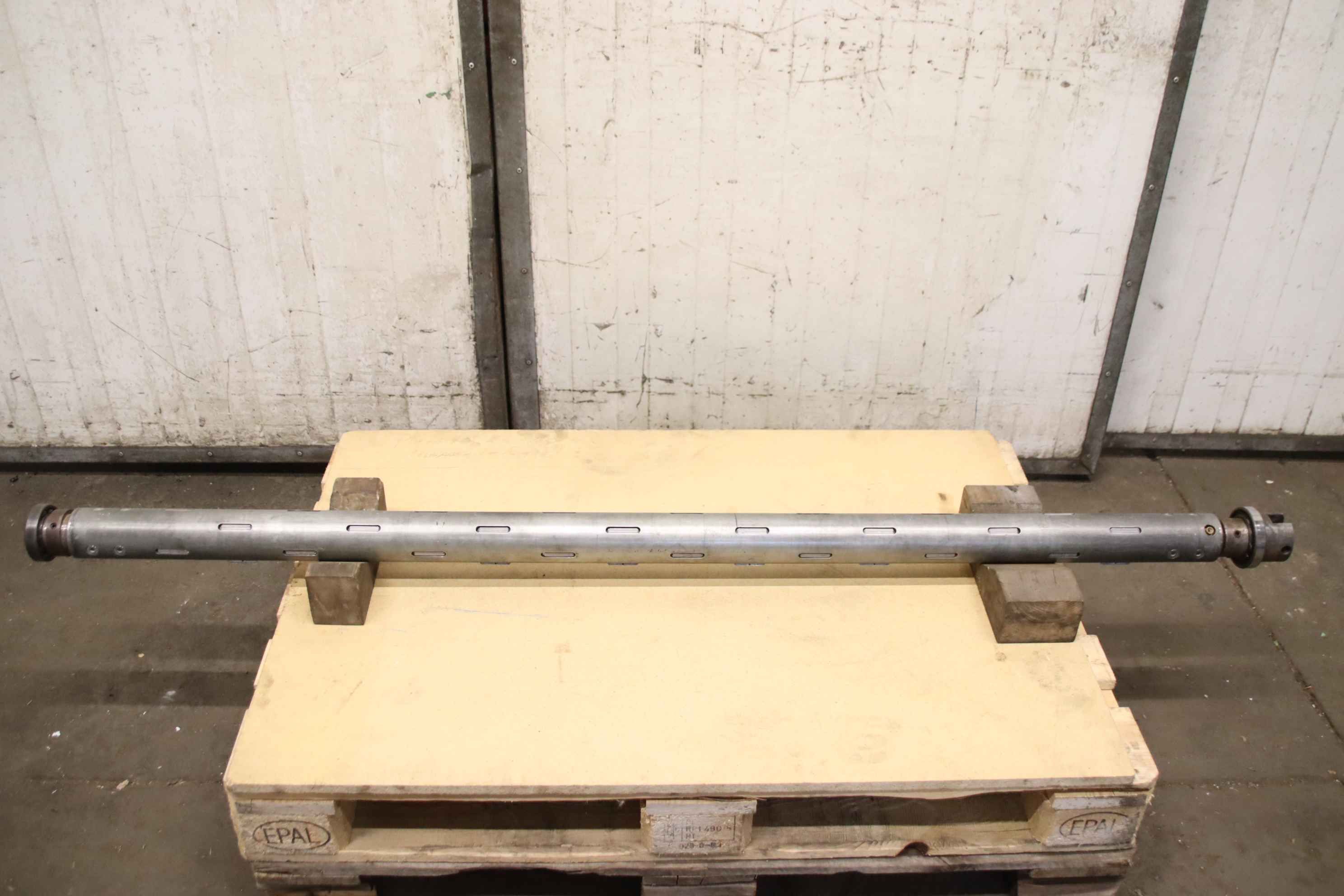 Pallet wrapper, strapping machine, packaging machine, strapping machine, skinpack machine, stretch wrapping machine, stretch film machine, winding roll, roll carrier for cardboard roll -Roll carrier: winding roll for packaging machine -Roll: Ø 75 x 1700 mm -Drive shaft/mount: Dimensions see photos -Dimensions: Ø 95 x 1880 mm -Weight: 35 kg