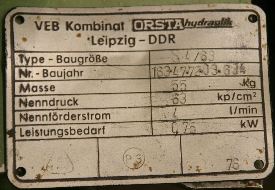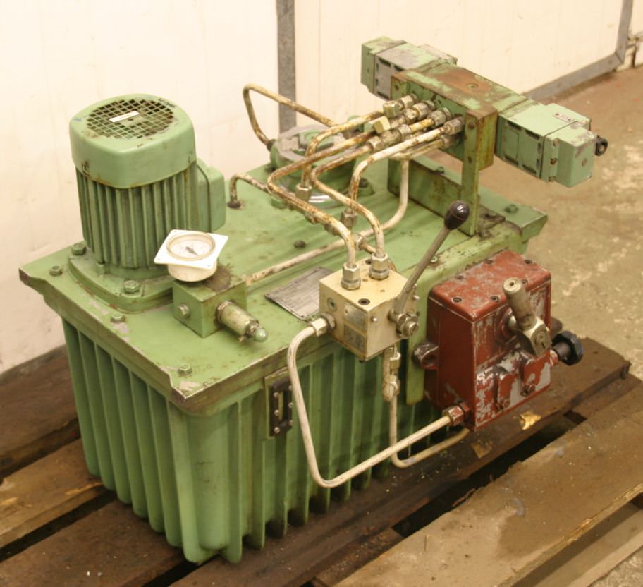 Hydraulic unit, hydraulic pump, hydraulic pump -Max. pressure: 63 bar -Liter flow rate: 4 l/min -Drive: 0.75 kW -Hydraulic tank -Hydraulic valve - Additionally: Hand hydraulic pump -Weight: 110 kg
