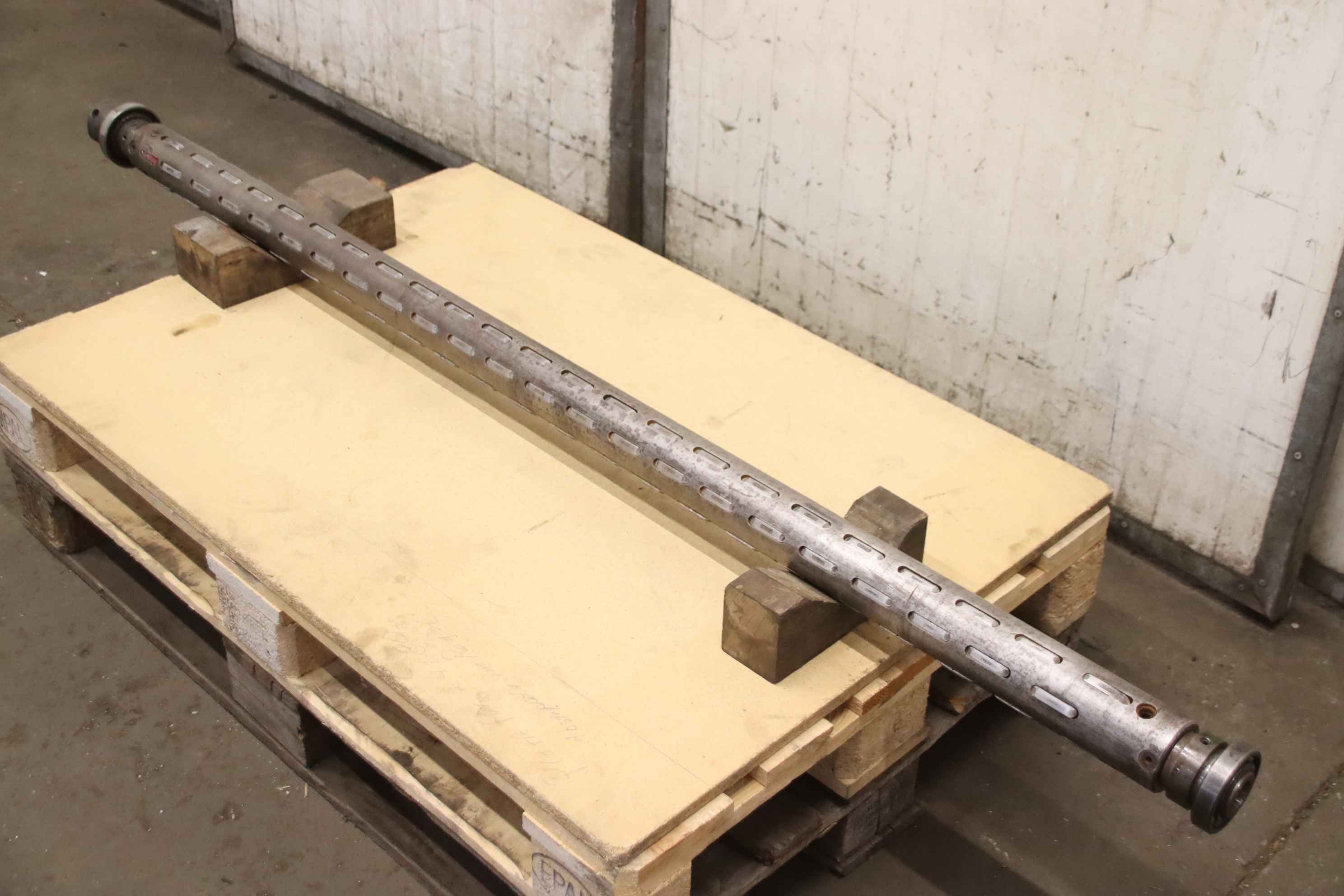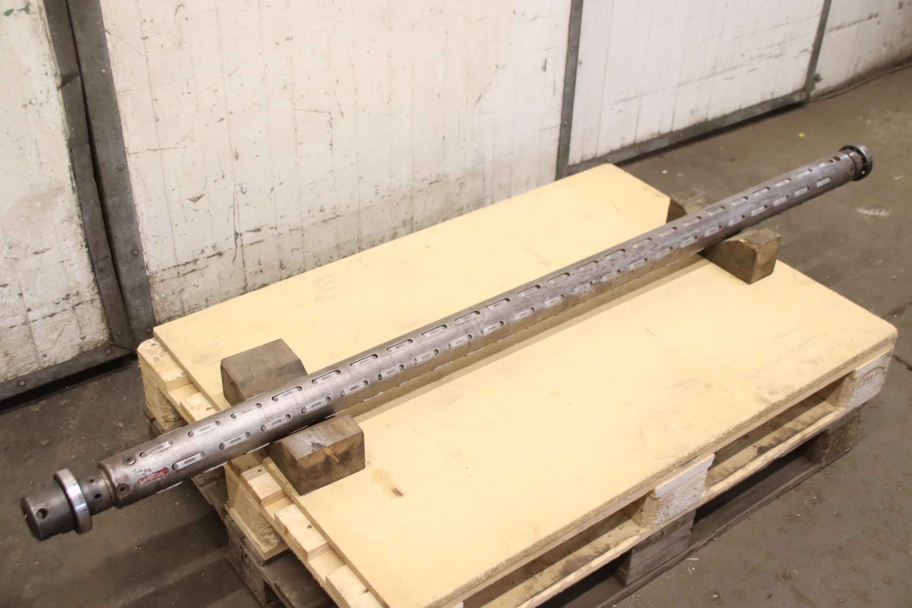 Pallet wrapper, strapping machine, packaging machine, strapping machine, skinpack machine, stretch wrapping machine, stretch film machine, wrapping roller, roll carrier for cardboard roll -Roller carrier: Winding roll for packaging machine -Roller: Ø 75 x 1700 mm -Drive shaft/mount: Dimensions see photos -Dimensions: Ø 95 x 1880 mm -Weight: 35 kg