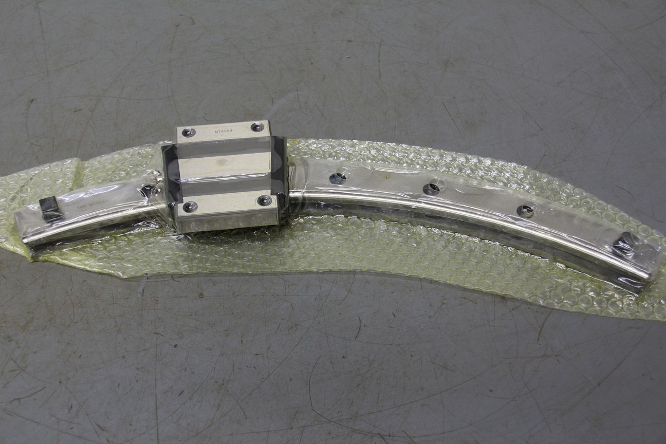 Linear bearings, linear rails, linear guides, roller guide rails, for guide carriages, guide rails, curved guides, cam bearings, cam track bearings, profile rails -Condition: original packaging -Manufacturer: THK, arch guide with guide carriage -Type: HCR35A1RR 60/500R -Quantity: 4 pieces -Price: per piece -Package dimensions: 800/230/H120 mm -Weight: 6.1 kg/pc.