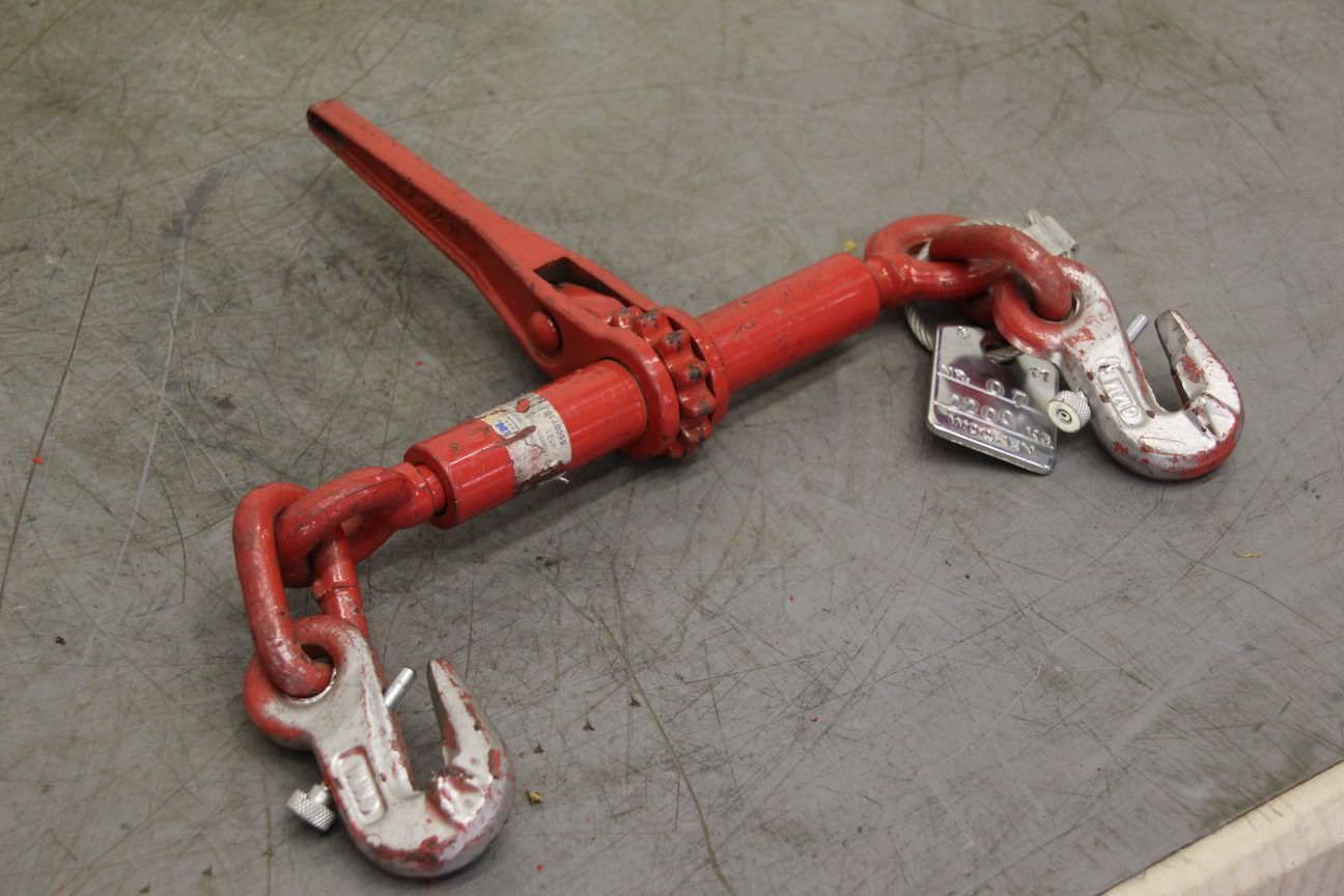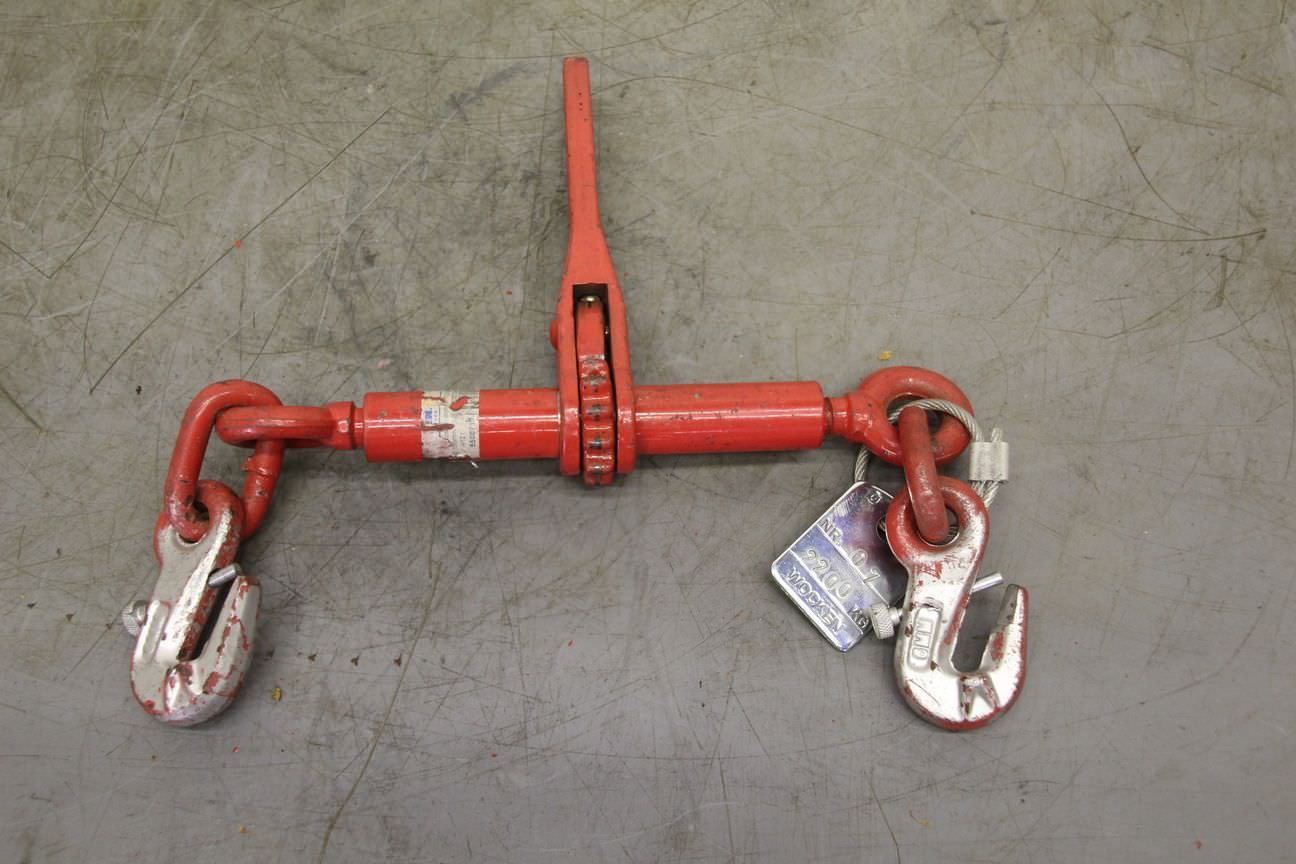 Ratchet tensioner for chain, safety chain, excavator safety, load safety -Load capacity: 2200 kg -Number: 4x available -Price: per piece -Dimensions: 275/280/H50 mm -Weight: 1.8 kg/each