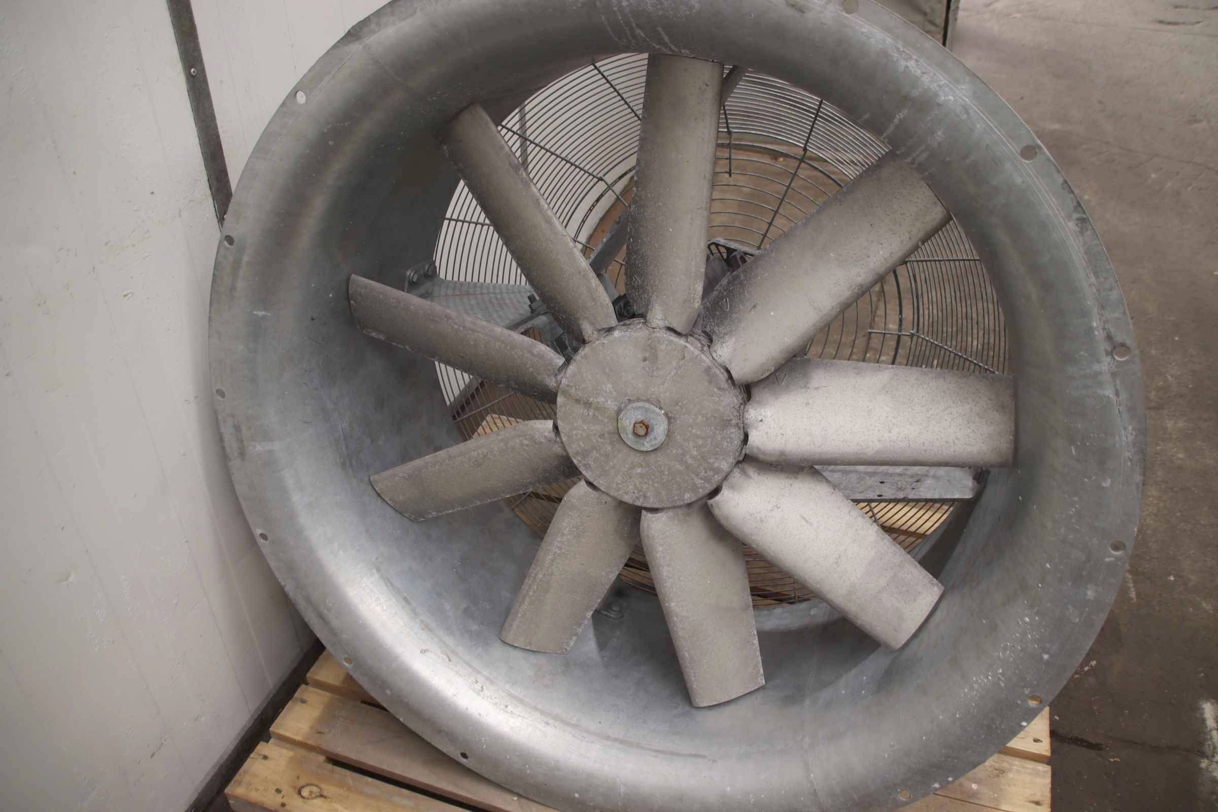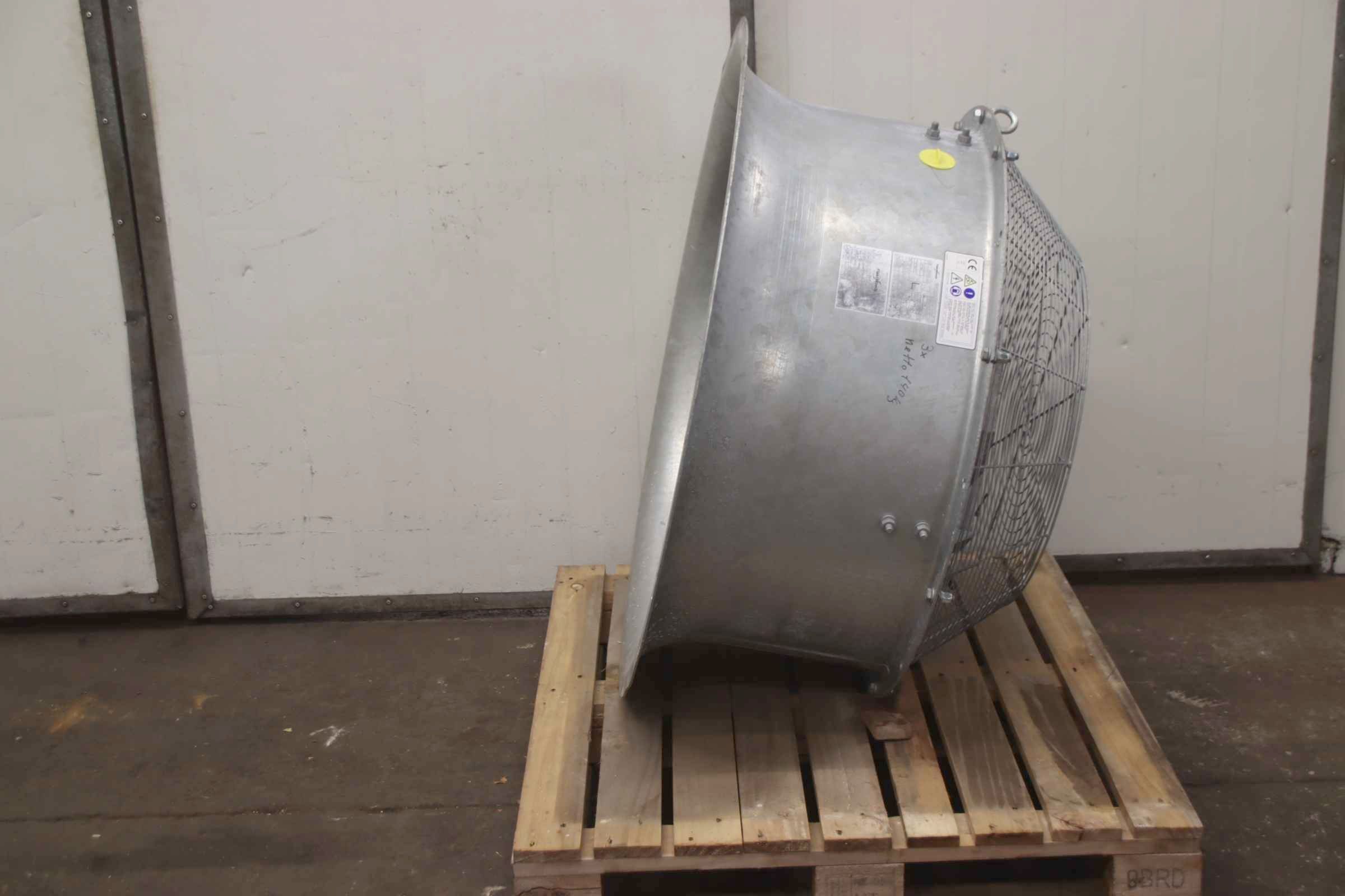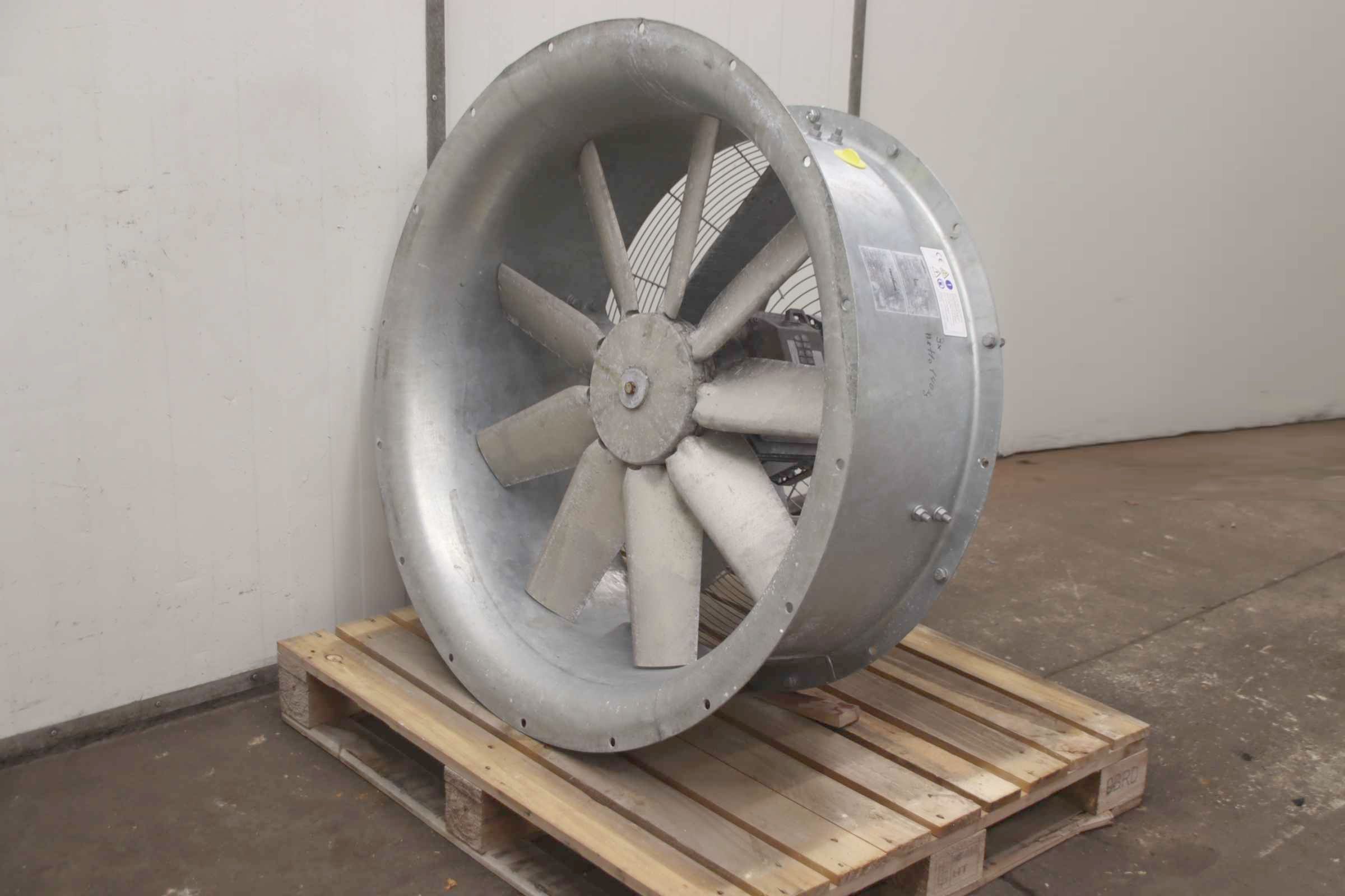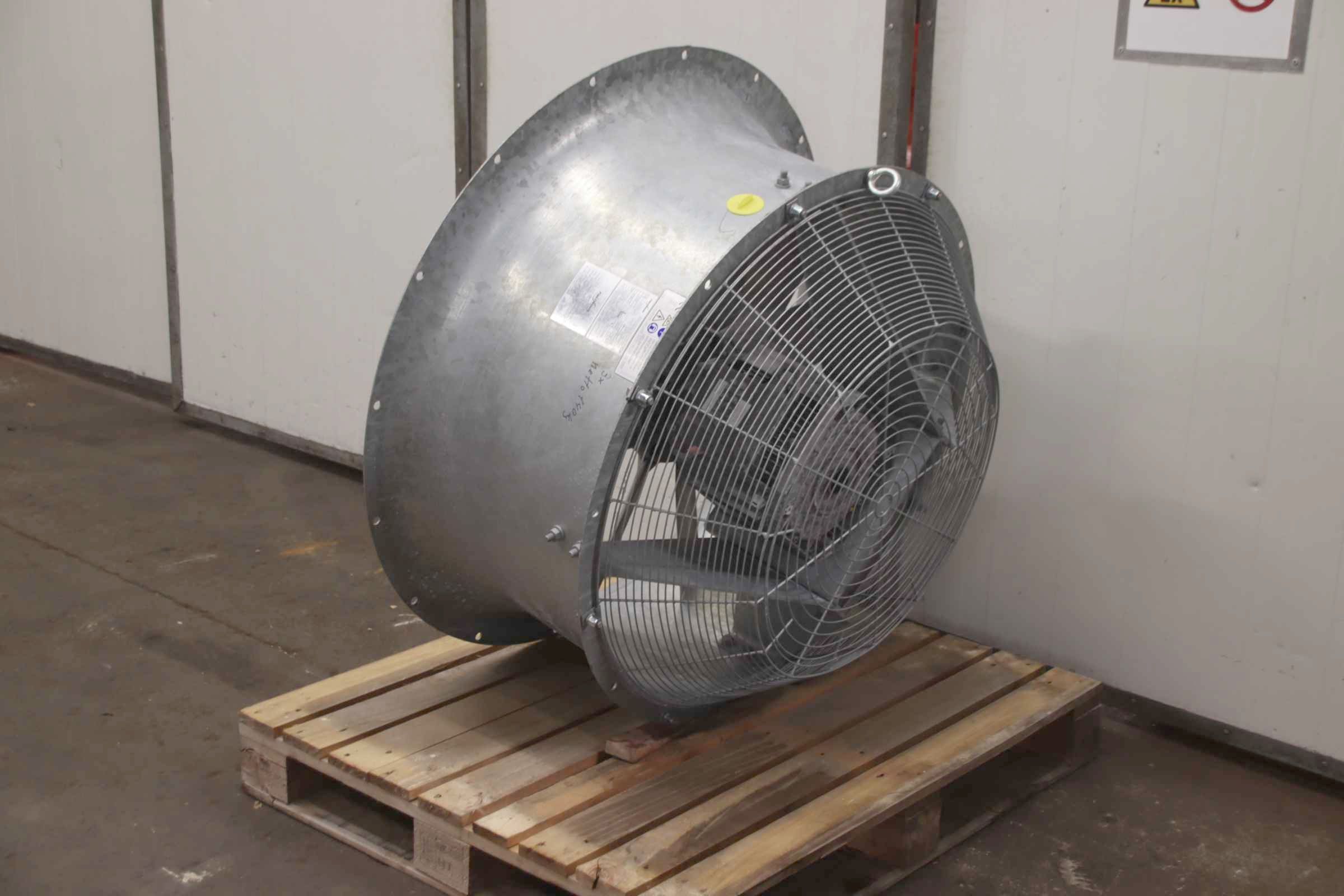 Fan, ventilator, electric motor, blower, electric motor, blower, radial fan, emergency ventilation fan, flue gas fan, axial fan, axial fan, axial fan -Housing: galvanized steel -Condition: Fans are unused (stock items) -Manufacturer: Fläkt Woods, axial fan axial fan -Type: 90JM/25/4/9/24 3S M3AA132MA INT BMLESS -Power: 7.5 kW 1462 rpm -Fan wheel: Ø 900 mm -Number: 3x fan available -Price: per piece -Dimensions: 1140/1140/H610 mm -Weight: 140 kg/piece