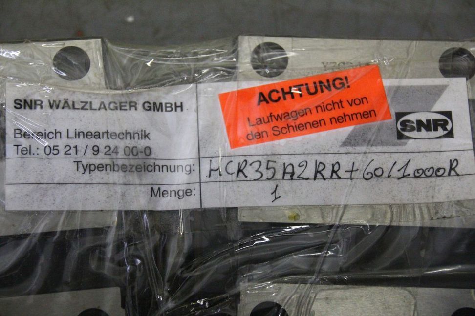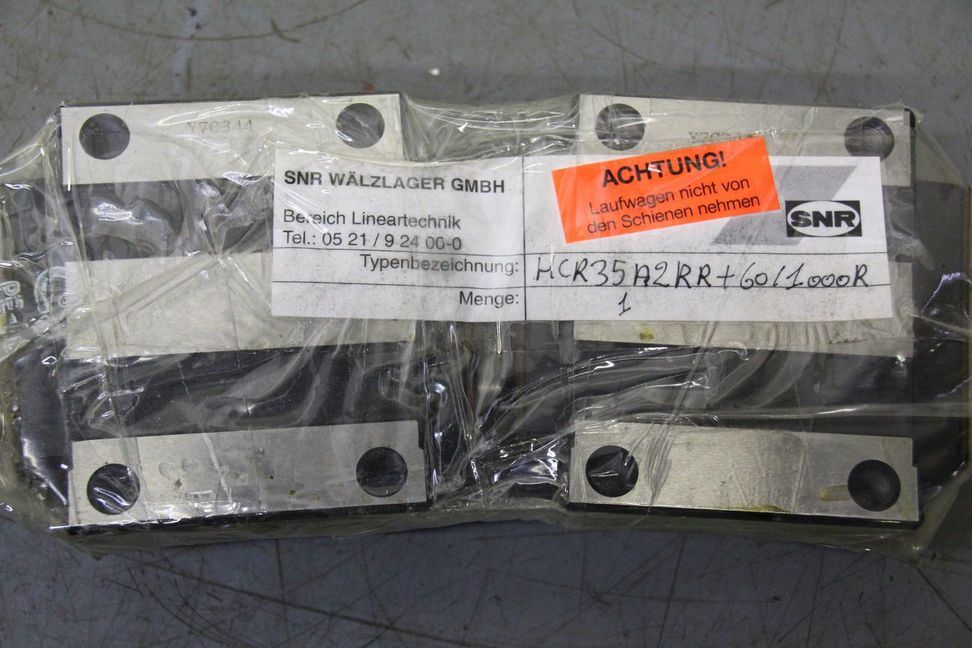 Linear bearings, linear rails, linear guides, roller guide rails, for guide carriages, guide rails, curved guides, cam bearings, cam track bearings, profile rails -Condition: original packaging -Manufacturer: THK / SNR, Bow guide with guide carriage -Type: HCR35A2RR 60/1000R -Length: 1000 mm Quantity: 1 piece Price: per piece -Package dimensions: 1180/240/H100 mm -Weight: 12.5 kg