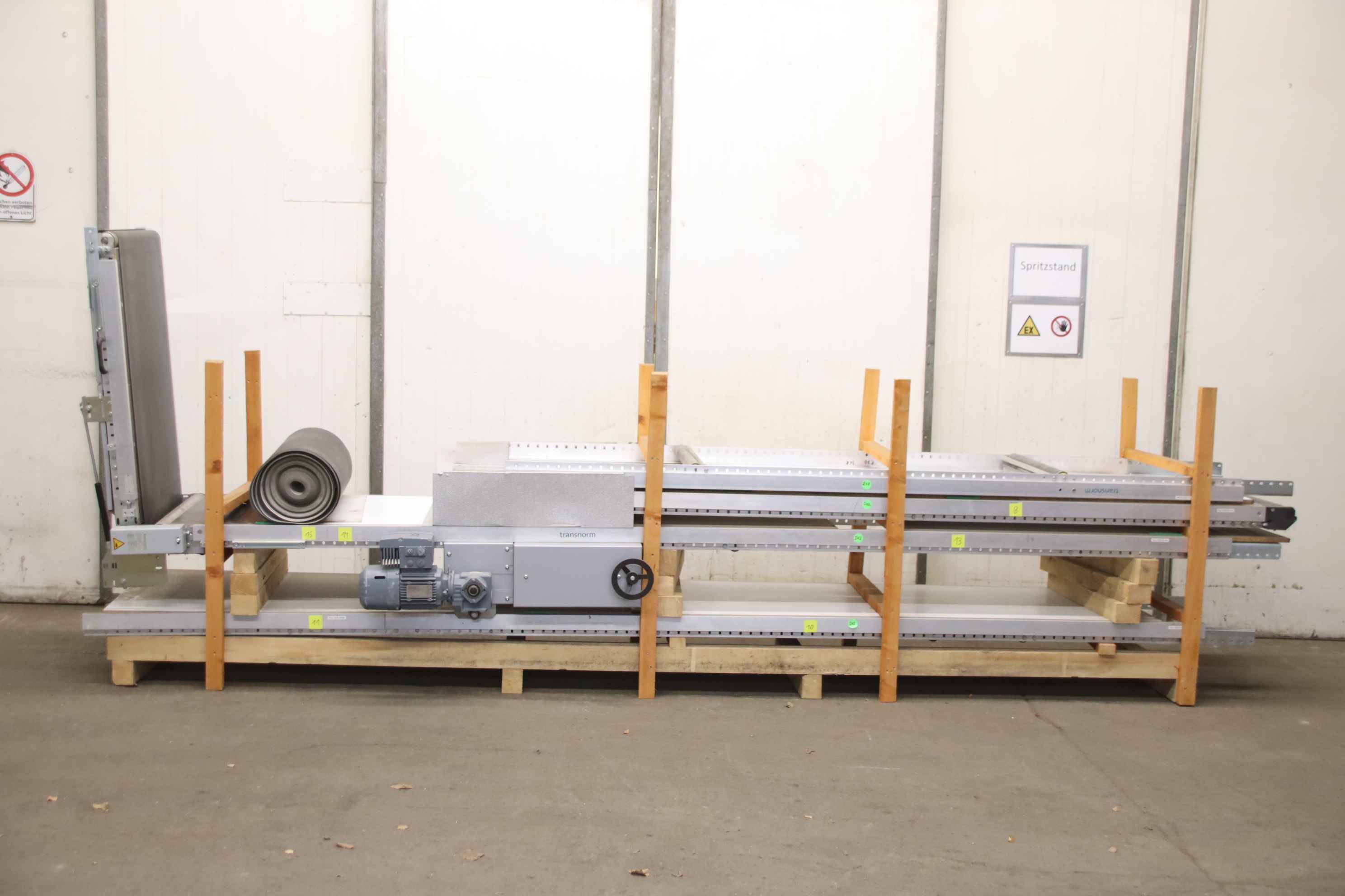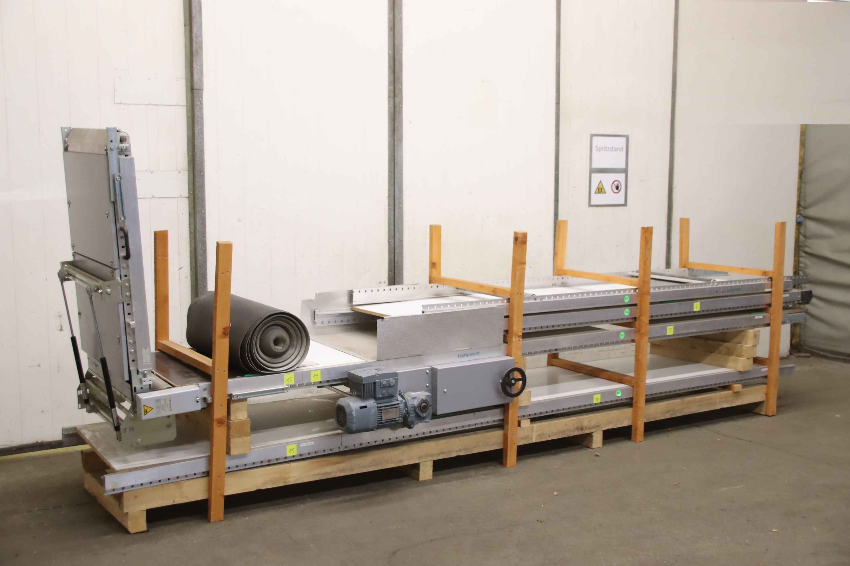 Conveyor belt, belt conveyor, conveyor belt, belt conveyor, belt conveyor -Manufacturer: Transnorm, belt conveyor with central drive -Type: 1100 -Speed: frequency controlled, up to 58.7 m/min -Drive: SEW-Eurodrive 1.1/0.11 kW, see photo nameplate -Belt width: 600 mm - Conveyor length: approx. 15000 mm / approx. 1000 mm (height adjustable) -Set-up dimension: 15120/970/H340 mm -Transport dimension: 4440/970/H1430 mm -Total weight: 492 kg