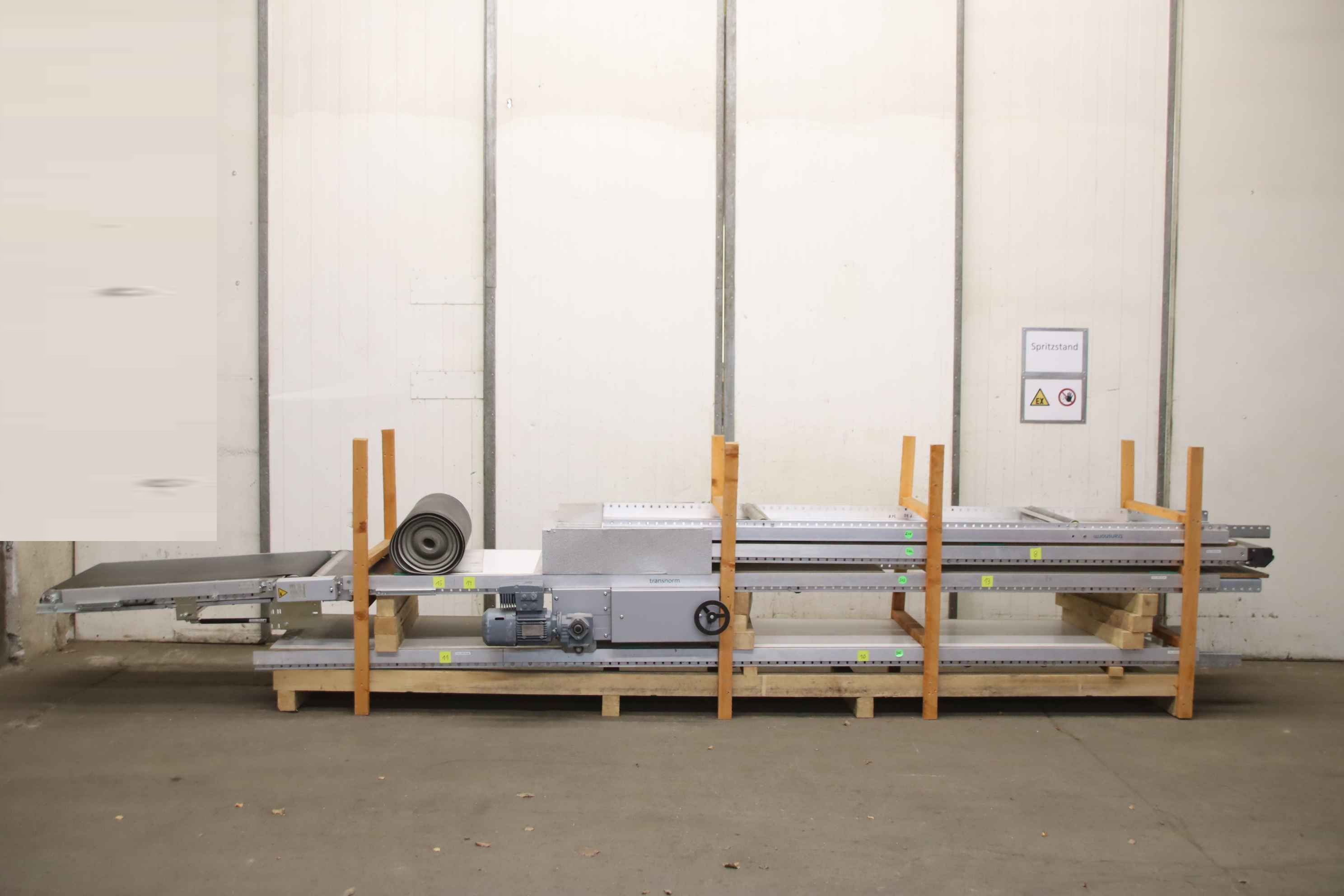 Roller conveyor, conveyor belt, roller conveyor belt, roller conveyor, turning station, turning unit-Roll width: 410 mm-Diameter roller: 50 mm-Roll speed: 21 m/min-Drive for: slewing ring SEW-Eurodrive 0.18 kW with brake-Dimensions: Ø 870/1035 mm-Weight: 162 kg