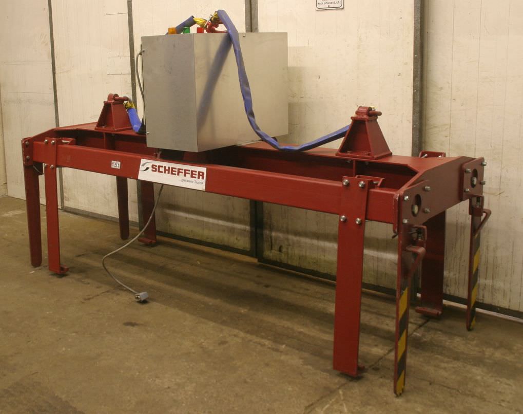 Long goods box jack, box jack, crane traverse -Manufacturer: Scheffer Crane Technology -Load capacity: max. 1500 kg -Arm length: 750 mm -Box size: 3000x1000 mm -Empty weight: 620 kg