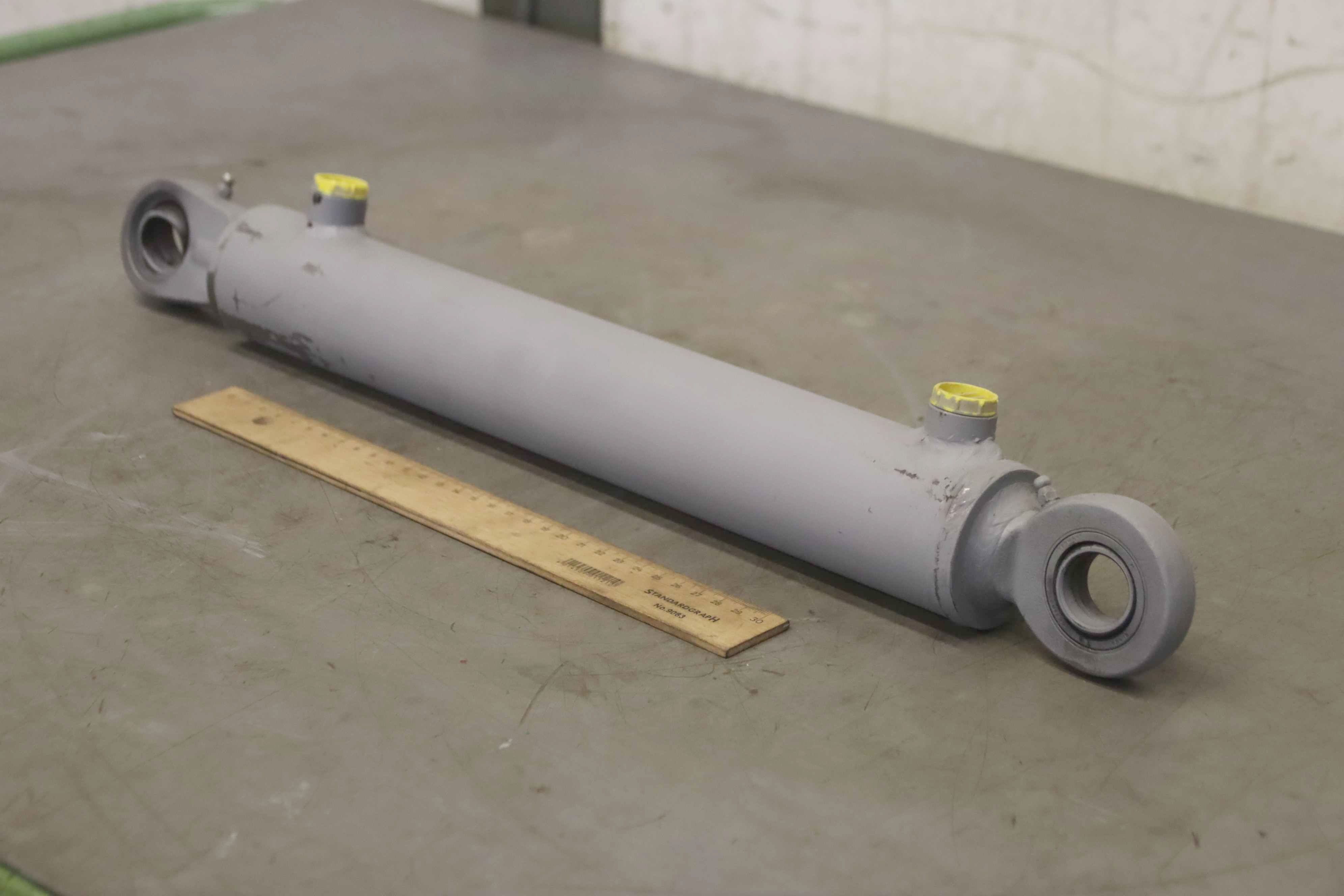 Hydraulic cylinders, support cylinders, hydraulic rams, pressure rams-Piston diameter: approx. 100 mm-Piston rod: Ø 40 mm-Stroke: 82 mm-Piston rod holder: Ø 25 mm-universally applicable-Number: 2x cylinders available-Price: per piece-Dimensions: 465/150/H120 mm-Weight: 17.9 kg/piece