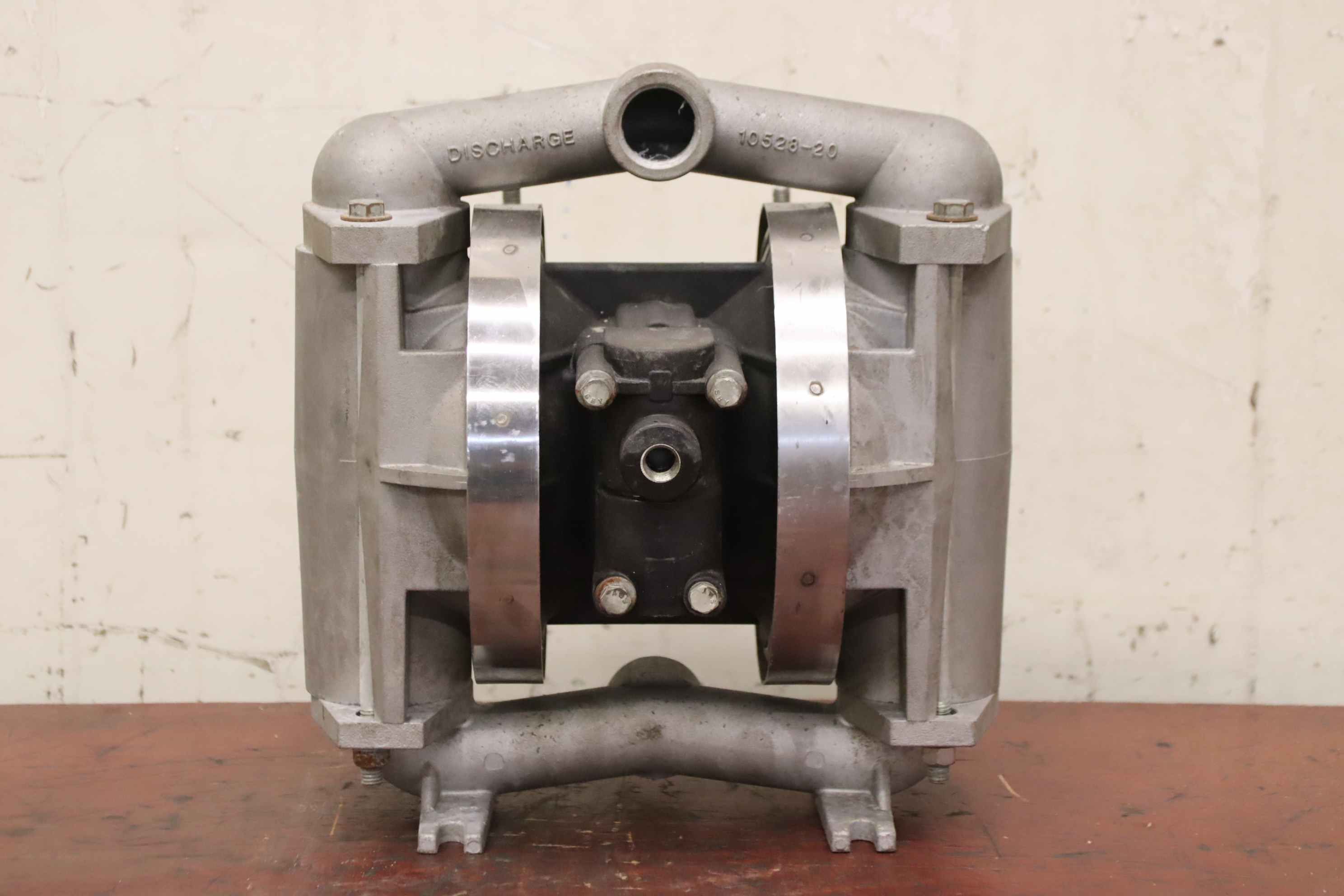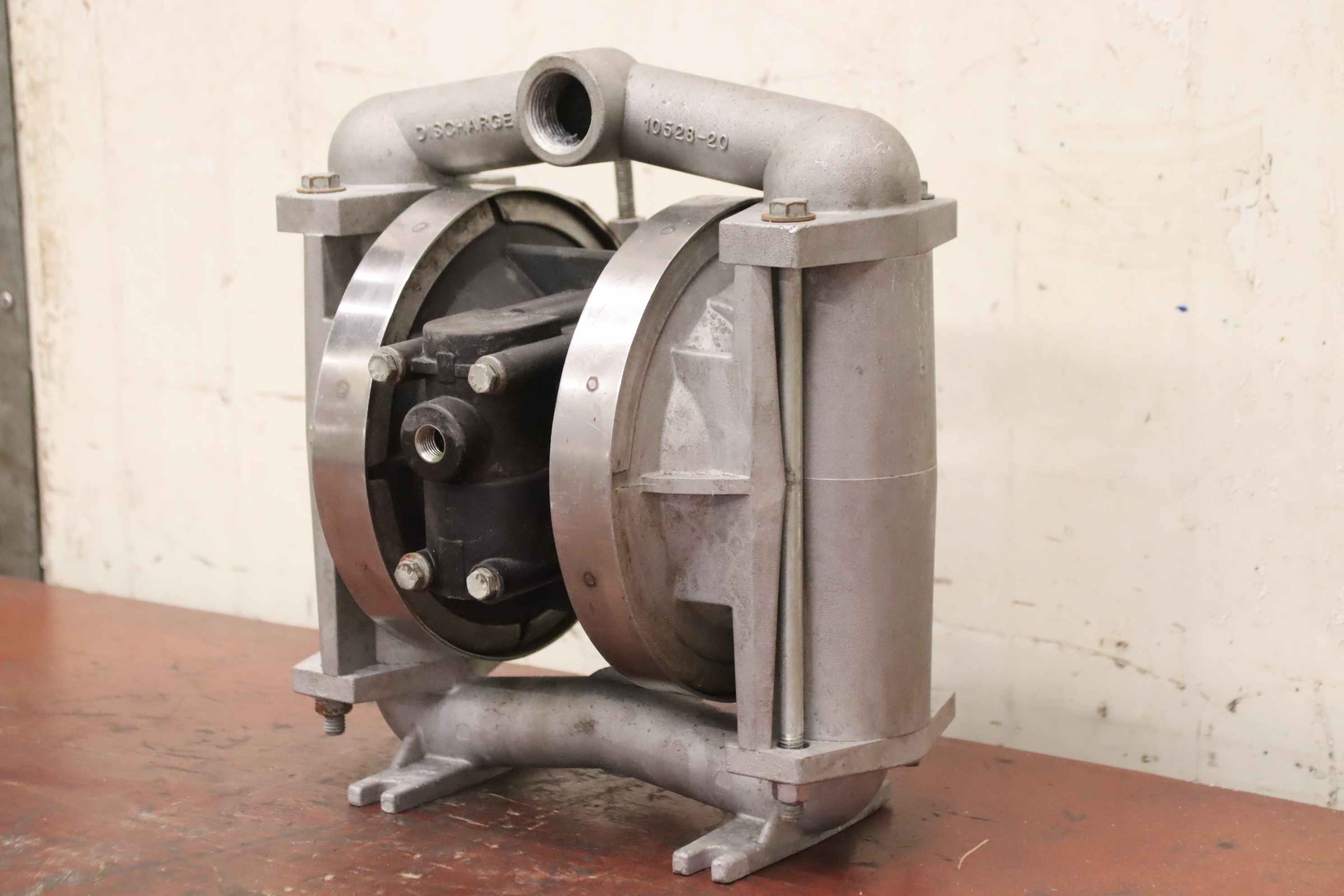 Diaphragm pump, compressed air diaphragm pump, chemical pump, compressed air-operated double diaphragm pump-Diaphragm pump: Air-operated double diaphragm pump-Type: unfortunately without type designation-Flow rate: l/min-Discharge pressure: bar-Total dimensions: 300/250/H325 mm-Weight: 9.9 kg
