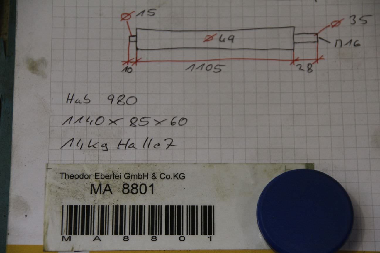 Conveyor rollers, transport rollers, replacement rollers, conveyor belt, roller conveyor, carrying rollers -Roller diameter: 80 mm -Transport roller width: 490 mm -Total length: 520 mm -Shaft diameter: 12 mm -Number: 109 rolls available -Price: per piece -Weight: 2.3 kg/piece