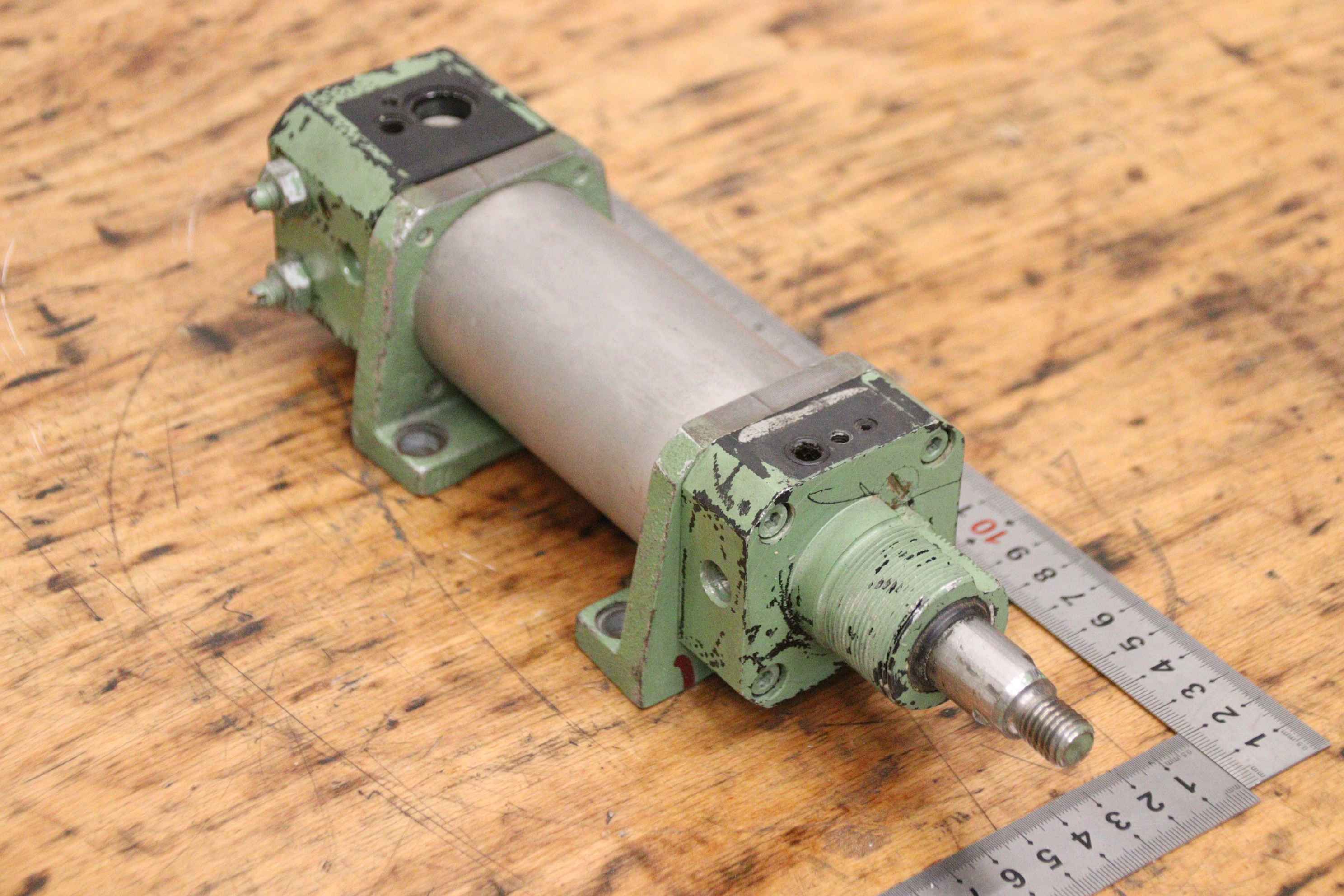 Pneumatic cylinders, air cylinders, pneumatic rams, air rams-Stroke: 160 mm-Piston diameter: 40 mm-Piston rod: 16 mm (connection M12 x 1.25 thread)-Air inlet and outlet: adjustable-Number: 5 pieces available-Price: per piece-Dimensions: 325/53/H53 mm-Weight: 1.65 kg/piece