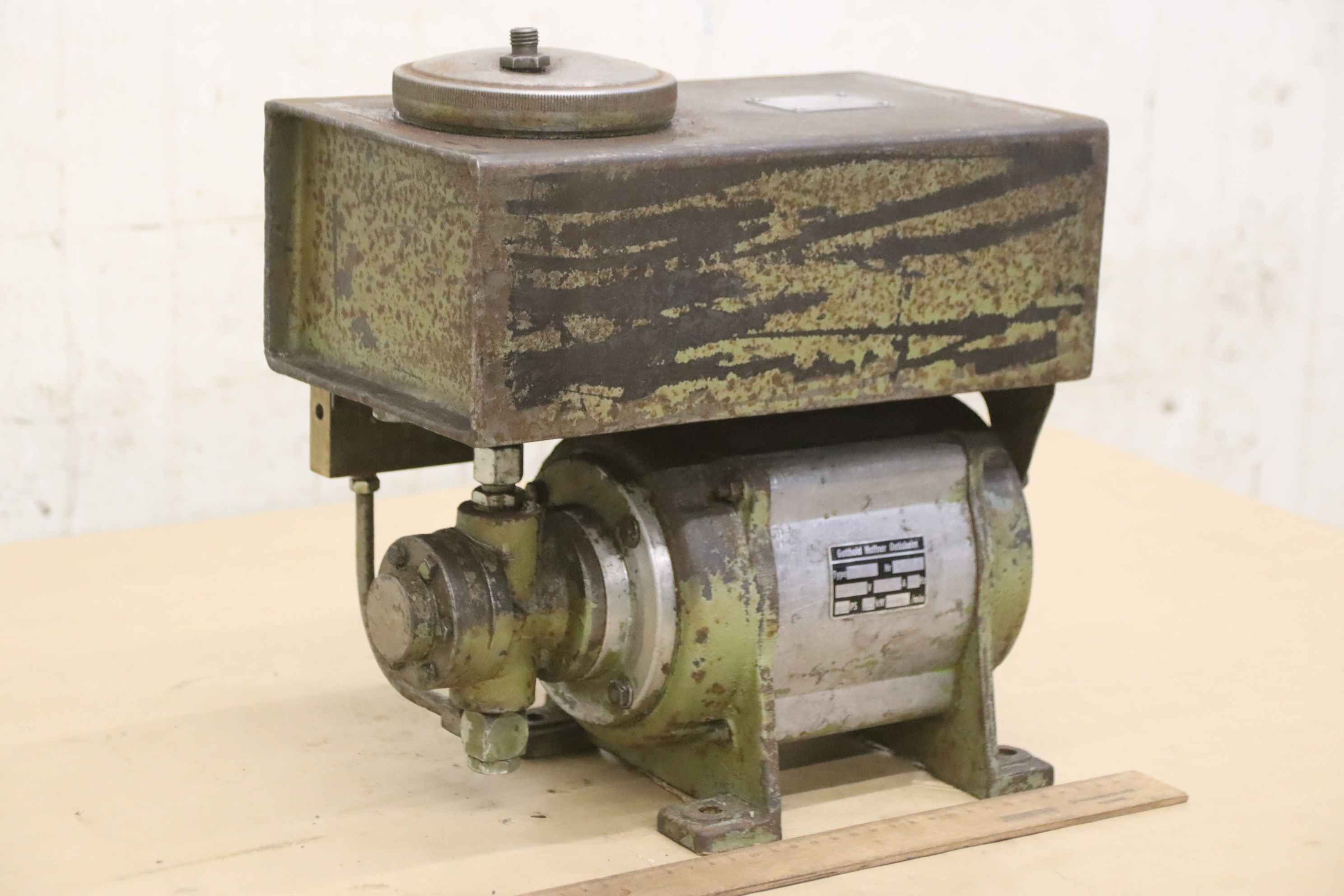 Central lubrication, oil circulation system, single-line pump, central lubrication unit-Handover: in the current condition as seen-Retaining foot: broken, see photo-Manufacturer. Vogele, central lubrication type SP/AE A1/220/380/1-Block distributor: SPVS 21S1Z 9A-Drive: Haffner 0.25 kW-Individual components: see photos-Dimensions: 300/210/H320 mm-Weight: 19.8 kg