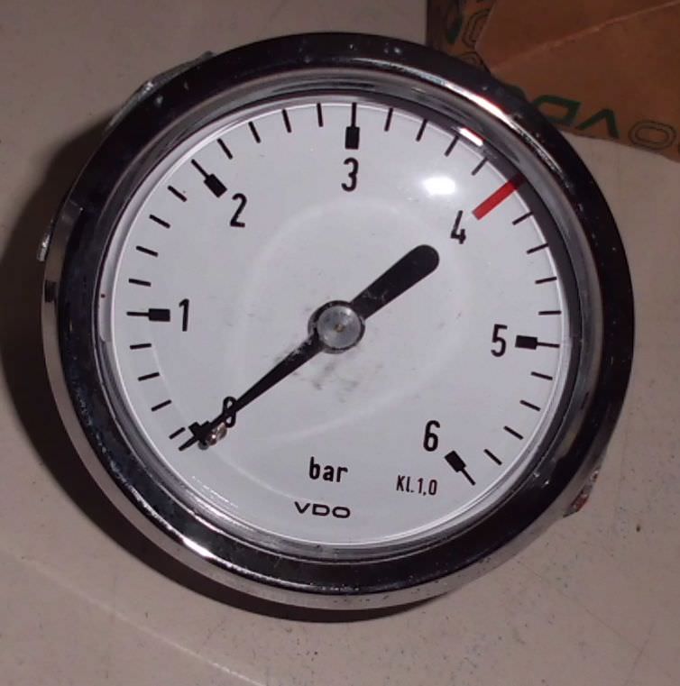 Pressure valve, pressure gauge, pressure indicator, manometer -Measuring range: 0-6 bar -Fitting: Ø 63 mm -Thread: M12/1.5 mm -Price: per piece -Quantity: 10 available -Weight: 0.2 kg