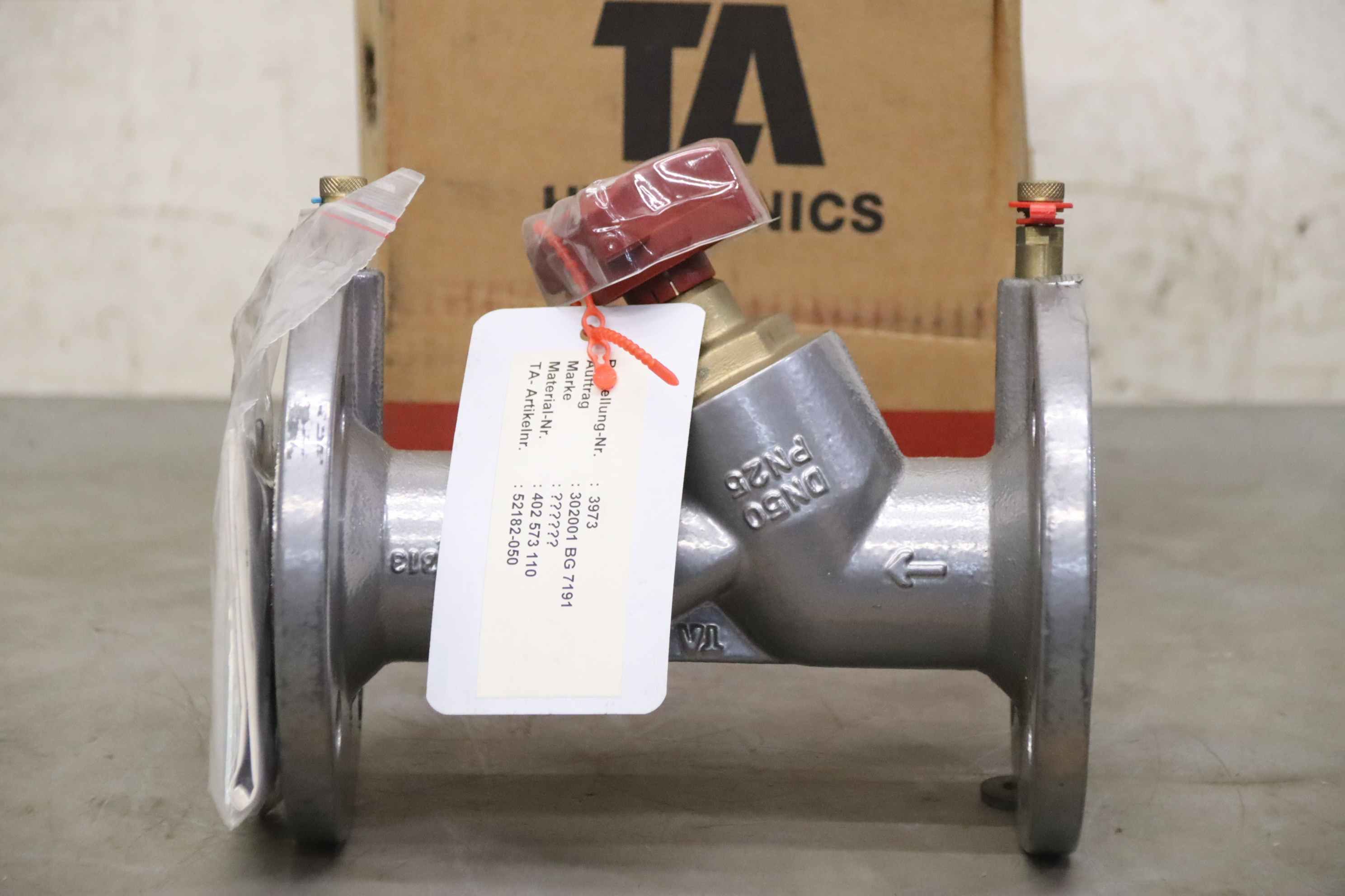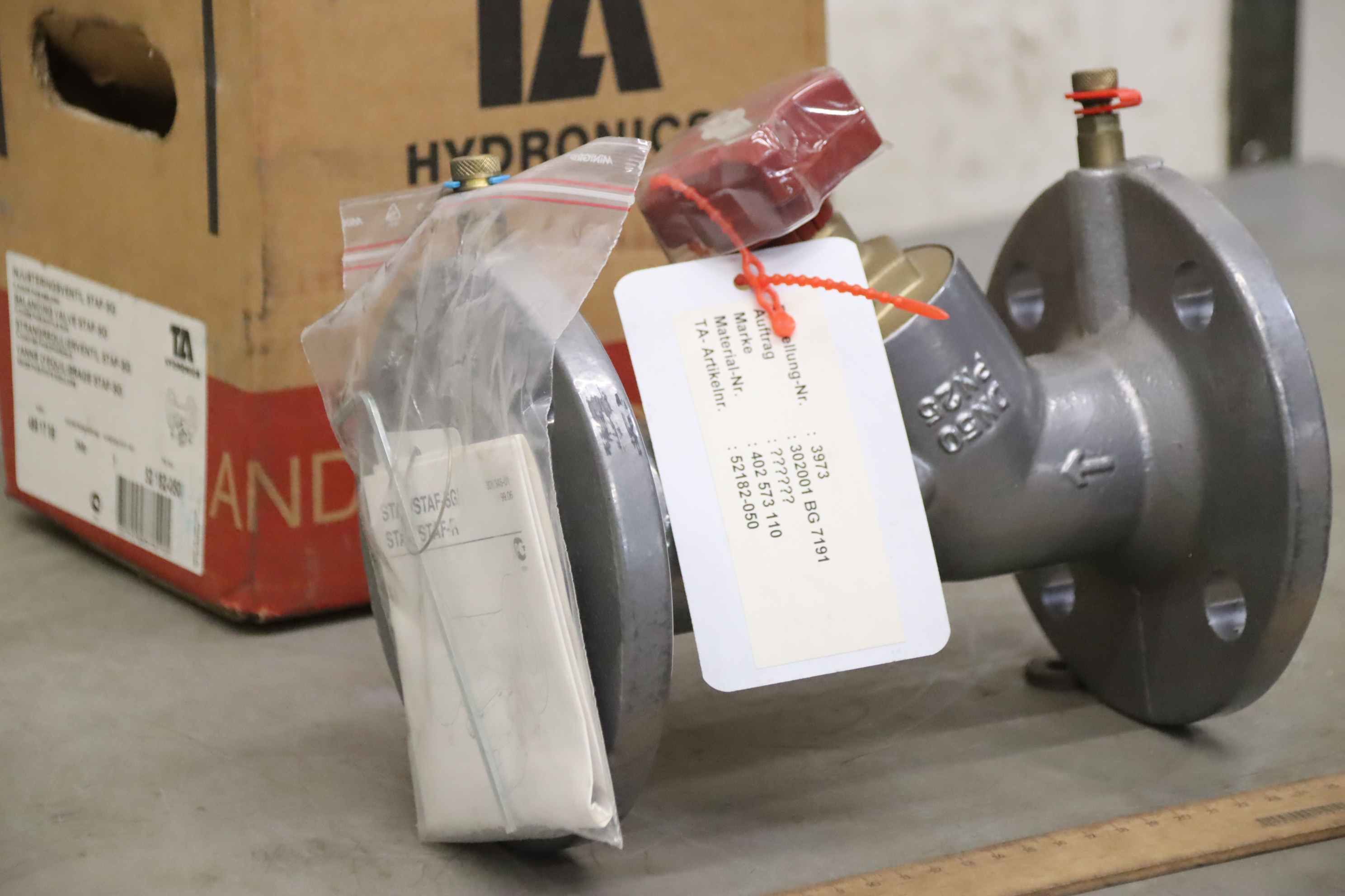 Line regulating valve, shut-off valve, ball shut-off valve, ball valve, ball valve, pressure relief valve, balancing valve-Manufacturer: TA Hydronics, line regulation valve regulation valve, unused original packaging-Type: STAF-SG DN50 PN25-Number: 3x valve available-Price per piece-Dimensions cardboard: 220/170/H270 mm-Weight: 6.8 kg/pcs