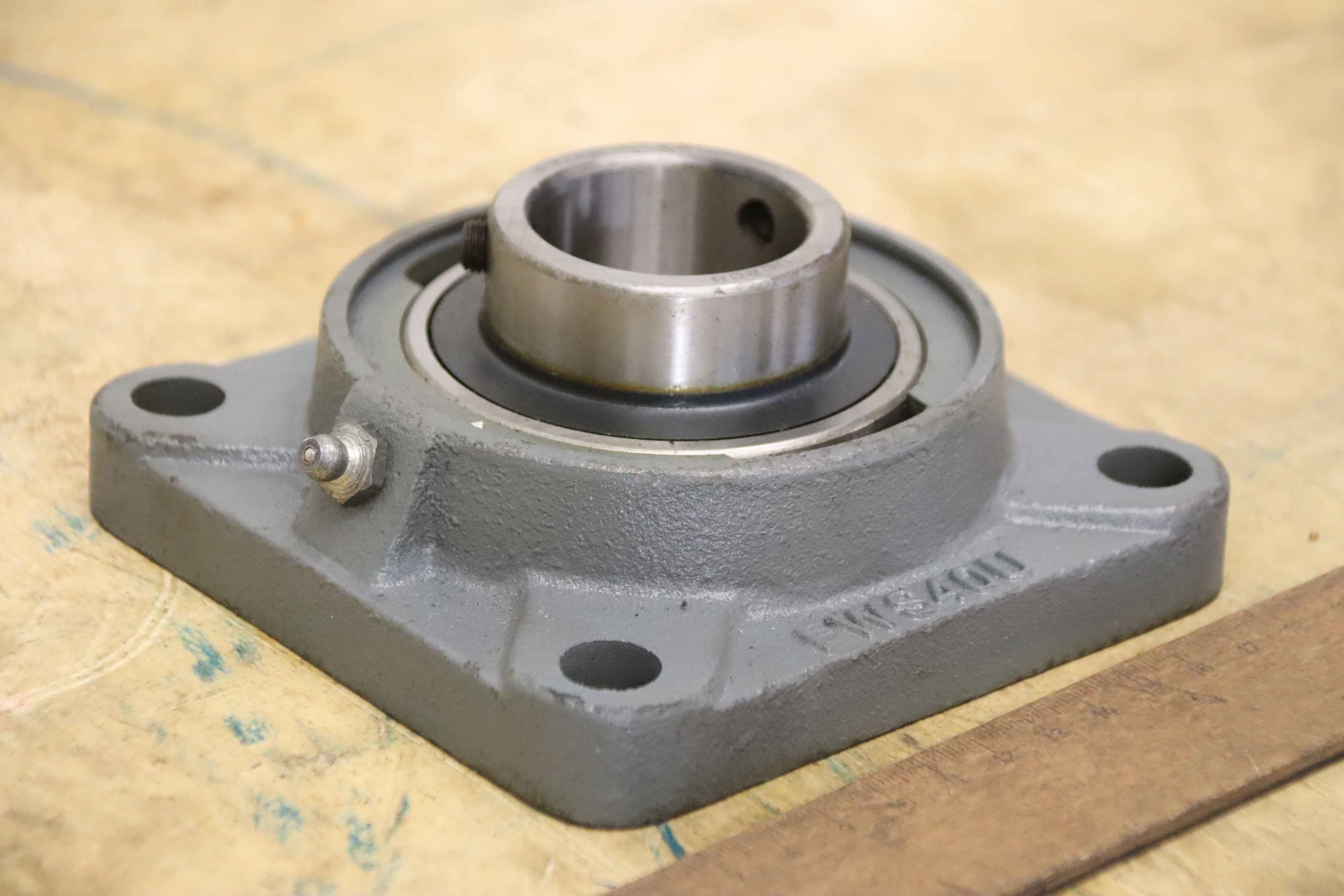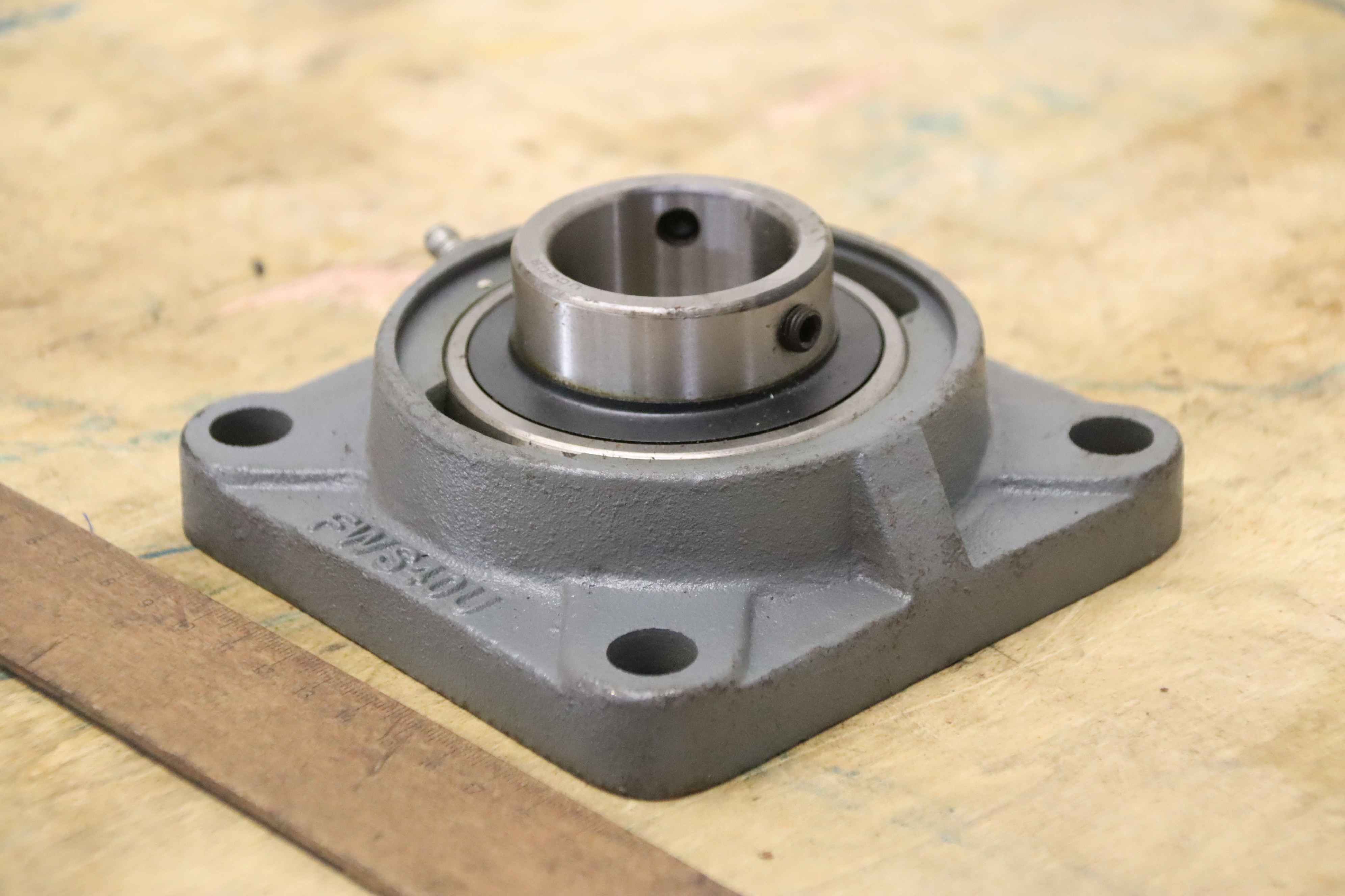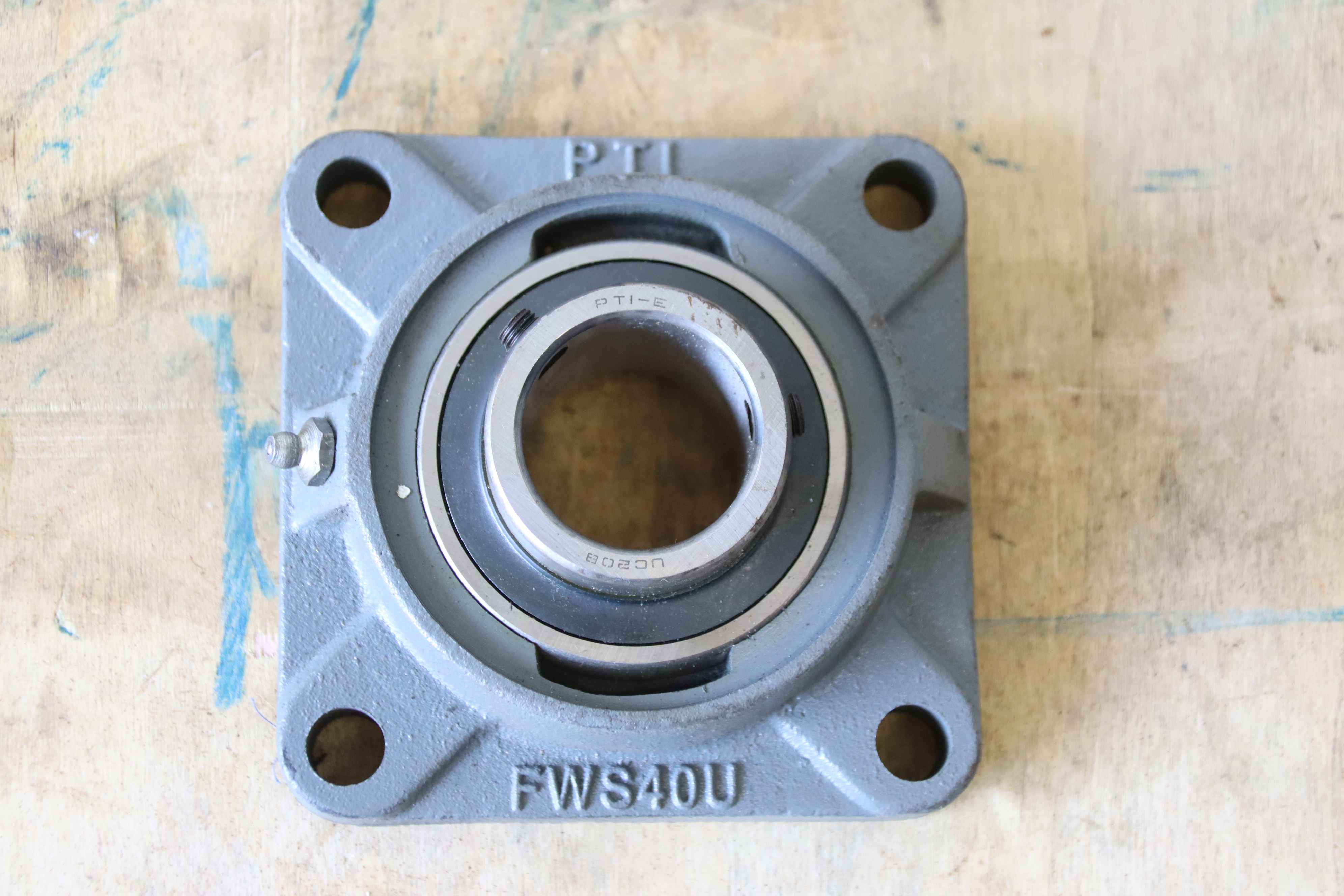 Flange bearing, housing bearing, flange bearing unit-Manufacturer: PTI, flange bearing unit type FWS40U-Bore: Ø 40 mm-Mounting hole: hole spacing 102 x 14 mm-Number: 3x flange bearing available-Price per piece-Dimensions: 128/128/H50 mm-Weight: 2.2 kg/pc.