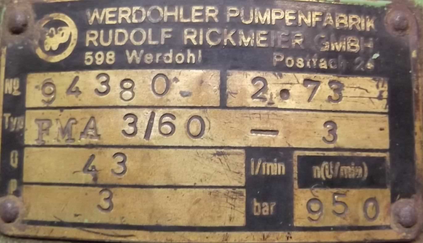 Centrifugal pump, high pressure pump, water pump, multistage vertical centrifugal pump-Drive: 4 kW 960 rpm-Max. Delivery rate: 2.58 m³/h-Max. Pressure: 3 bar-Max. Temperature: °C-Dimensions: 730/350/H310 mm-Weight: 88 kg